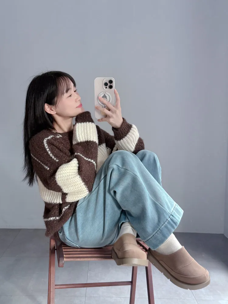 [特點] 粗針羅紋,微落肩版型、袖口加厚羅紋,寬鬆不貼身,柔軟不扎膚。