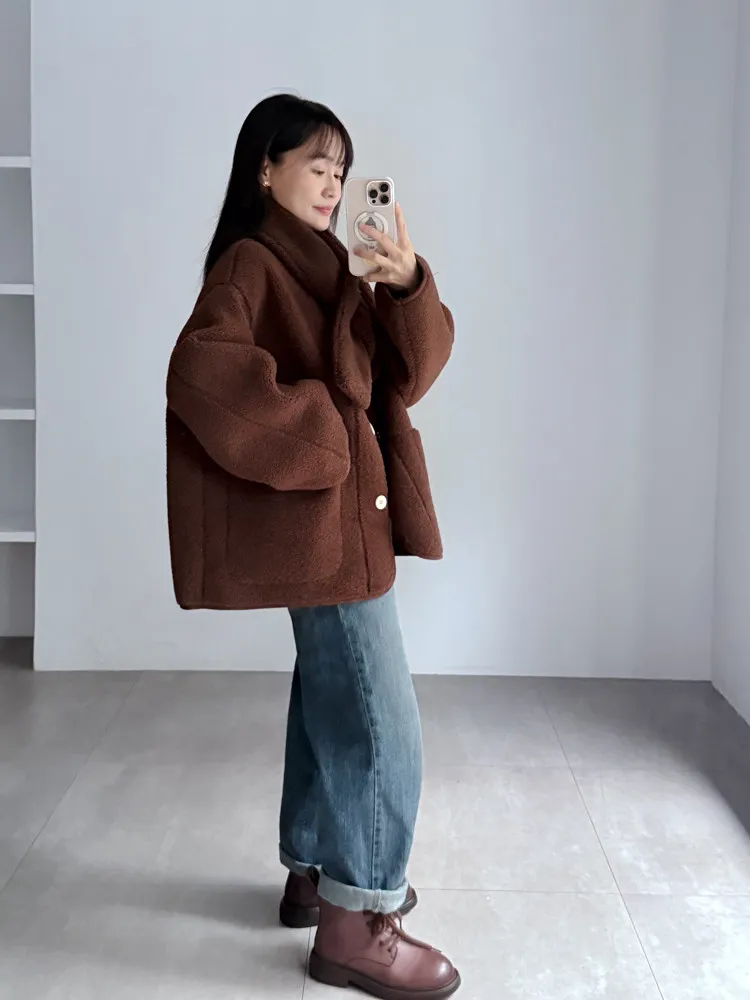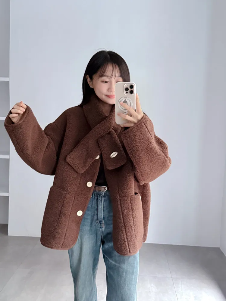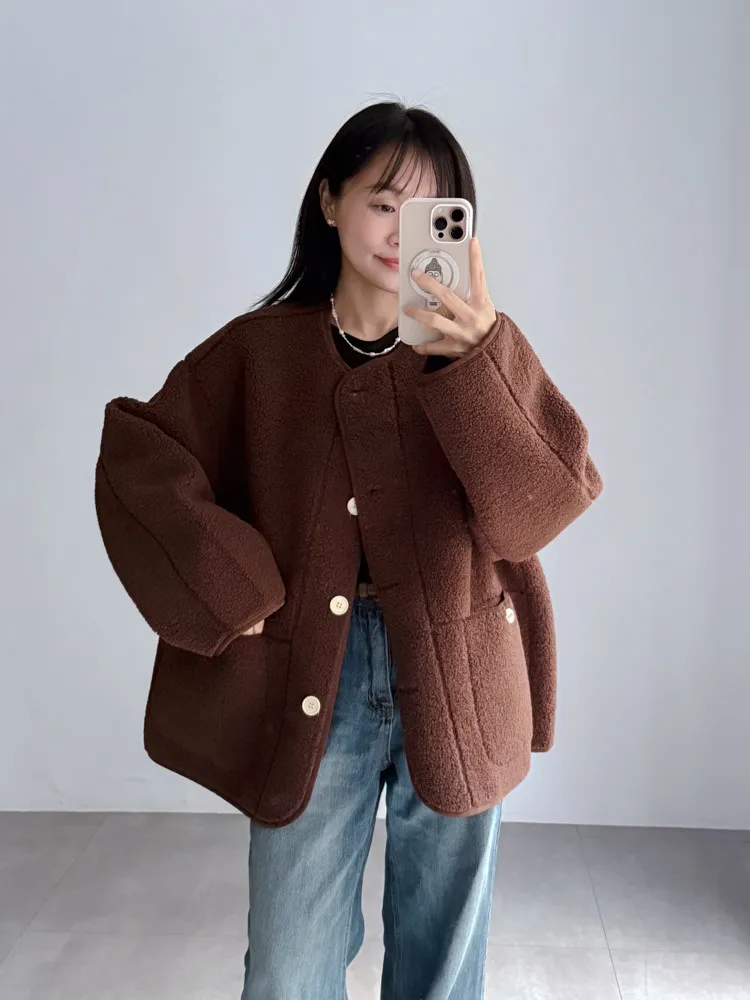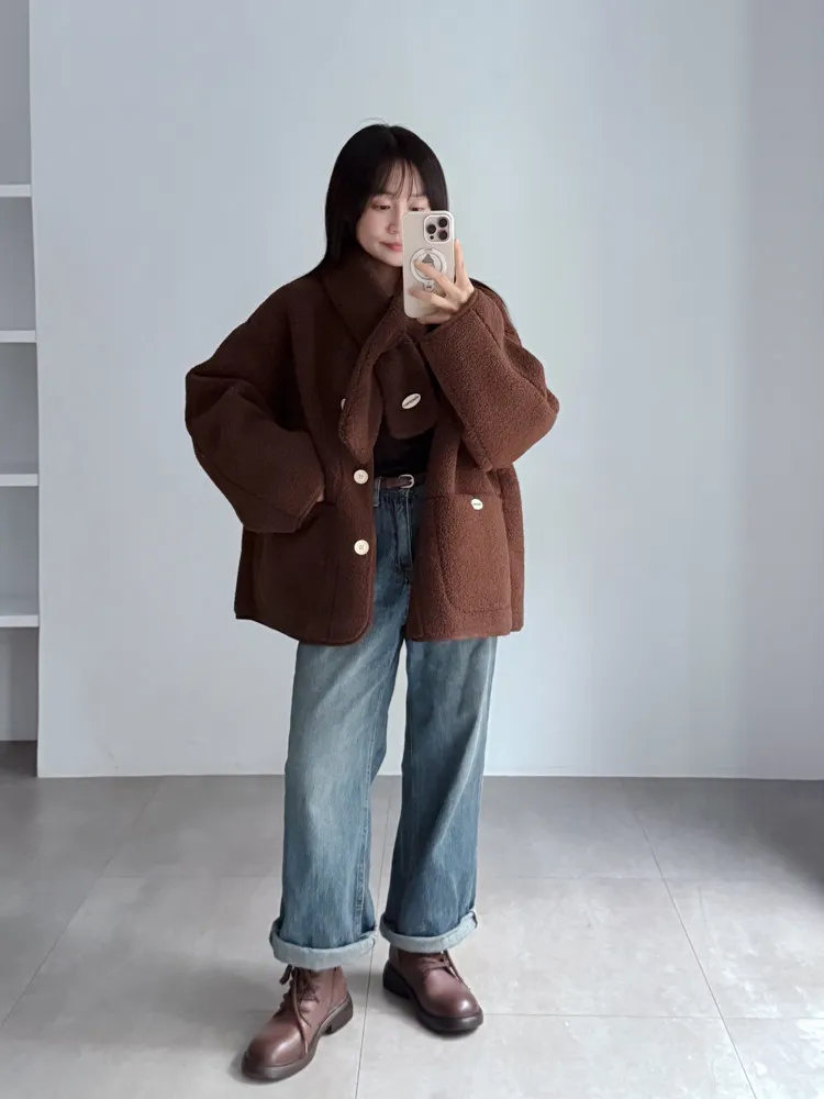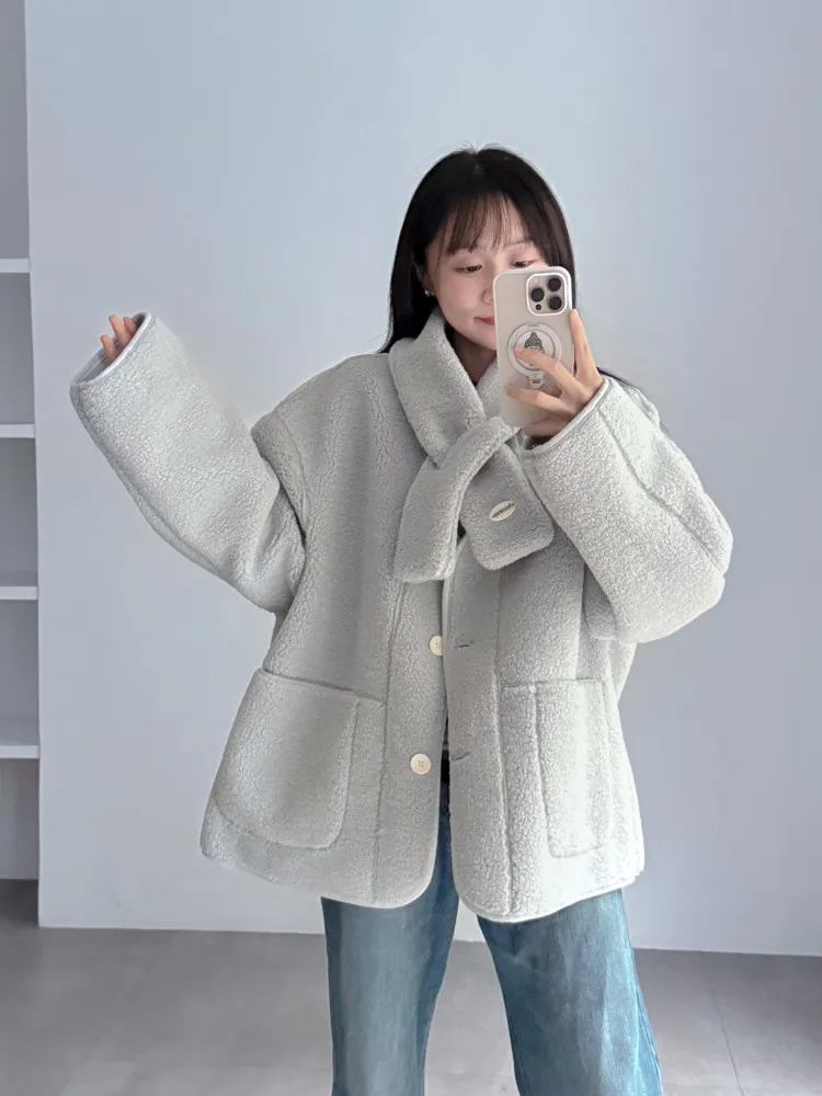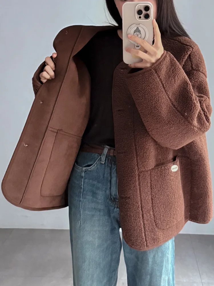 [特點] 外層柔軟毛絨手感,內裡是滑順的麂皮面料,無領剪裁很適合搭配帽T穿著,