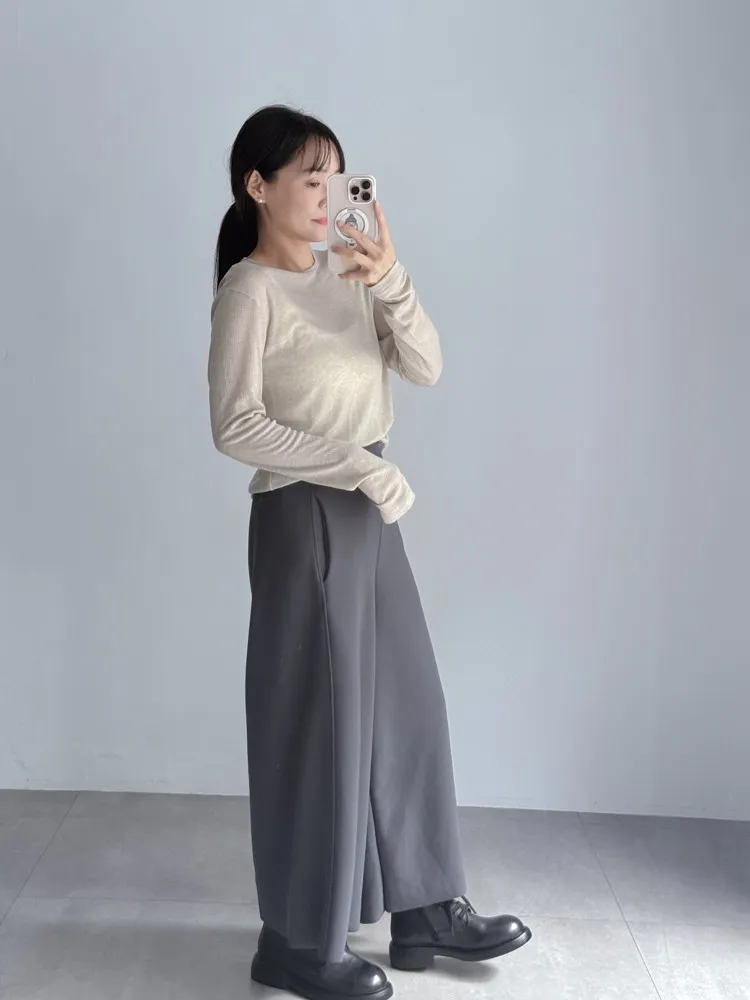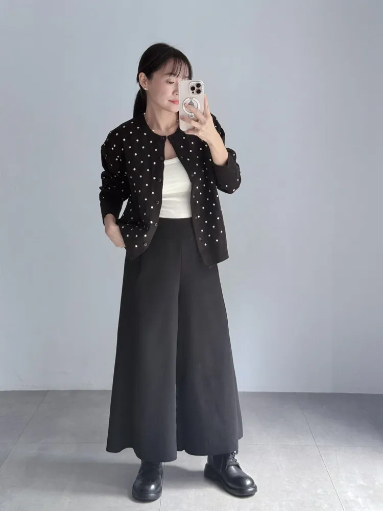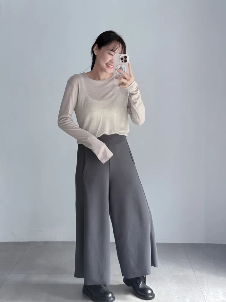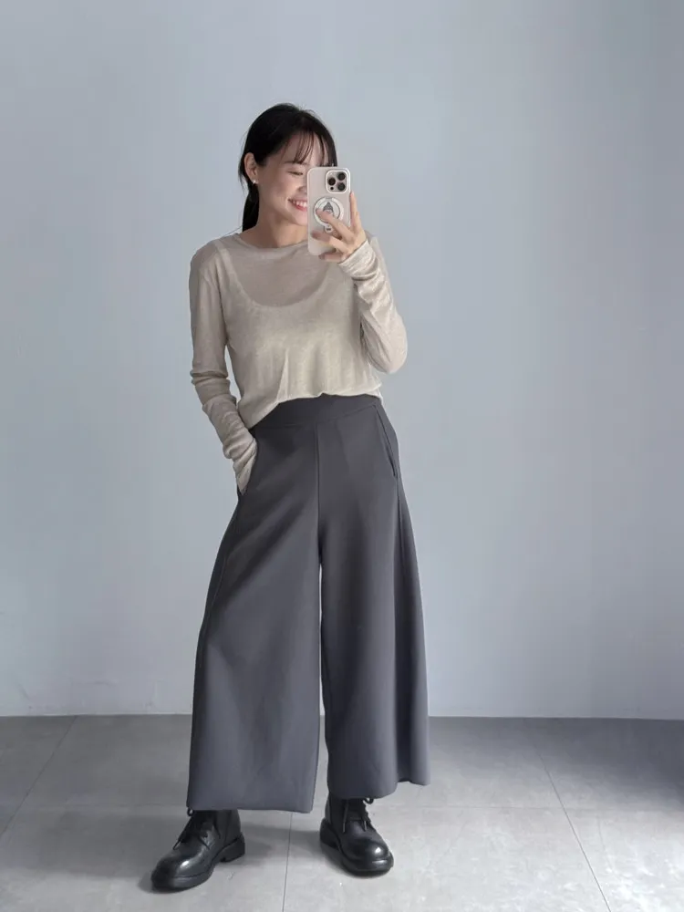 [特點] 厚雪紡面料,腰圍、褲身皆有彈性,寬褲剪裁。
