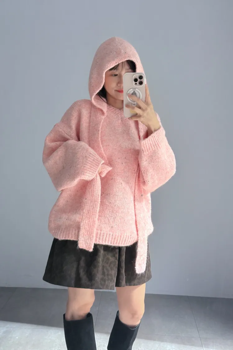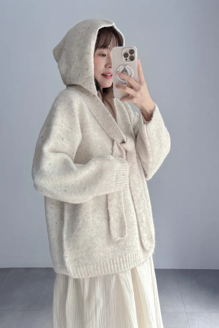 [特點] 針織表面帶有細小彩點,附同色系連帽披肩,