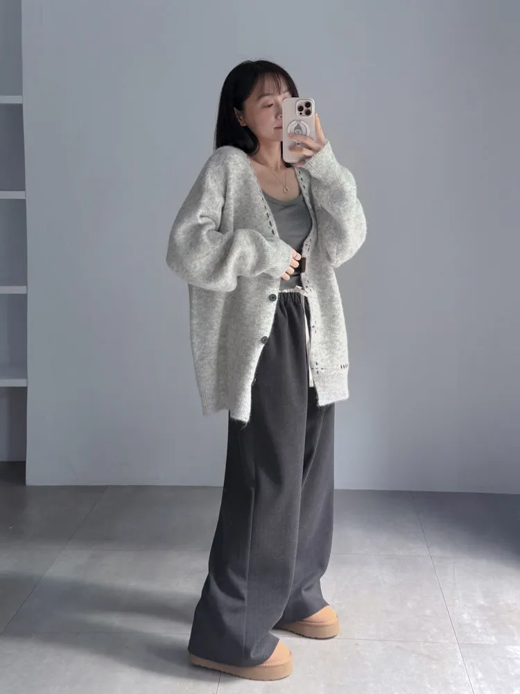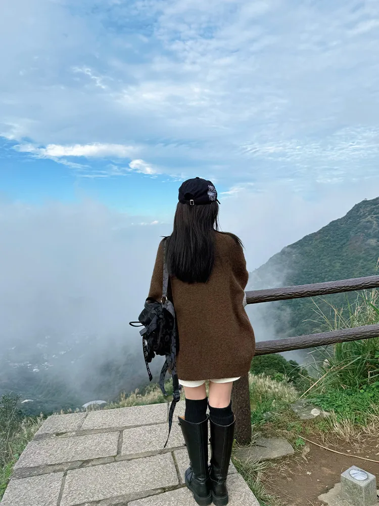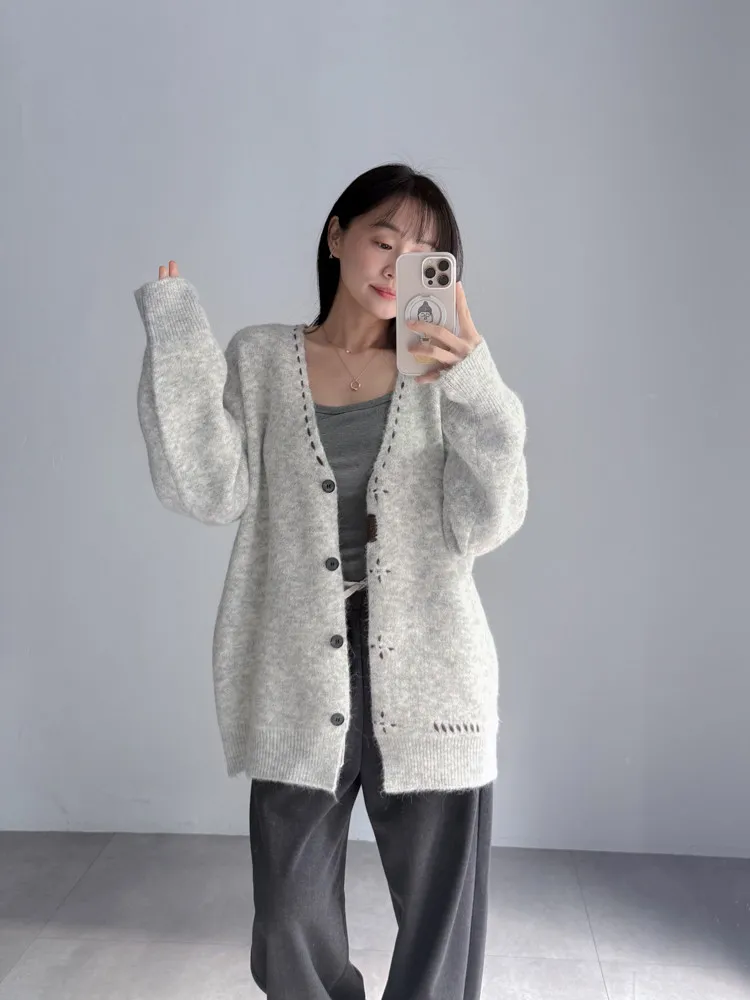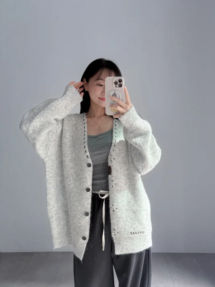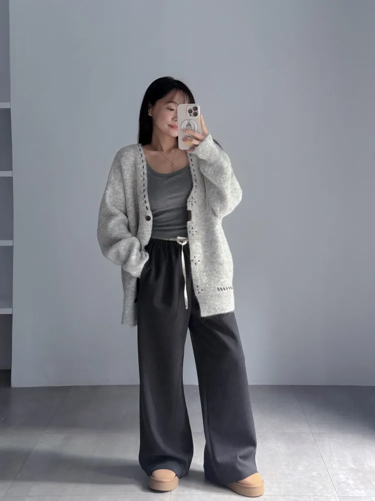 [特點] 表面帶有微毛感的針織,面料親膚不扎,V領+排釦設計,車線感造型。