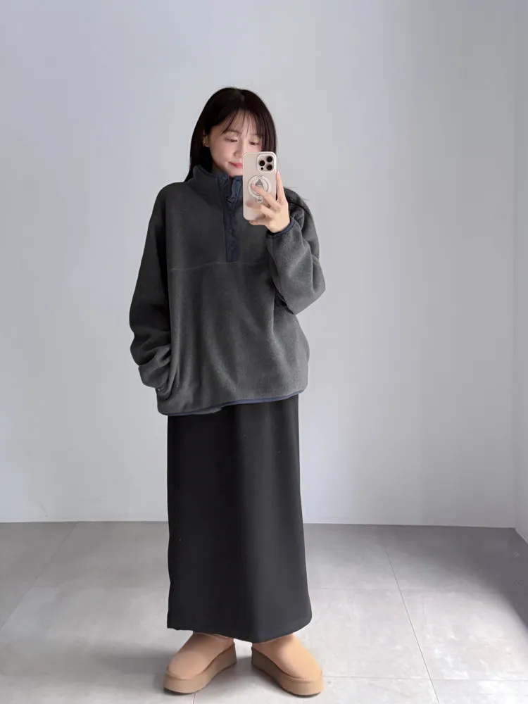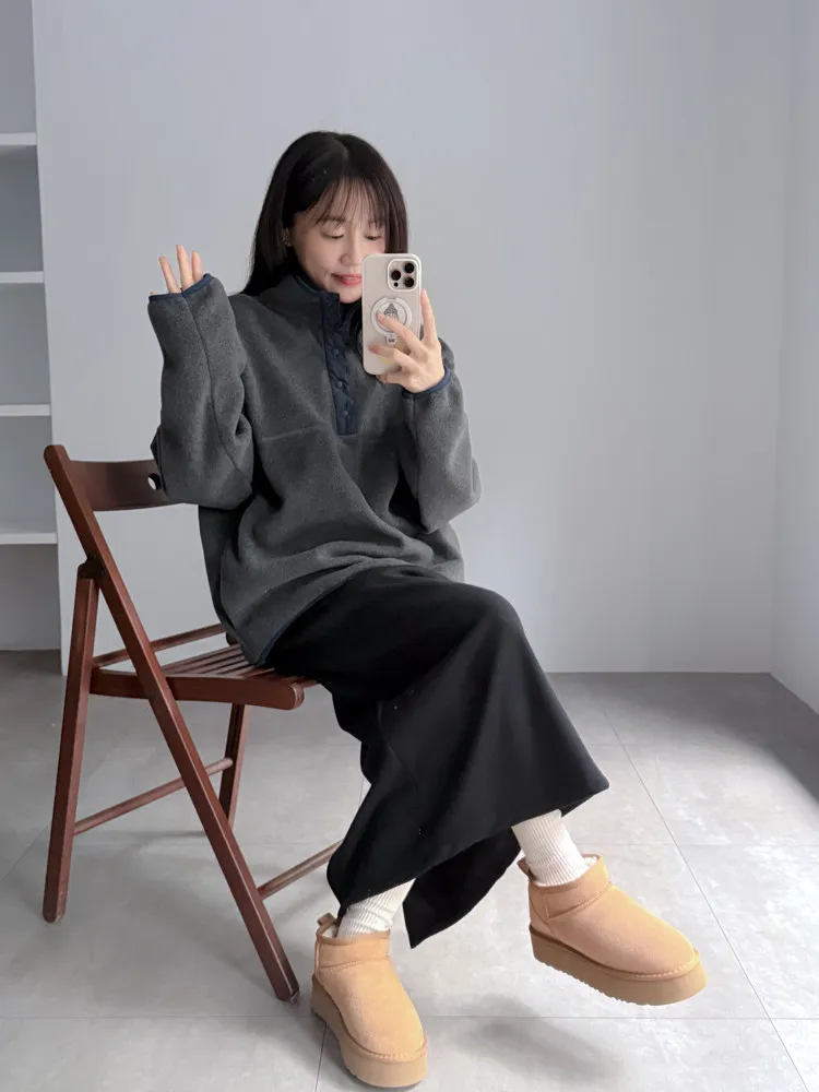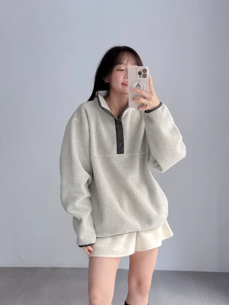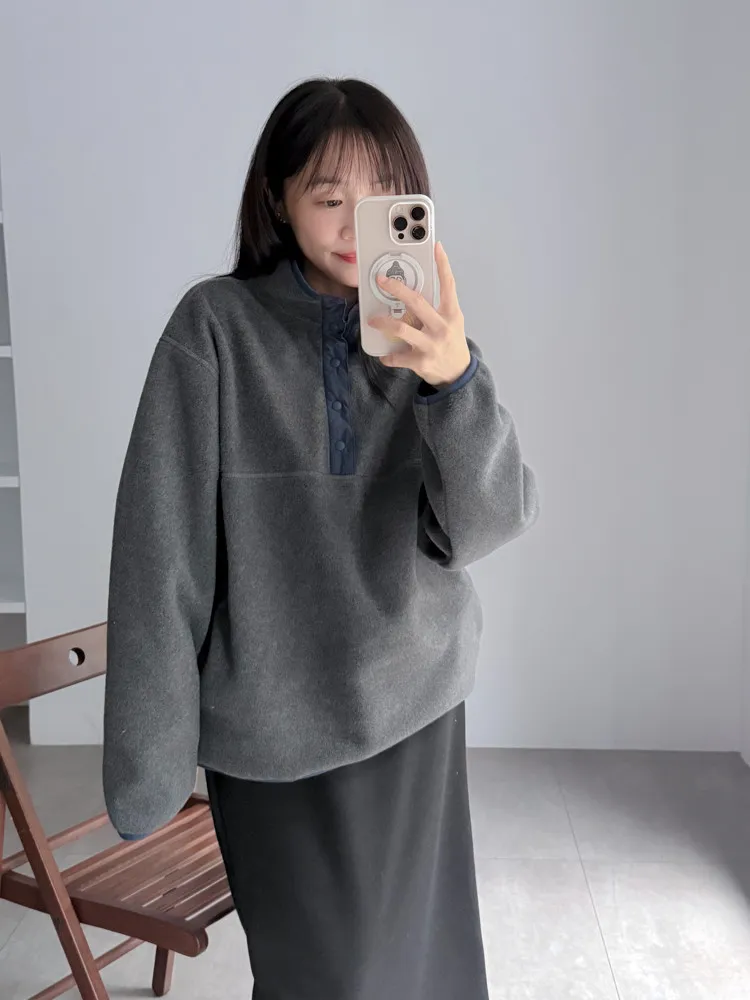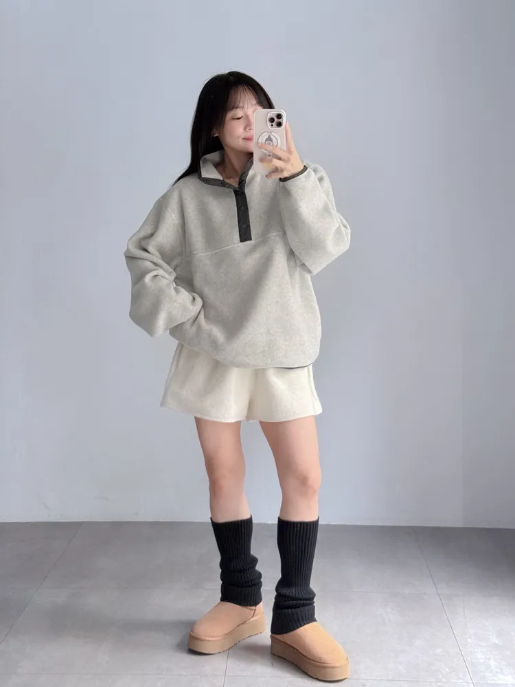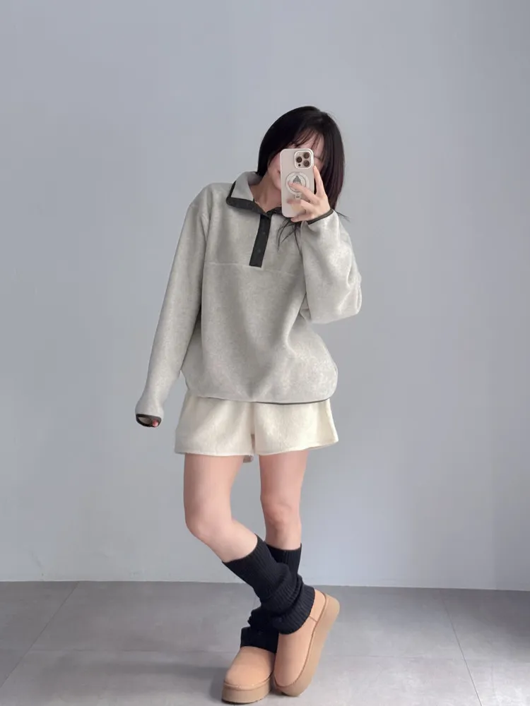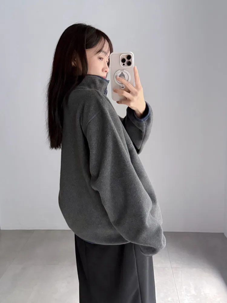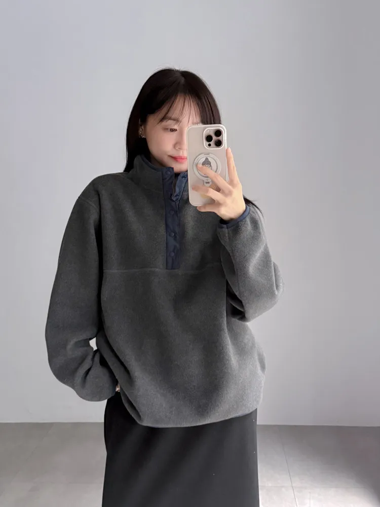[特點] 舒服的刷毛面料,半排釦高領設計,配色造型。