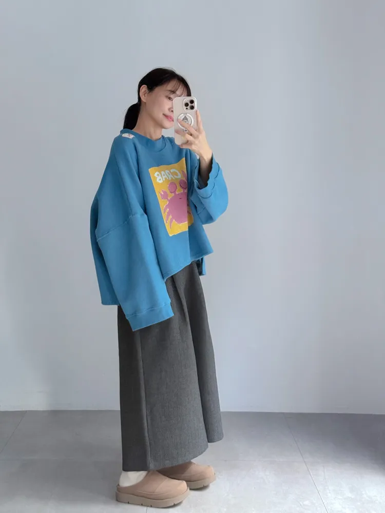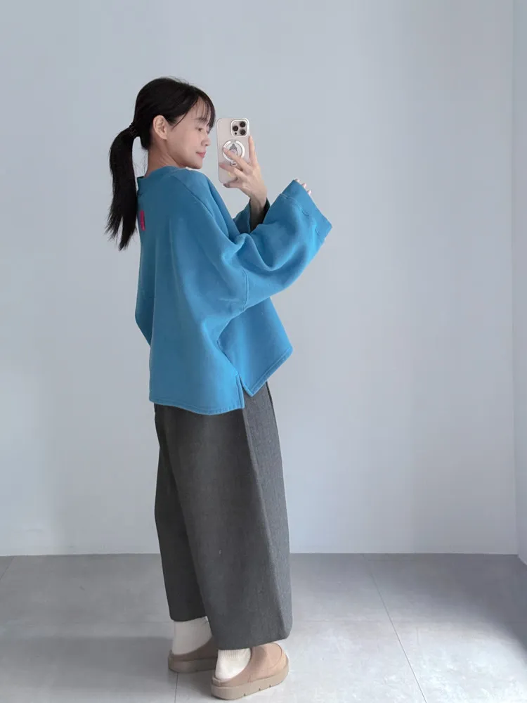 [特點] 落肩略短版剪裁,寬袖設計,內裡有舒服的刷毛面料。