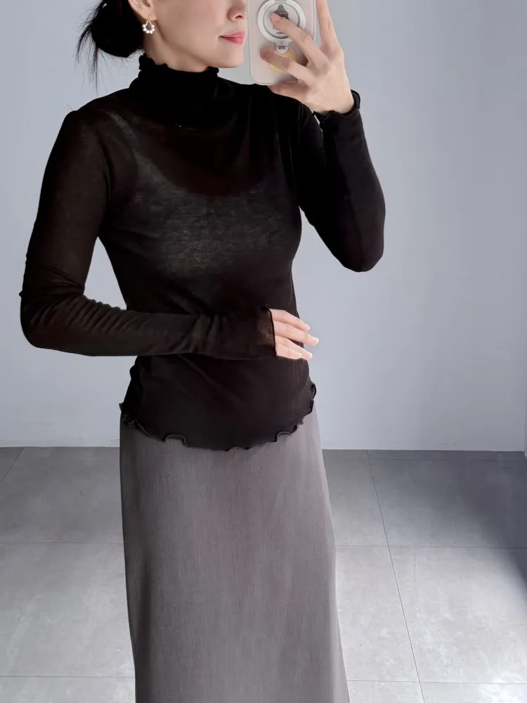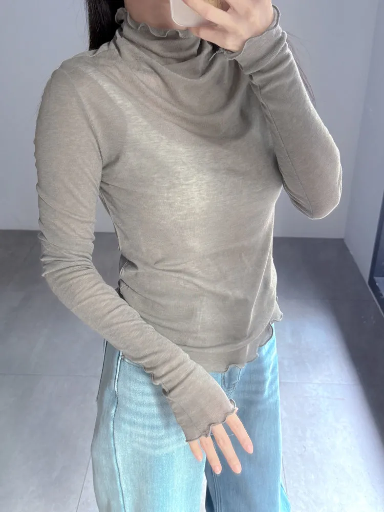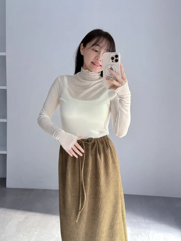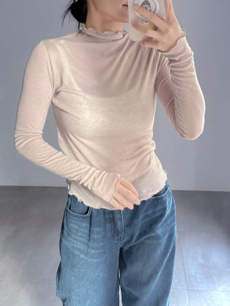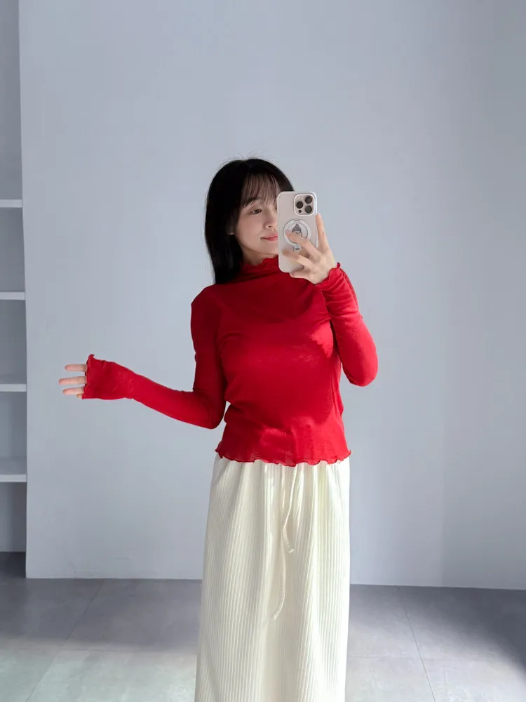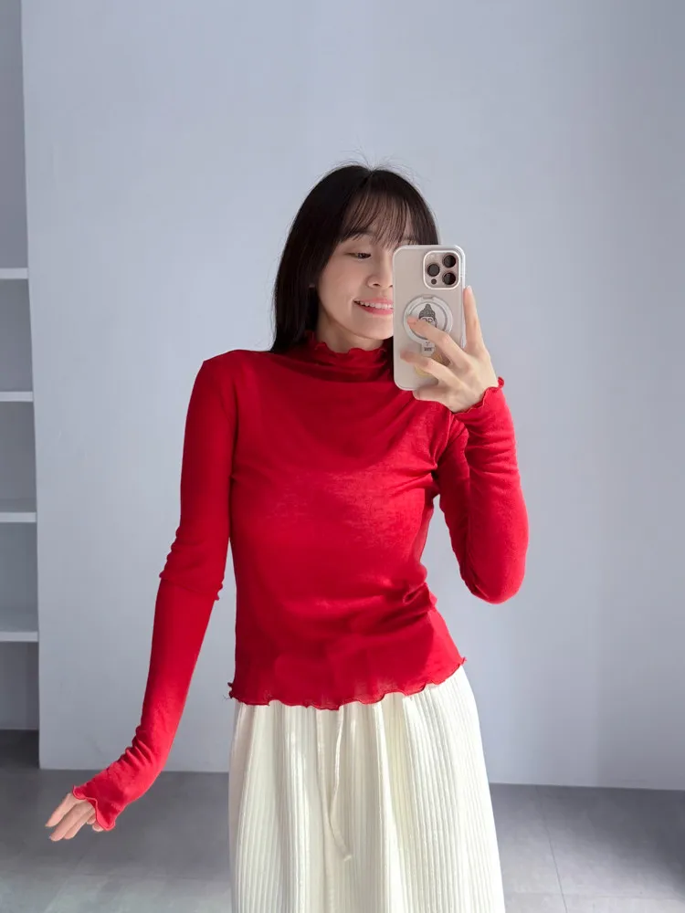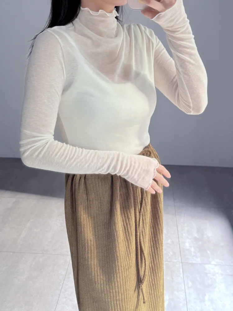 [特點] 天絲親膚彈性面料,捲邊造型設計。