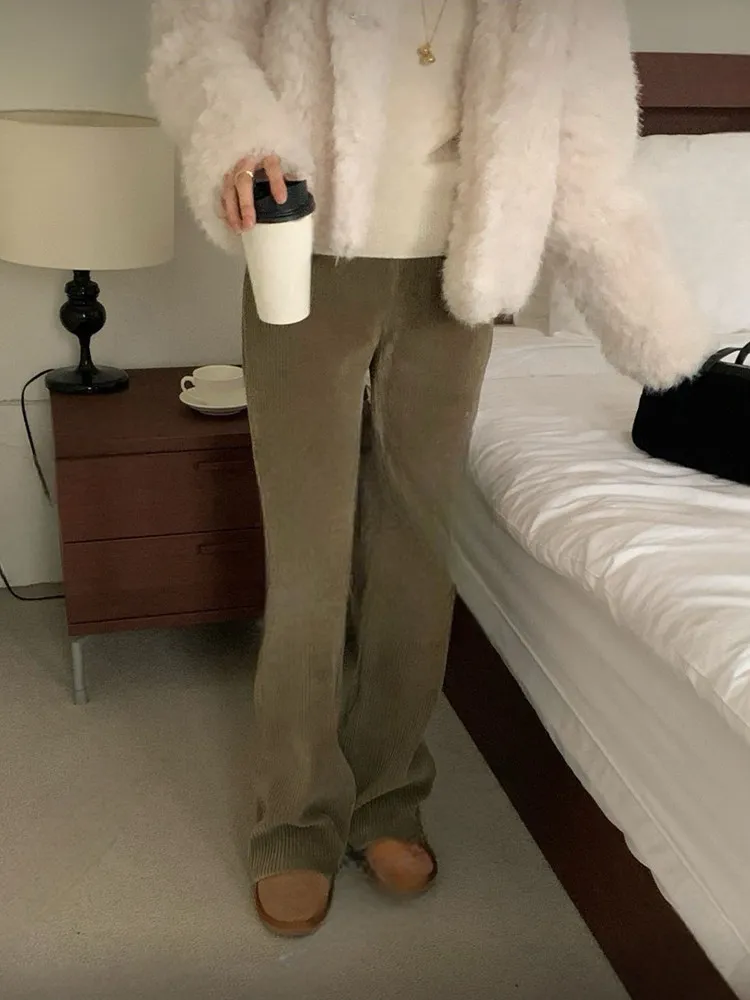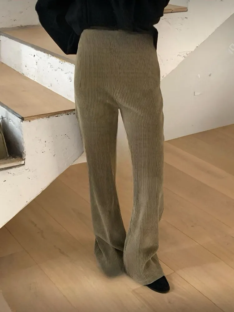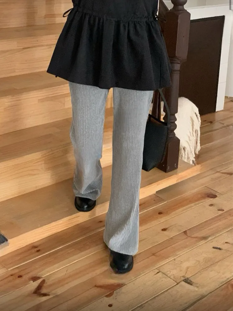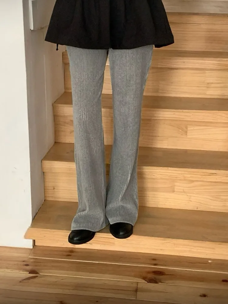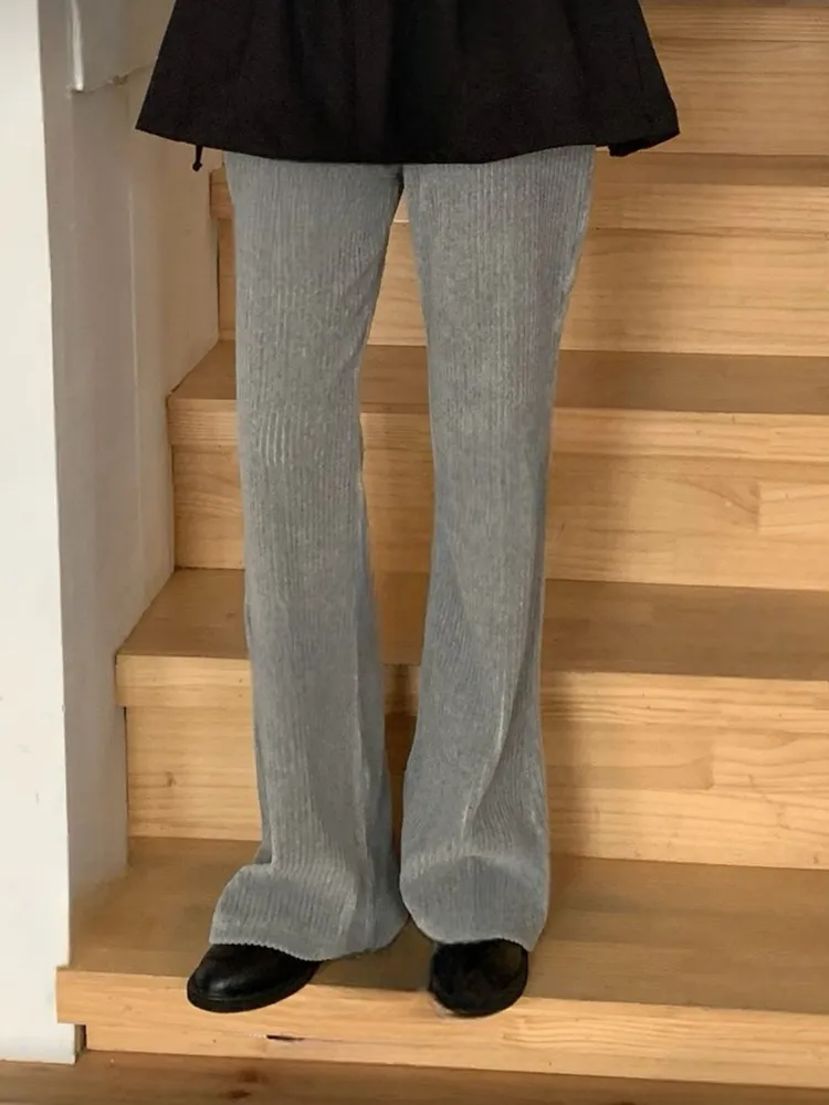 絨面直紋喇叭褲