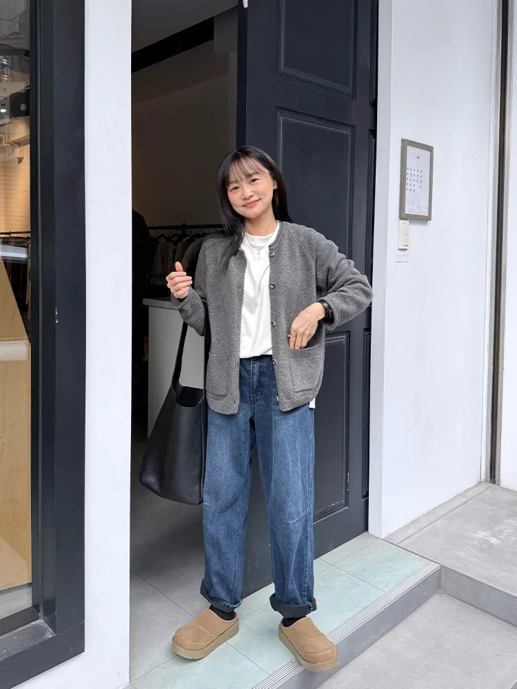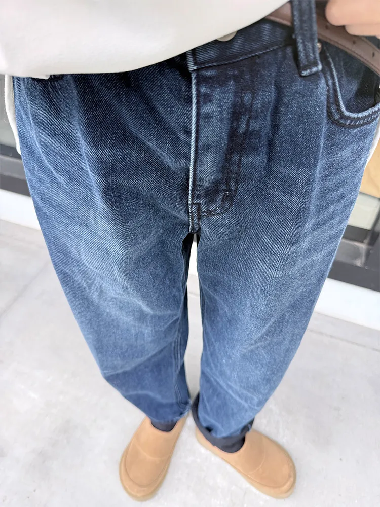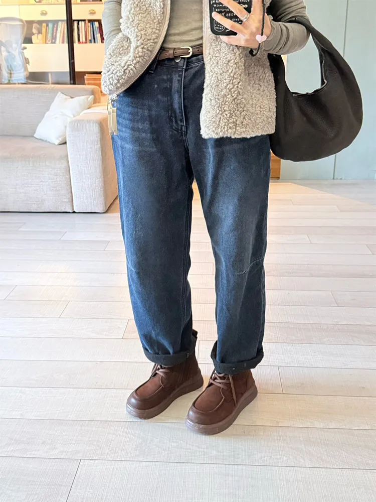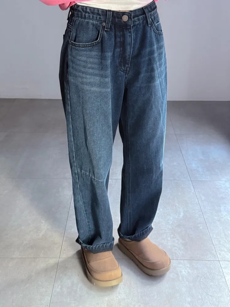 冬日深藍磨毛男友褲