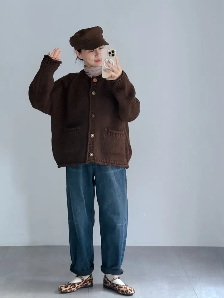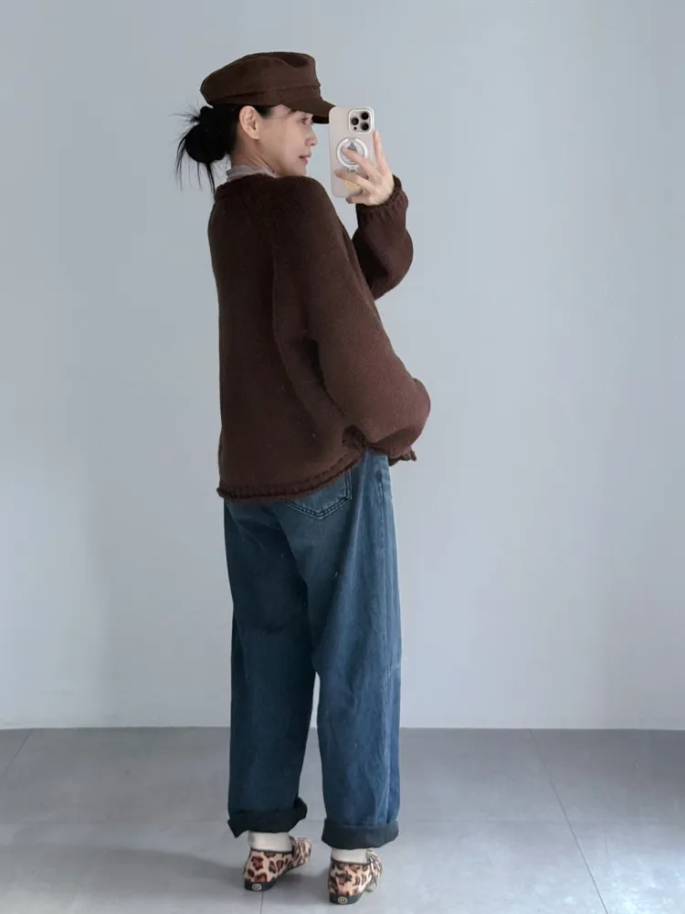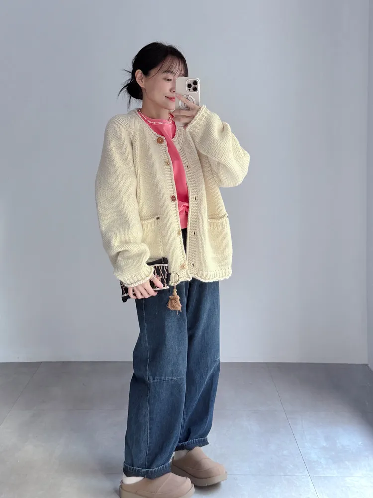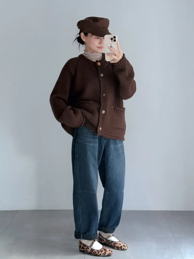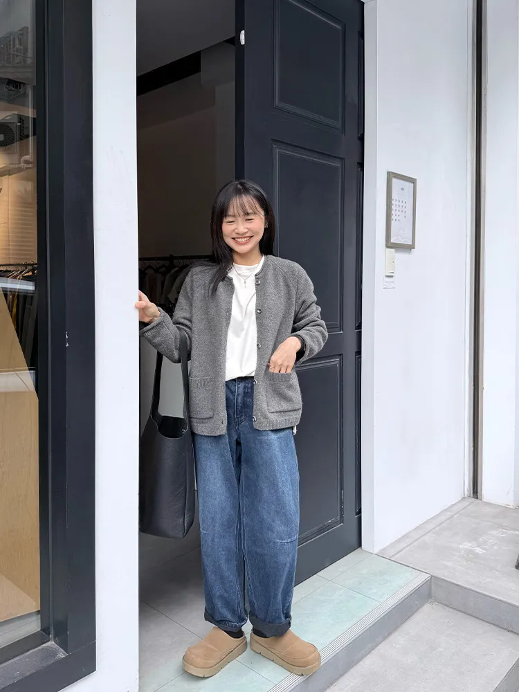 冬日深藍磨毛男友褲