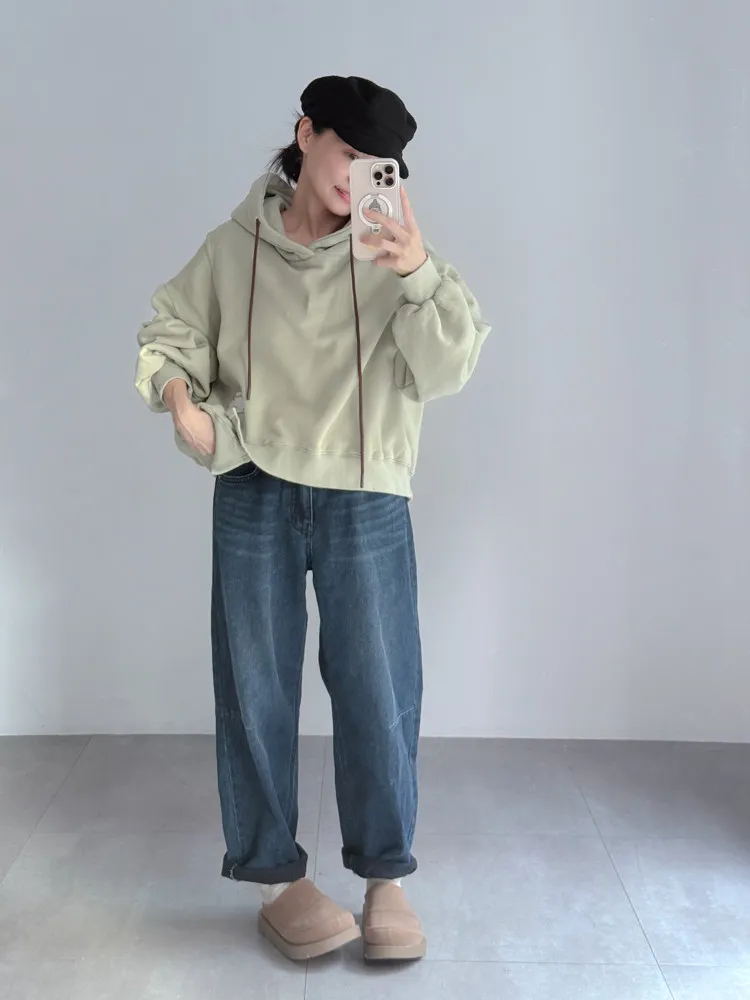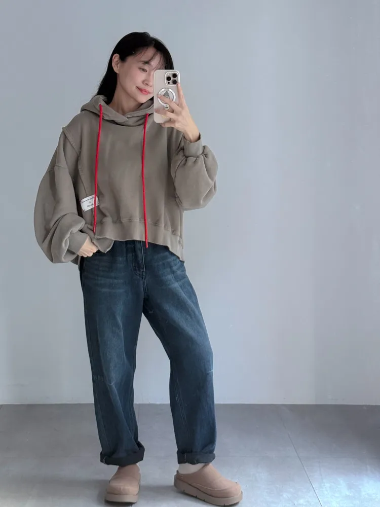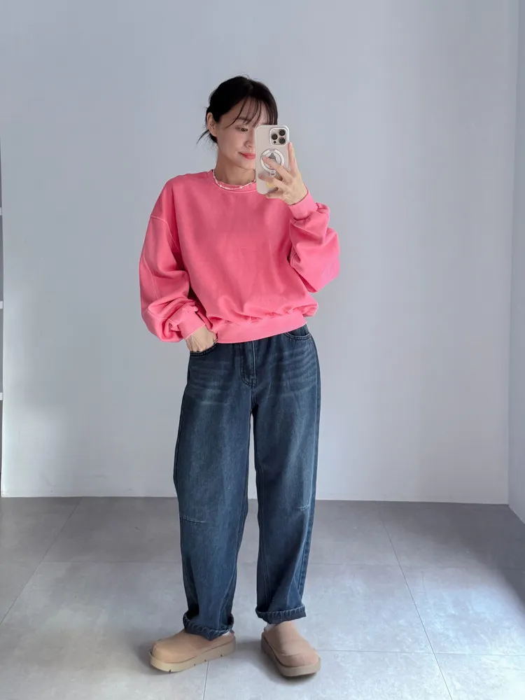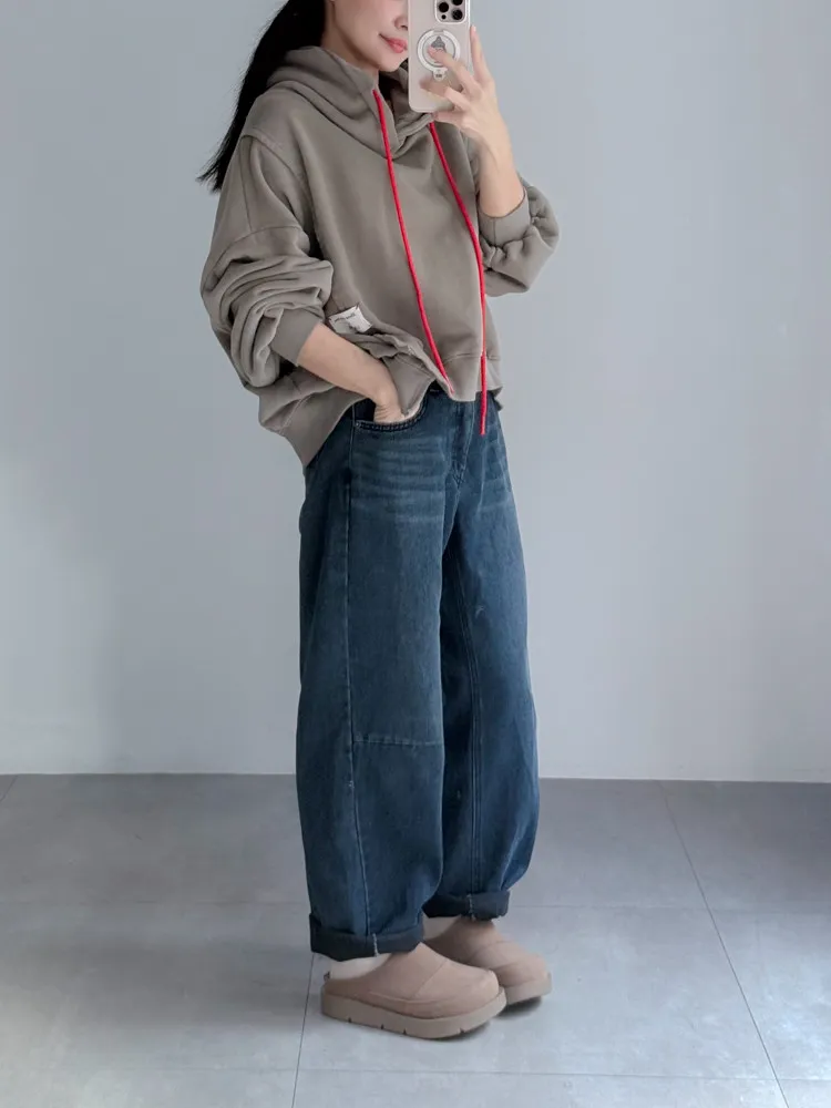 [特點] 後鬆緊彈性腰圍,丹寧布料無彈性,內裡微磨毛,男友褲版型。