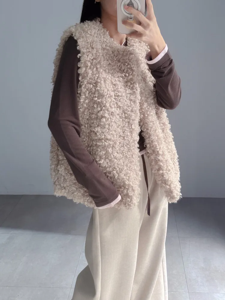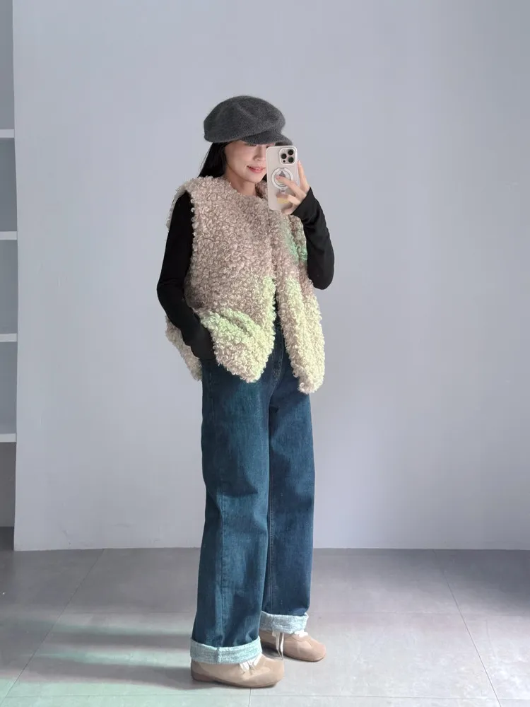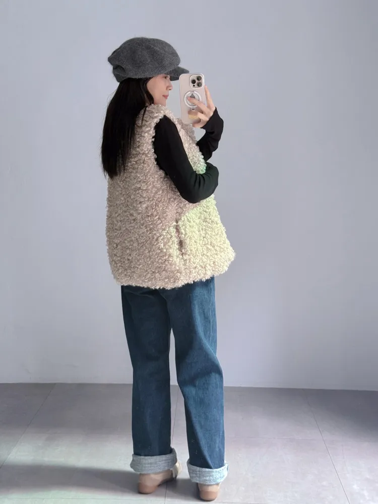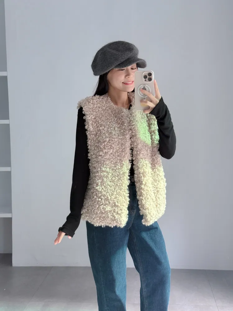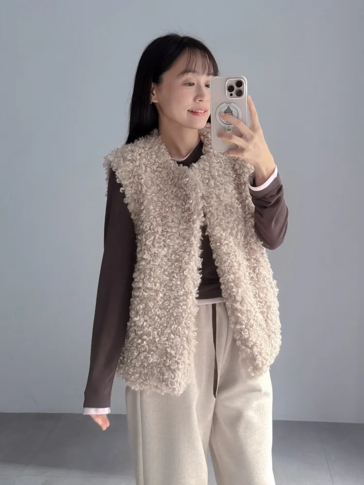 [特點] 捲毛感羊毛面料,立體蓬鬆、不扁塌,開襟無釦設計,
