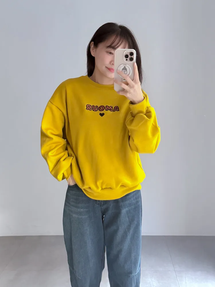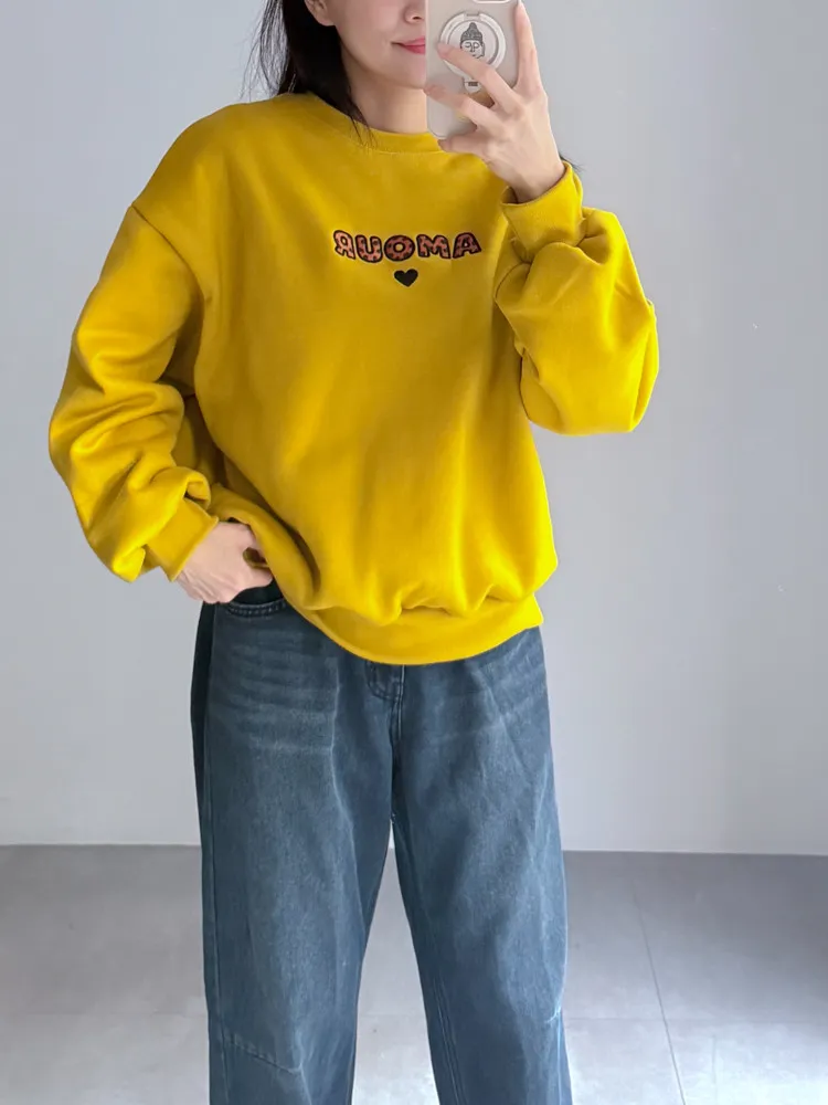 [特點] 圓領寬鬆版型剪裁,內裡刷毛面料,刺繡造型設計。