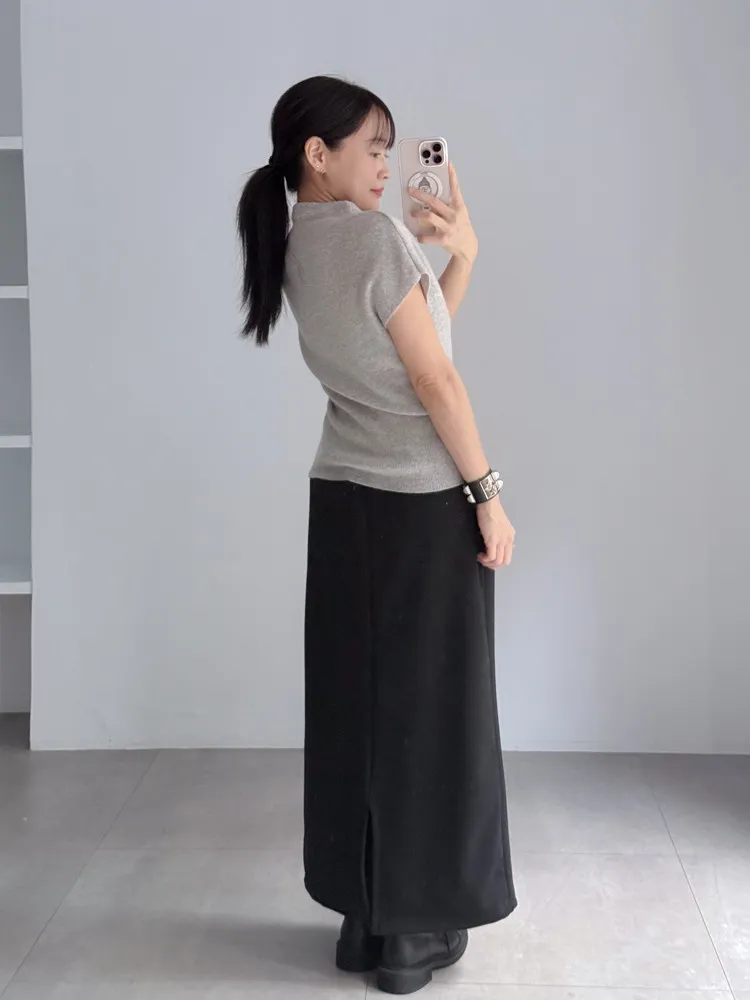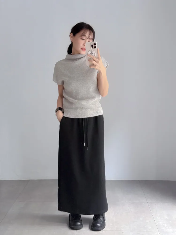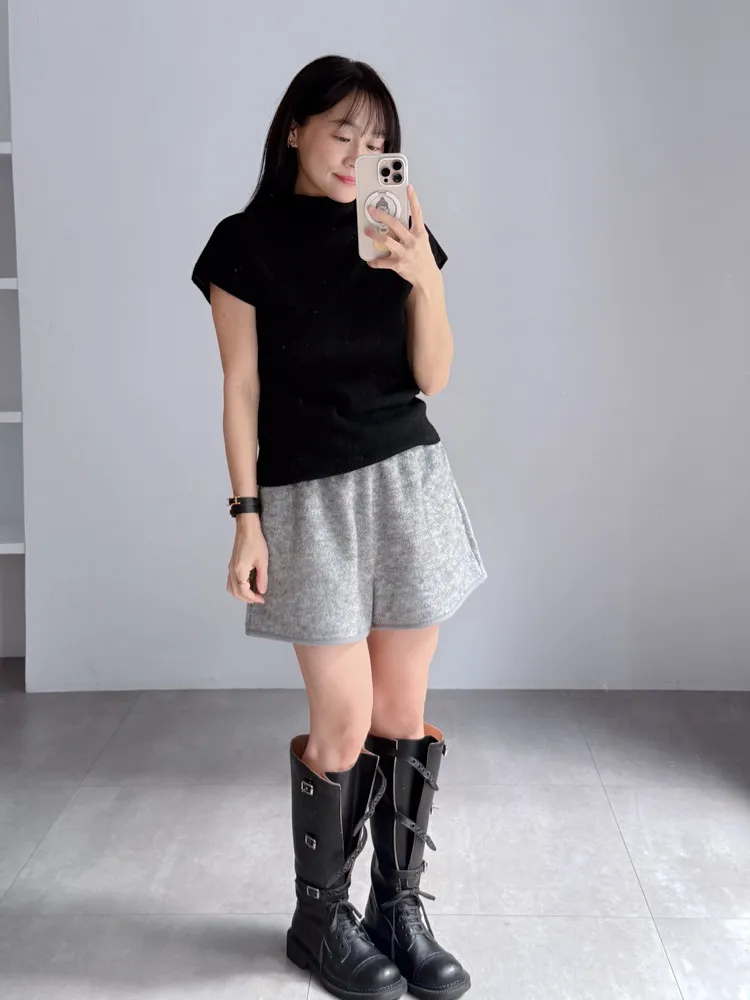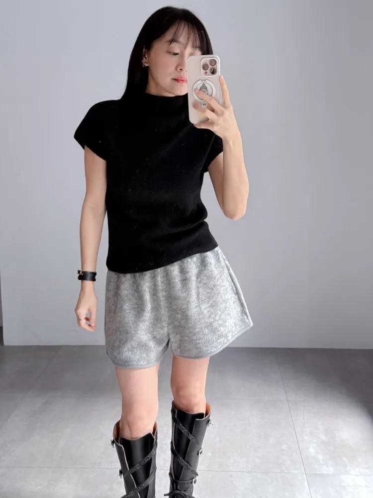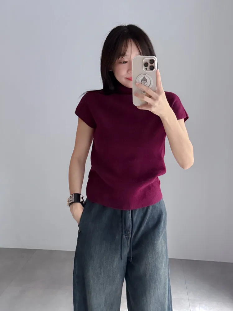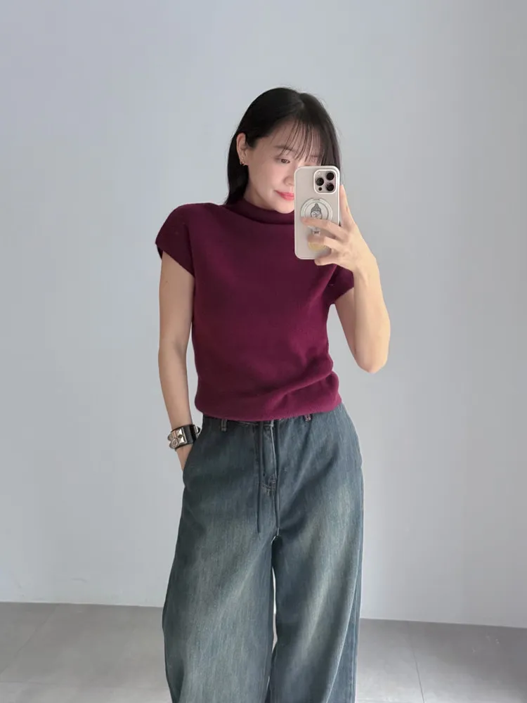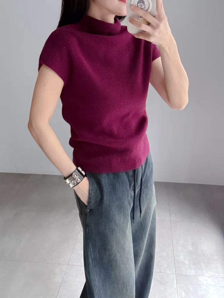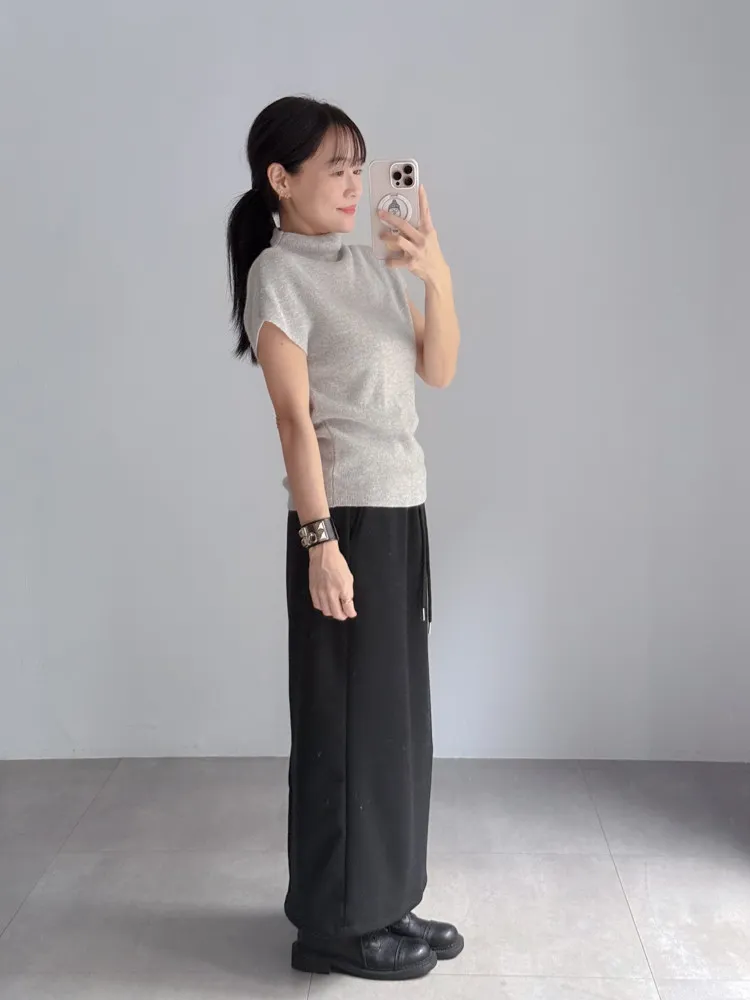 [成份] 喀什米爾5%、美麗諾羊毛 25%、尼龍 55%、聚酯纖維15% [特點] 細緻羅紋針織,高領+半袖設計、修飾手臂肉肉,版型腰部有內縮感修身設計,布料彈性佳,手感柔軟。 [洗滌建議] 含羊毛成份,建議送乾洗,較易維持衣服的完整性