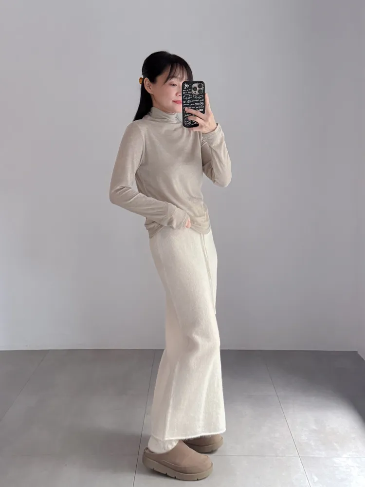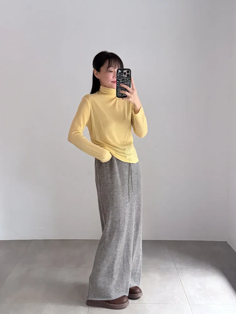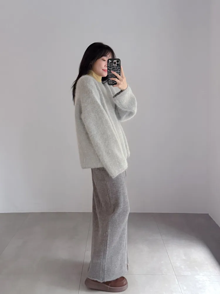[成份] 羊駝毛 25%、羊毛 20%、 尼龍 37%、壓克力 15%、聚酯纖維3% [特點] 抽繩鬆緊彈性腰圍,鬆軟毛面料,修身直順版型,無口袋。 [洗滌建議] 含羊毛成份,建議送乾洗,較易維持衣服的完整性