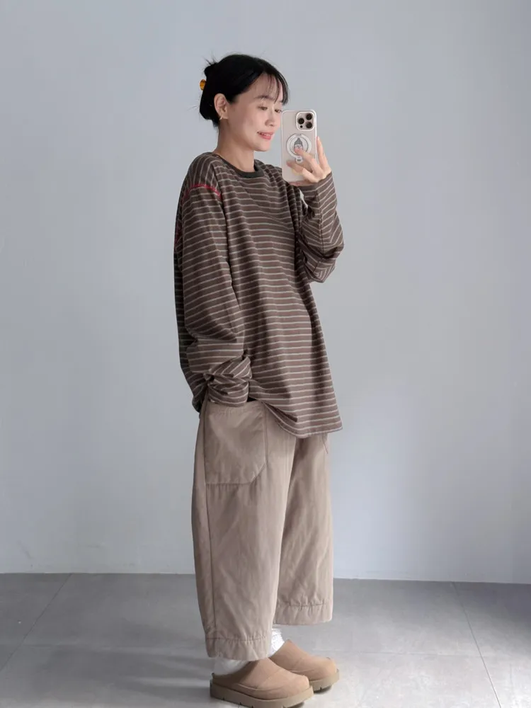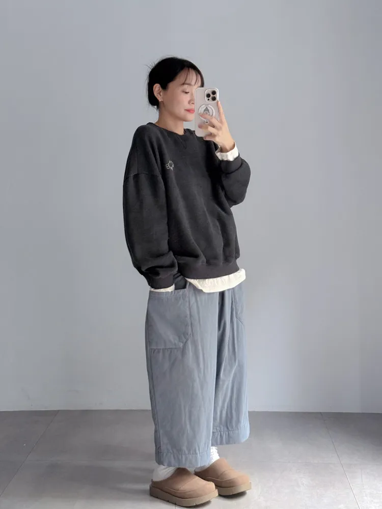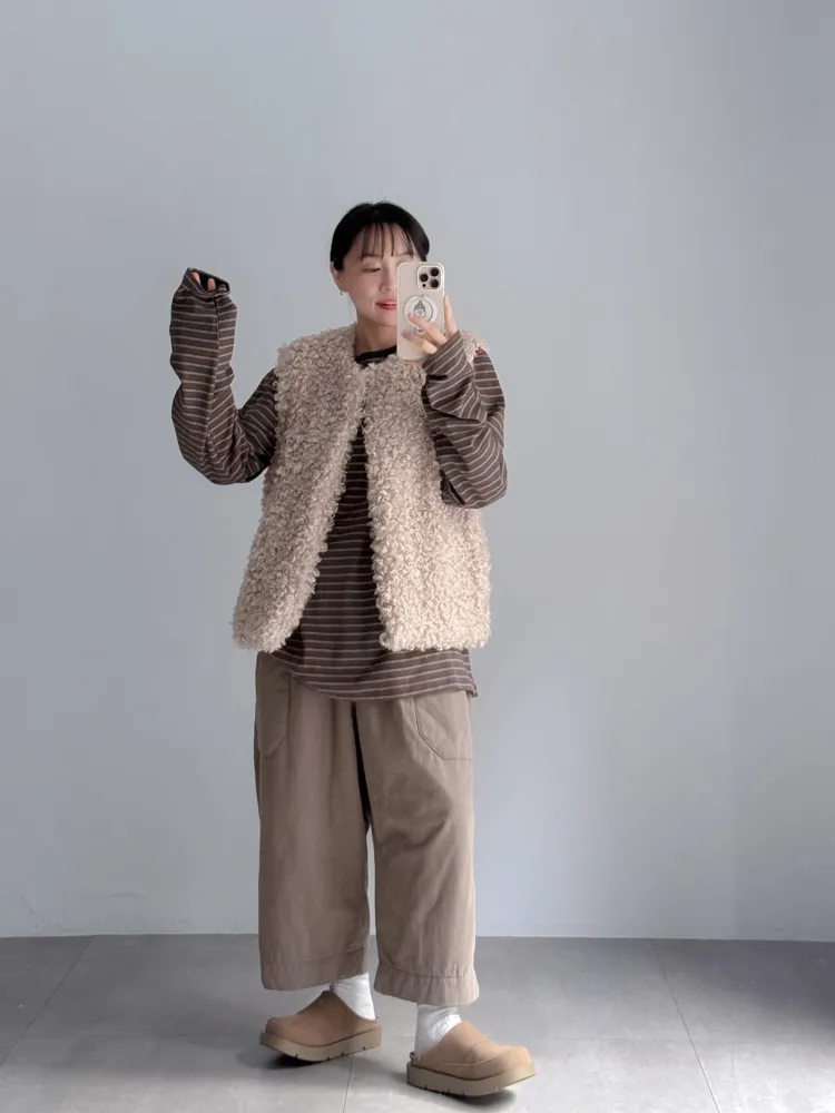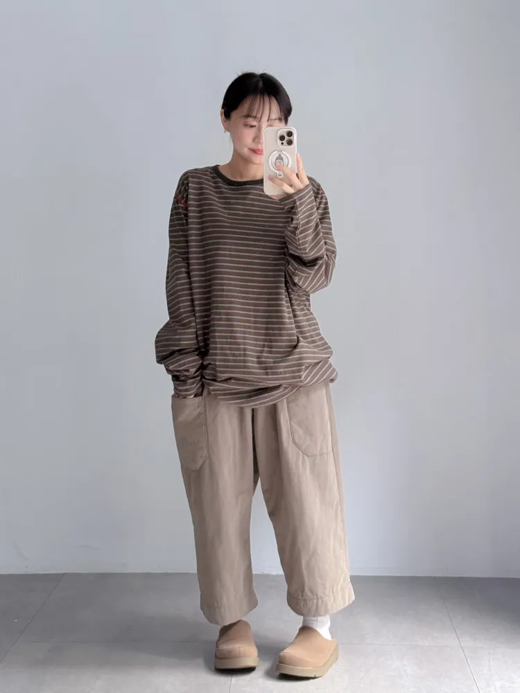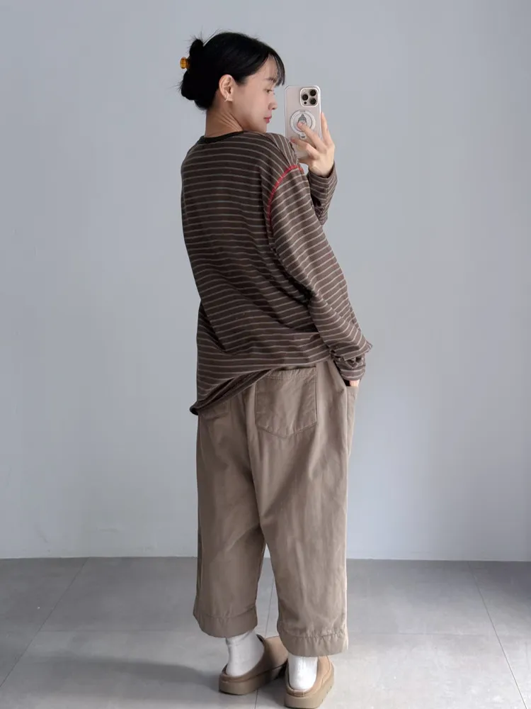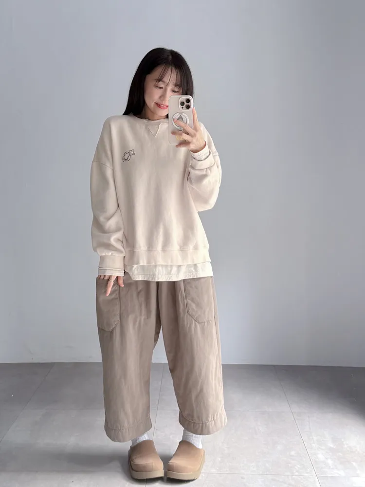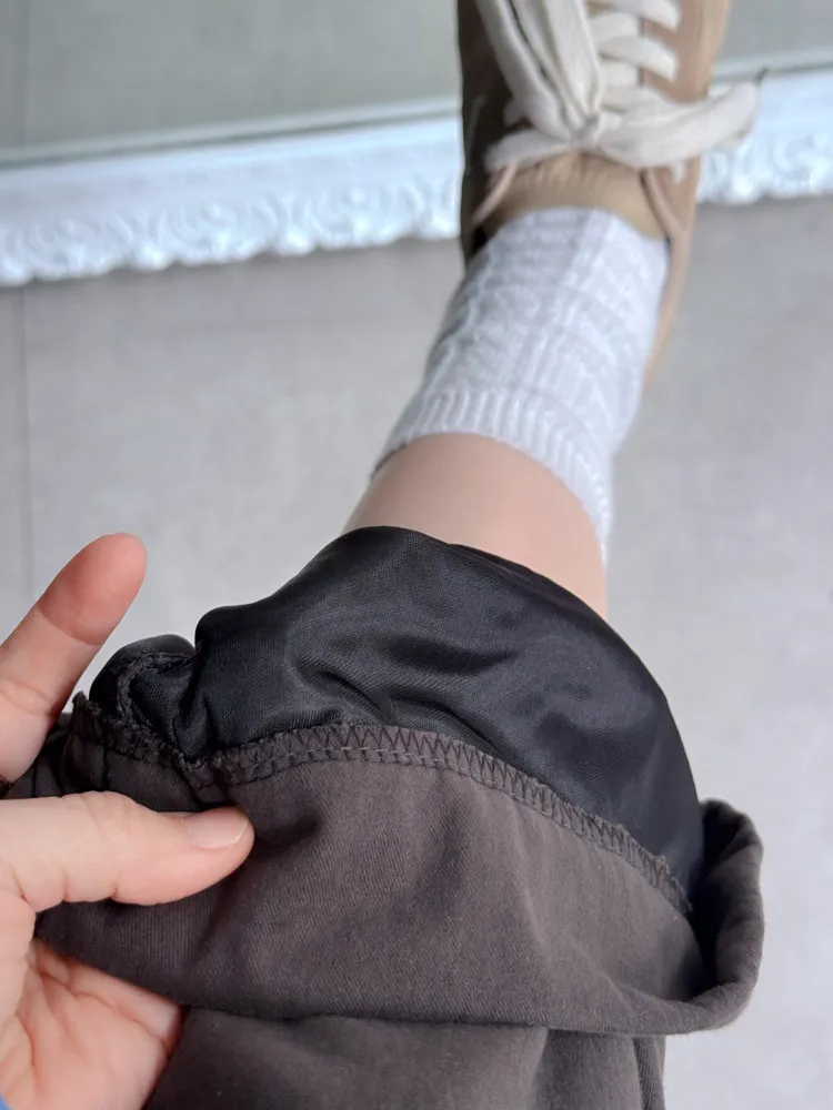 [特點] 鬆緊彈性腰圍,單顆鈕扣裝飾,上寬下寬版型,長度穿起來約8分長,絨料手感內有內裡布。