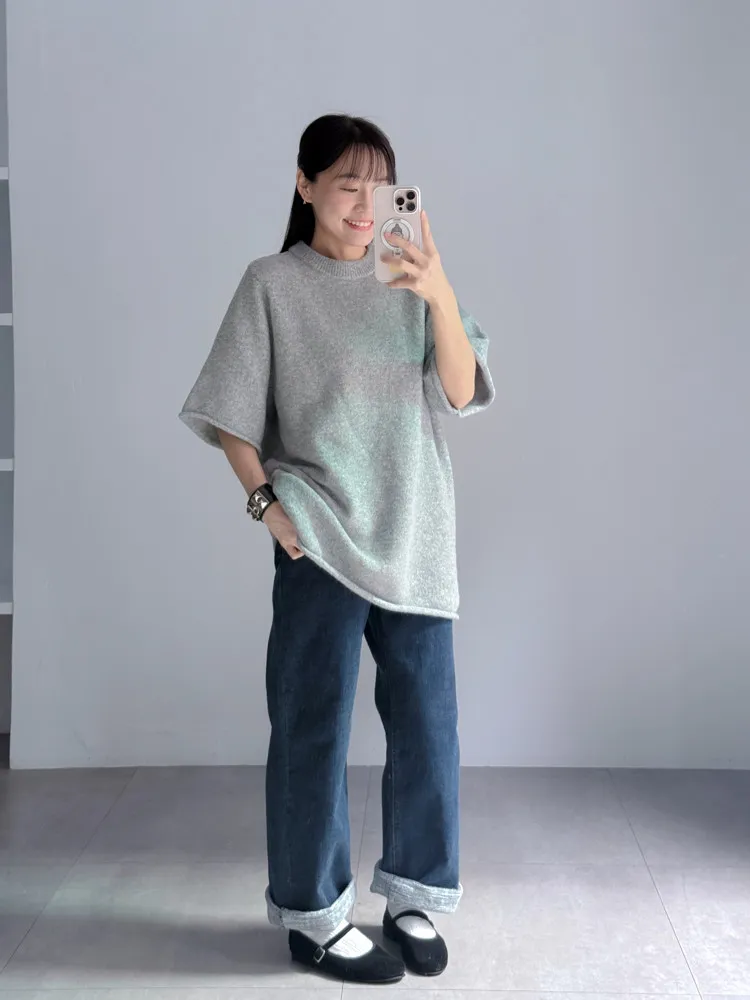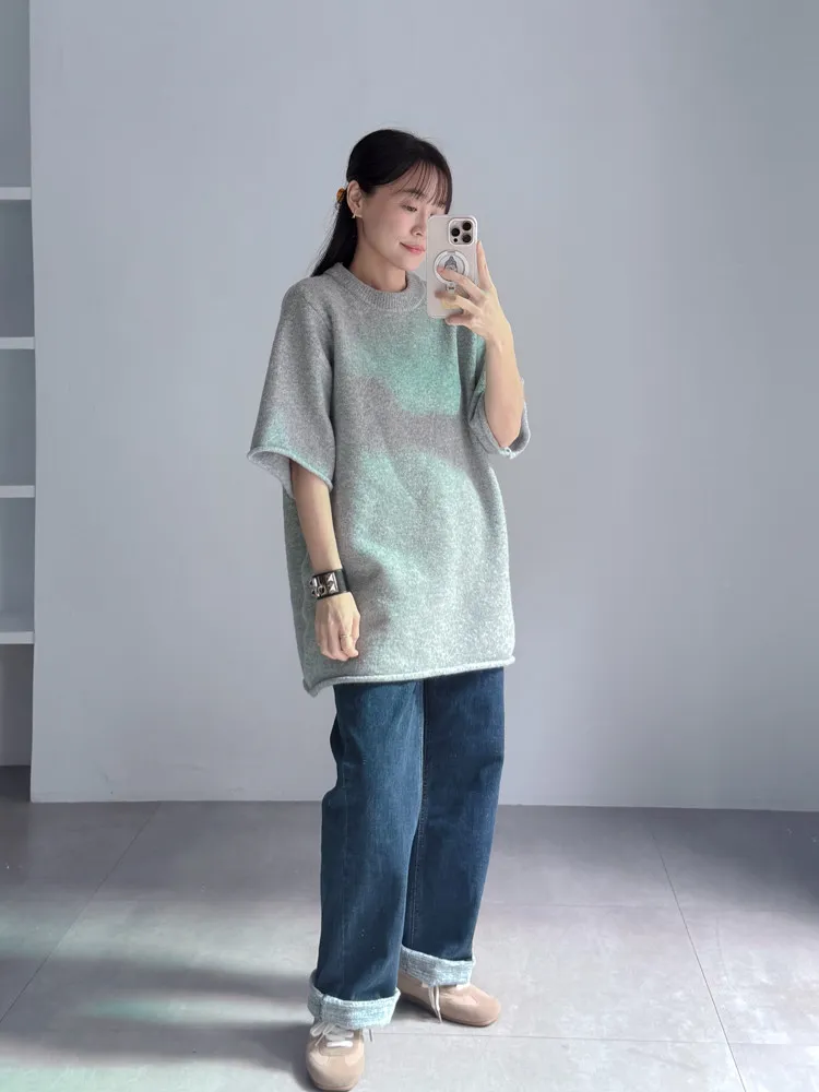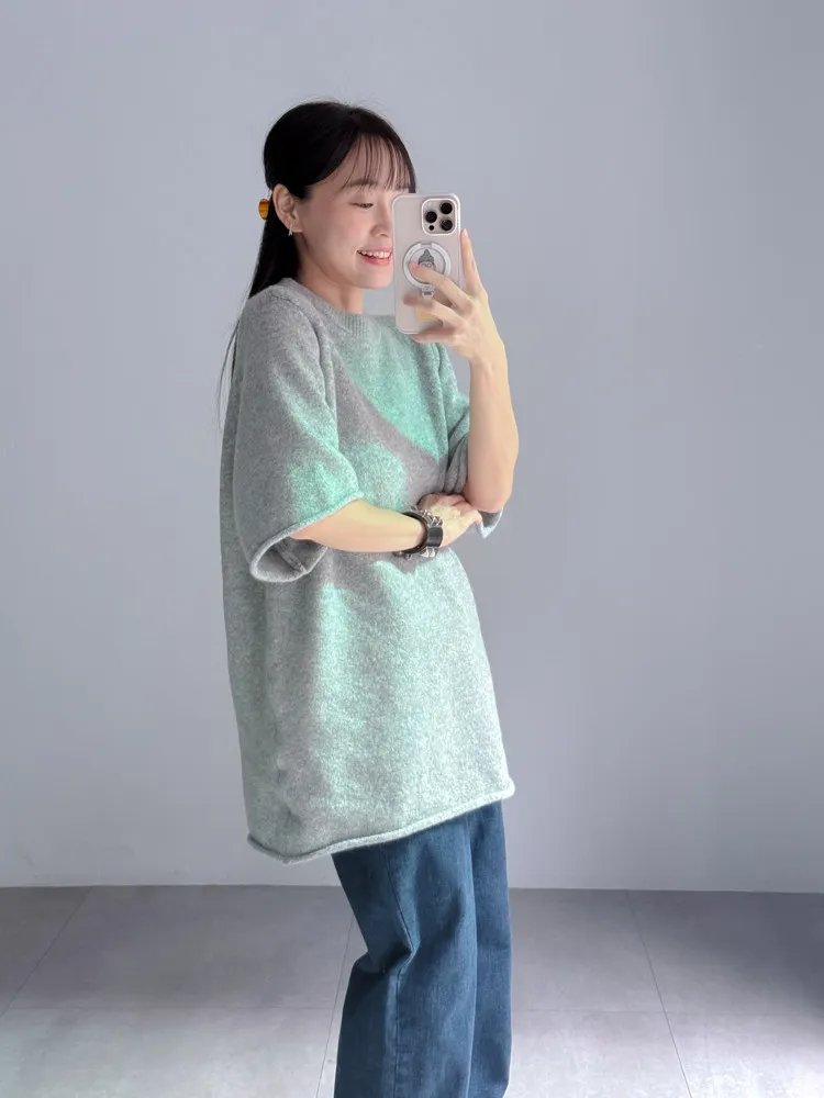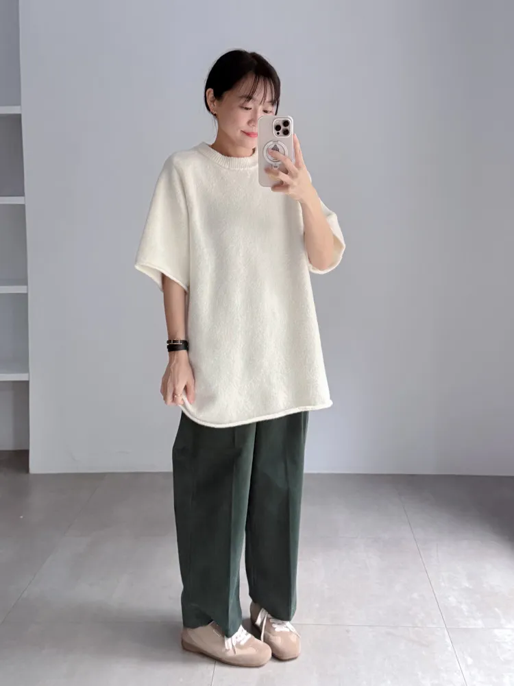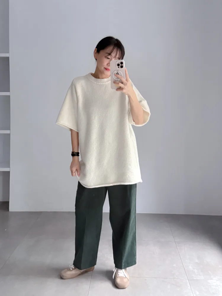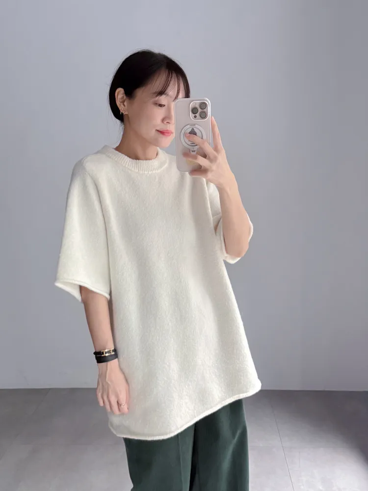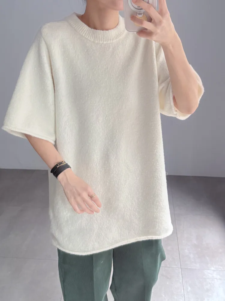 [特點] QQ手感舒服的針織面料,順身略寬鬆設計,下擺捲邊剪裁。