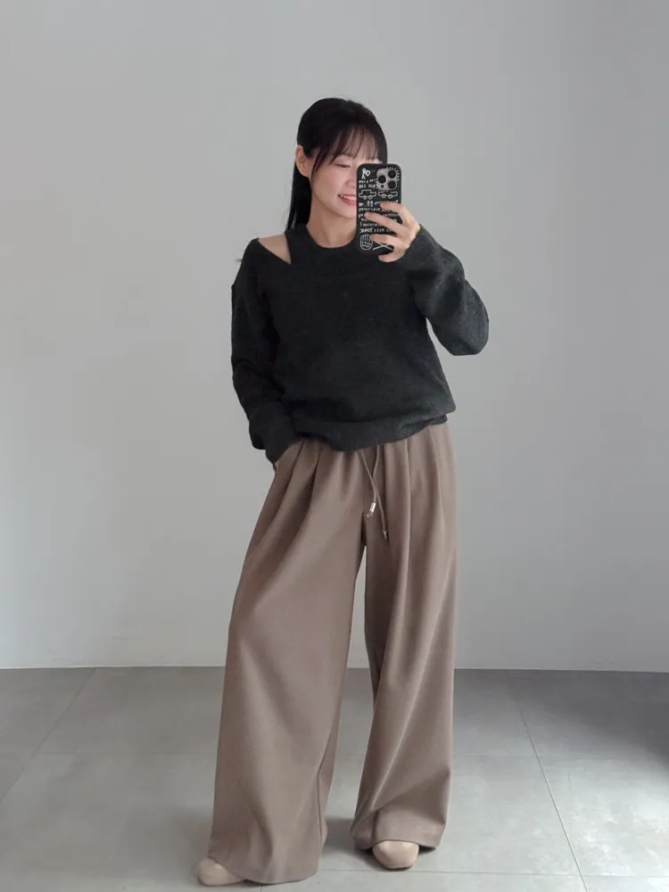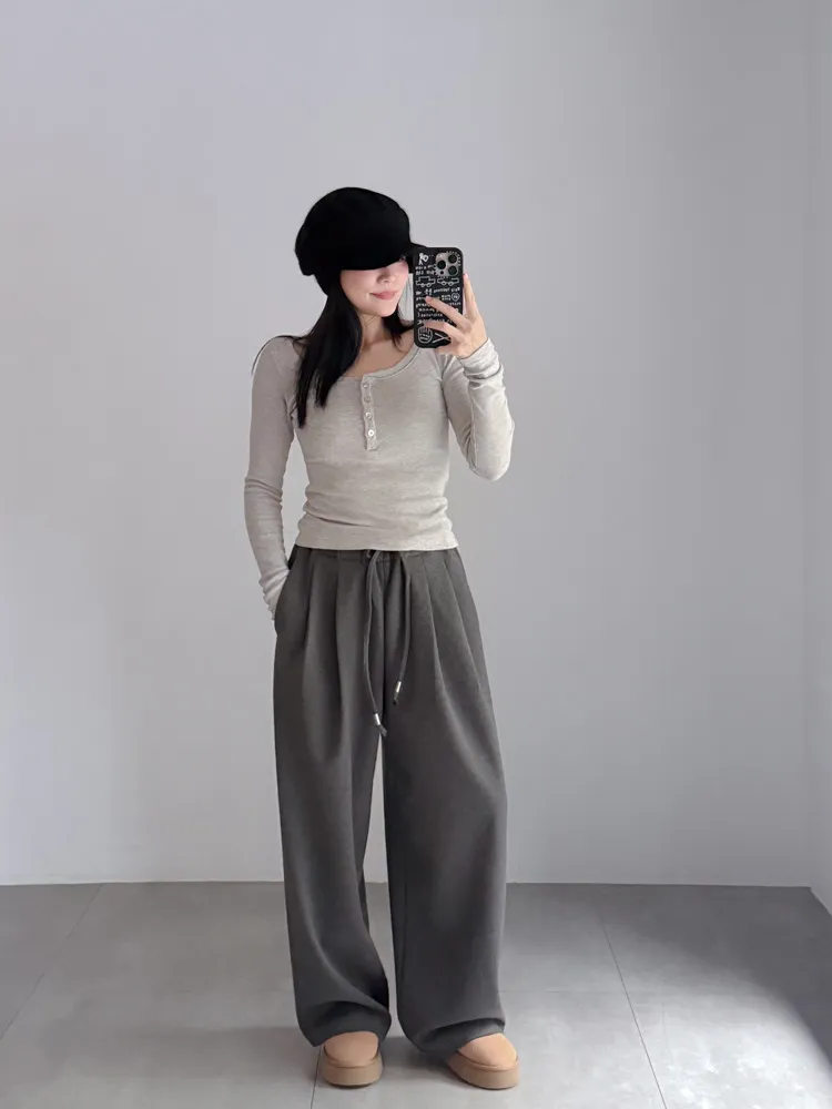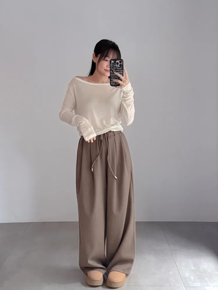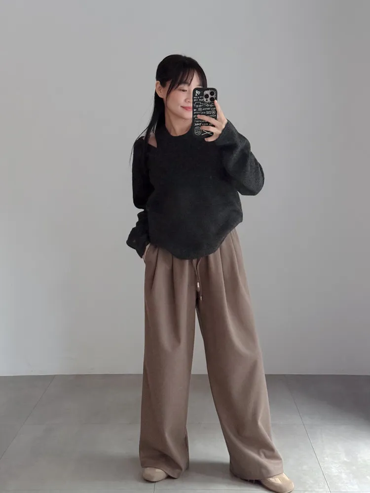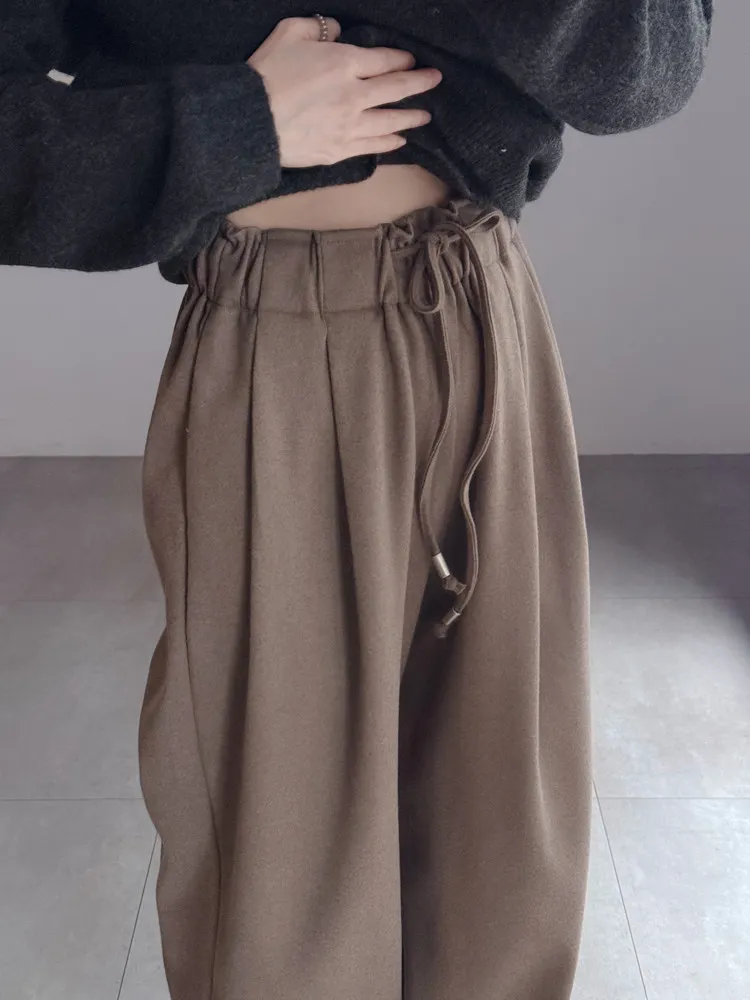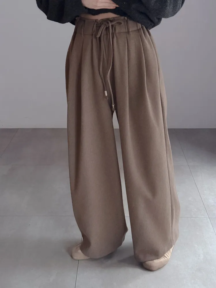 [成份] 聚酯纖維80%、嫘縈17%、彈性纖維3% [特點] 寬版厚鬆緊彈性腰圍,表面細緻霧感觸感柔順,前腰打摺設計,增加褲身立體度與垂墜感。 [洗滌建議] 衣料含嫘縈成份,該材質在水中強度會變弱,為避免縮水,建議乾洗。
