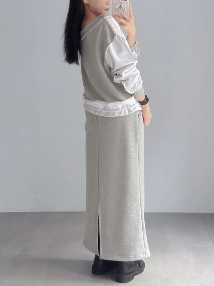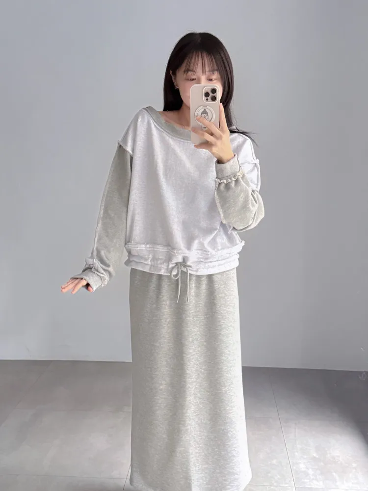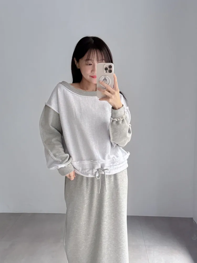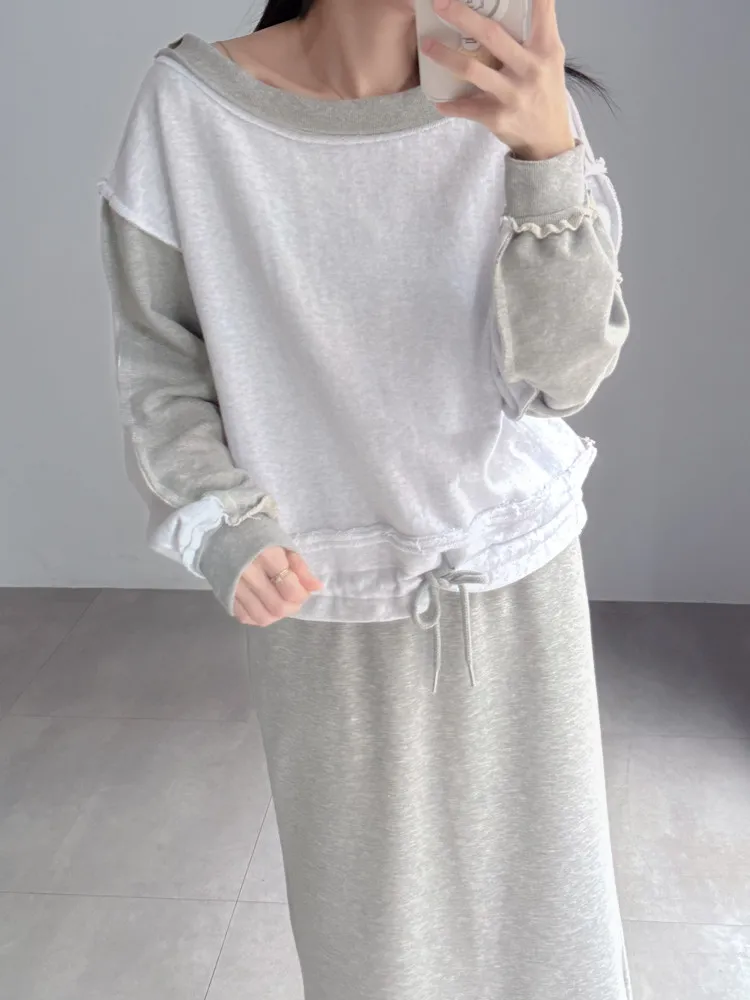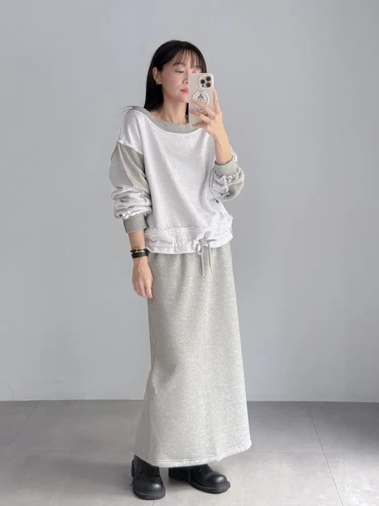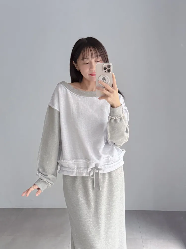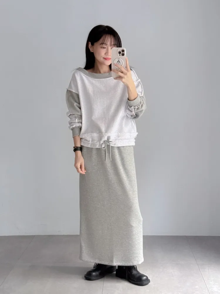 [特點] 大U領口,不修邊拼接設計剪裁,下擺抽繩可以調整造型。