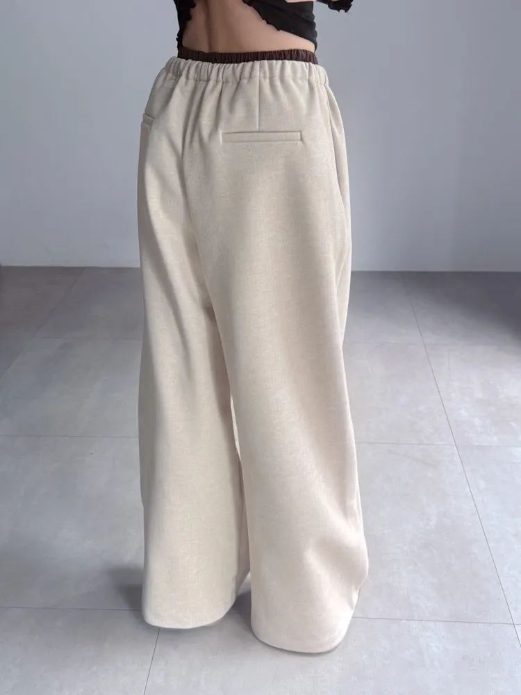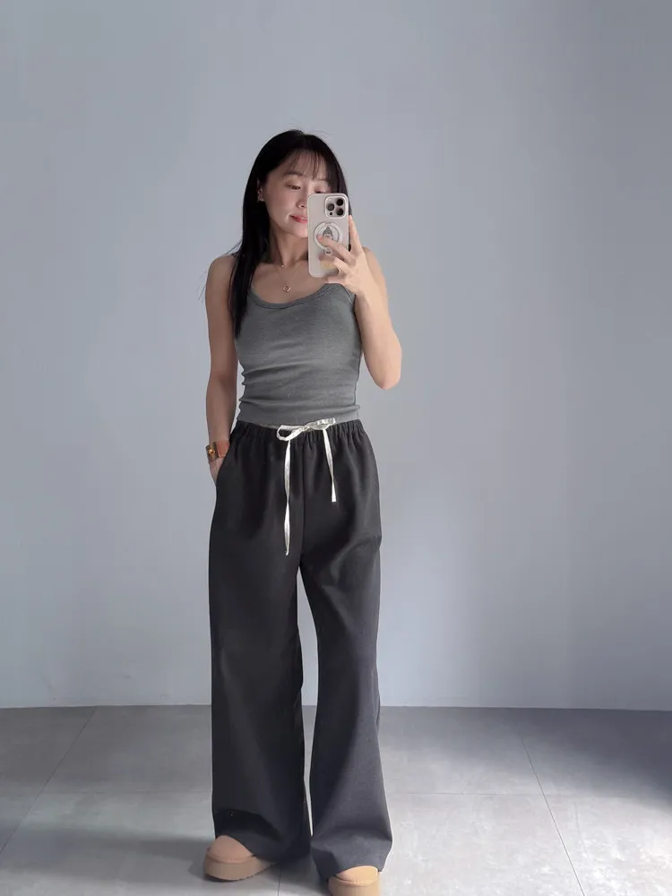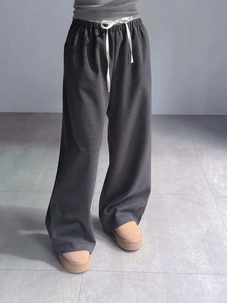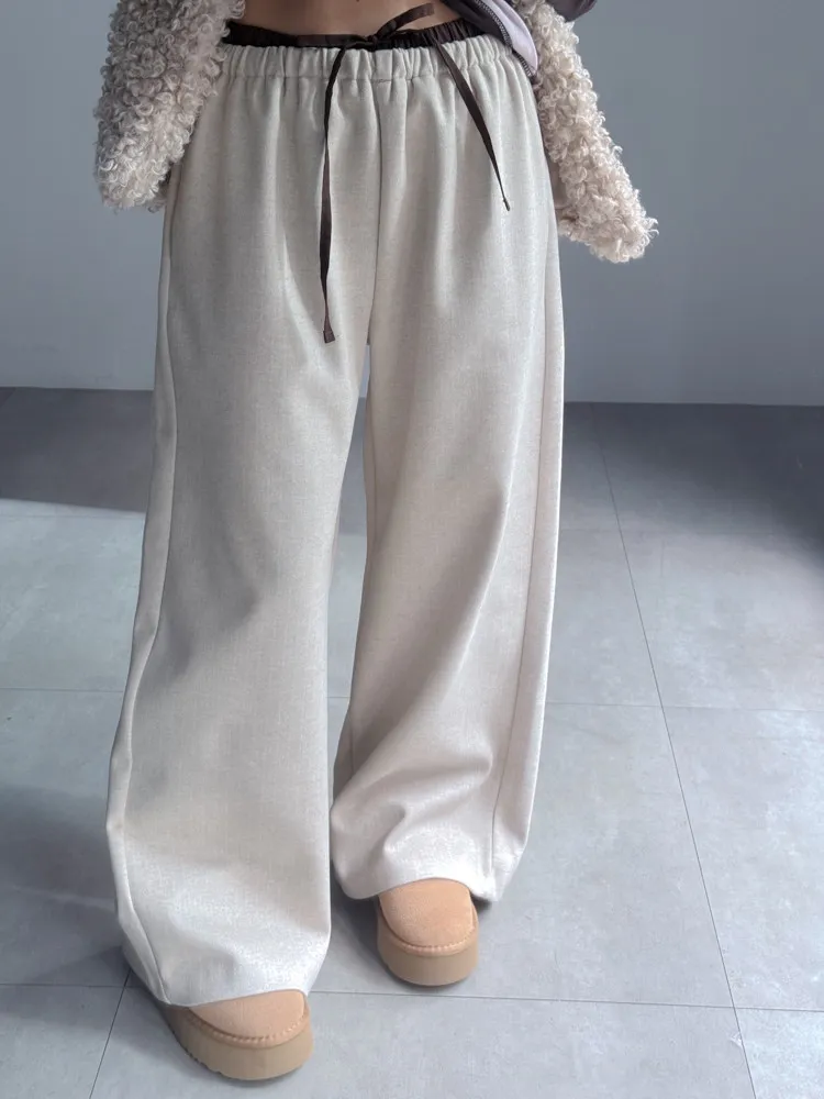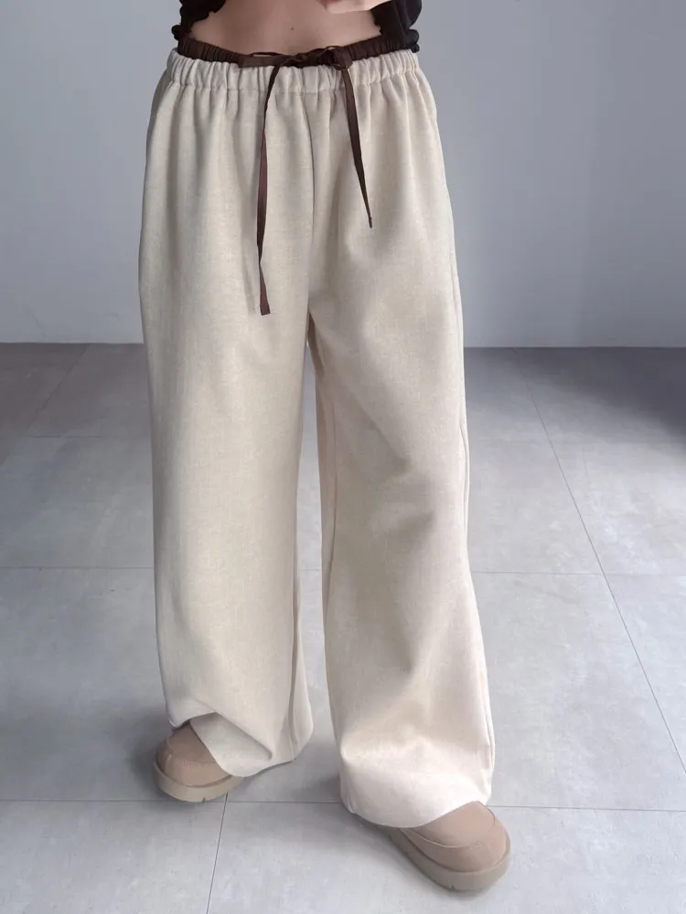 [成份] 聚酯纖維82%、嫘縈15%、彈性纖維3% [特點] 人字織紋感面料,面料有彈性親膚不扎,褲頭整圈鬆緊+抽繩設計,褲身線條直順,布料自然垂墜。 [洗滌建議] 衣料含嫘縈成份,該材質在水中強度會變弱,為避免縮水,建議乾洗。