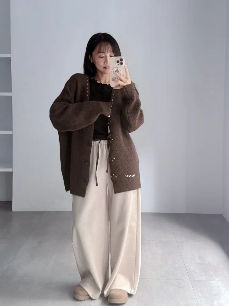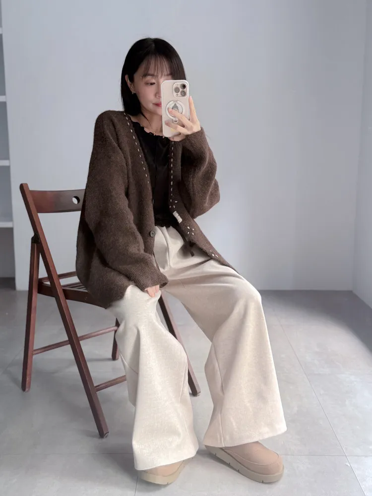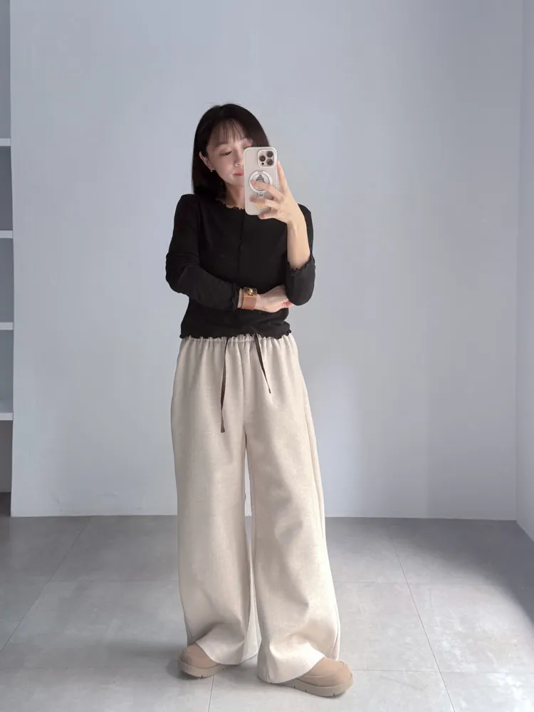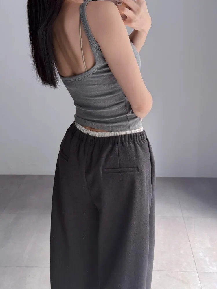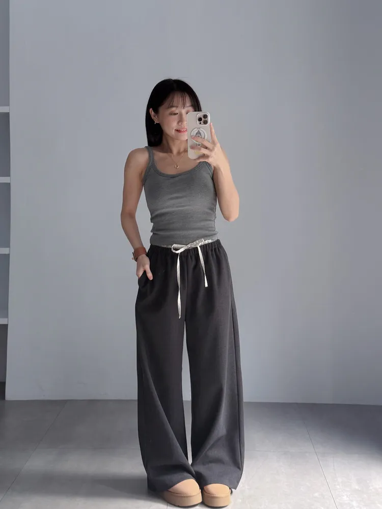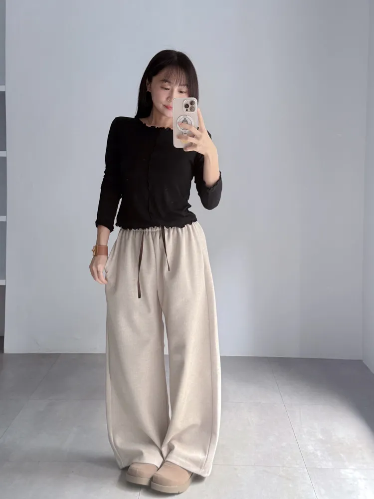 [成份] 聚酯纖維82%、嫘縈15%、彈性纖維3% [特點] 人字織紋感面料,面料有彈性親膚不扎,褲頭整圈鬆緊+抽繩設計,褲身線條直順,布料自然垂墜。 [洗滌建議] 衣料含嫘縈成份,該材質在水中強度會變弱,為避免縮水,建議乾洗。