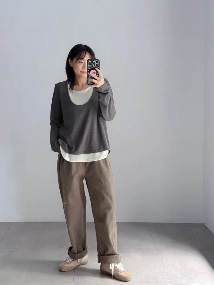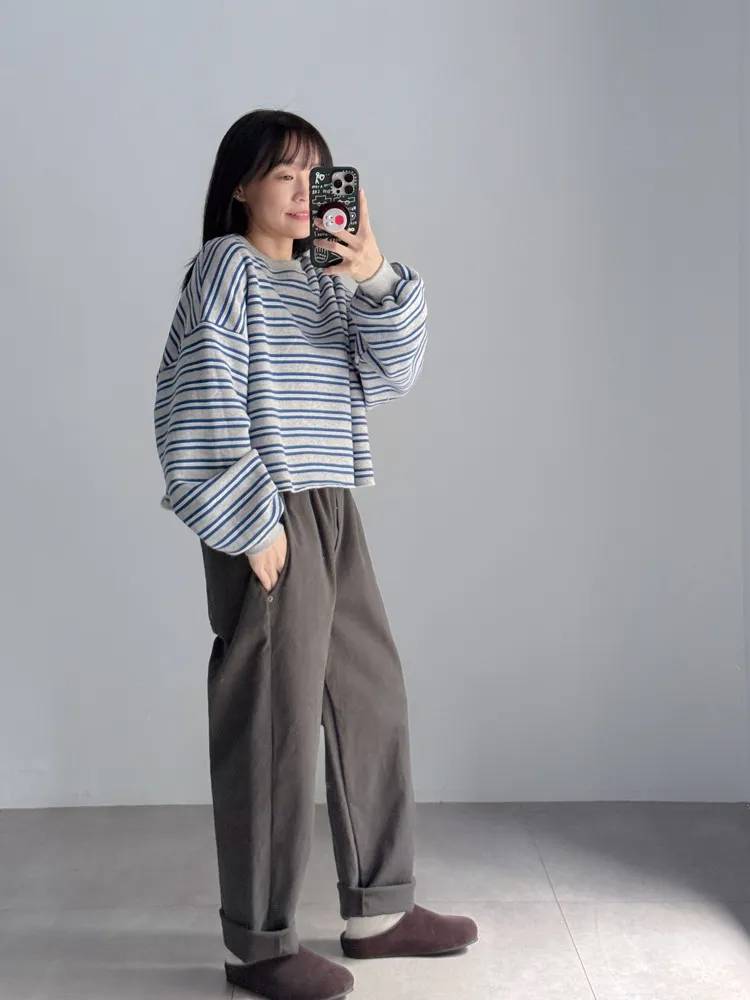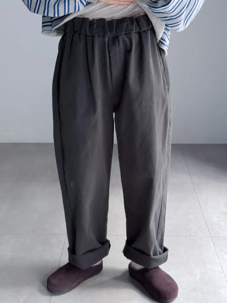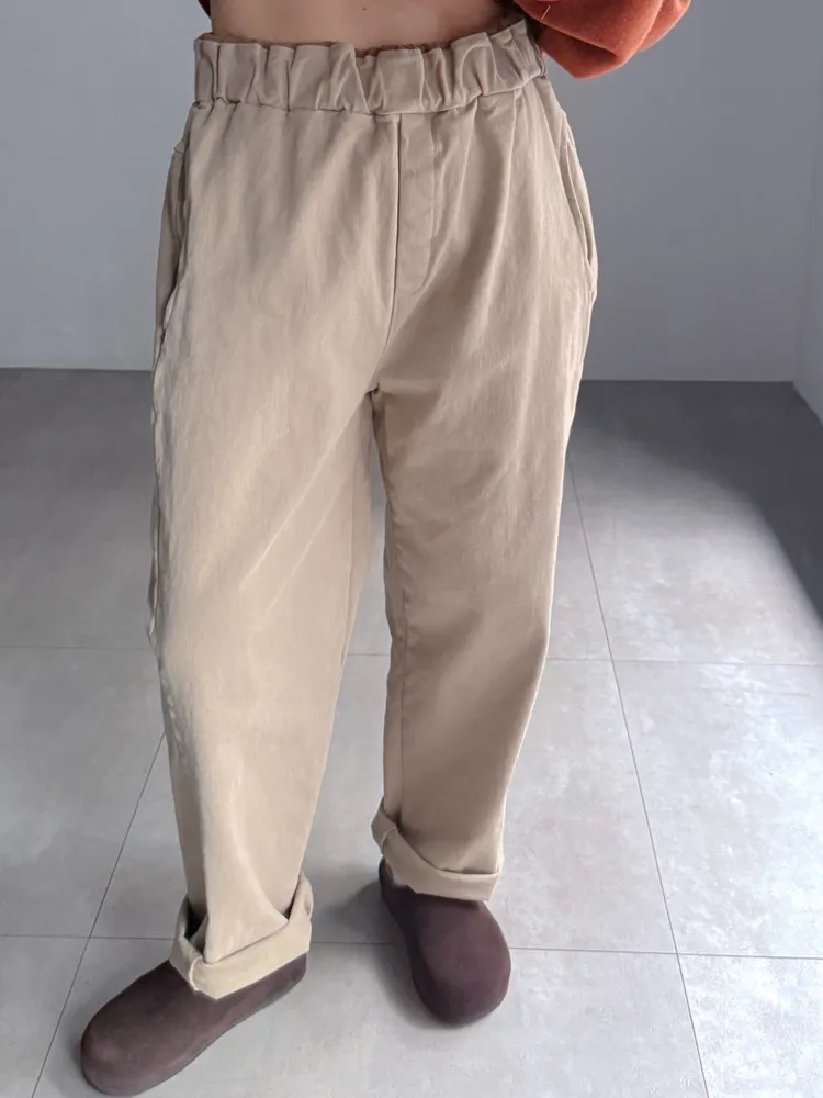 [特點] 鬆緊彈性腰圍,撞色褲頭造型設計,偏厚棉面料。