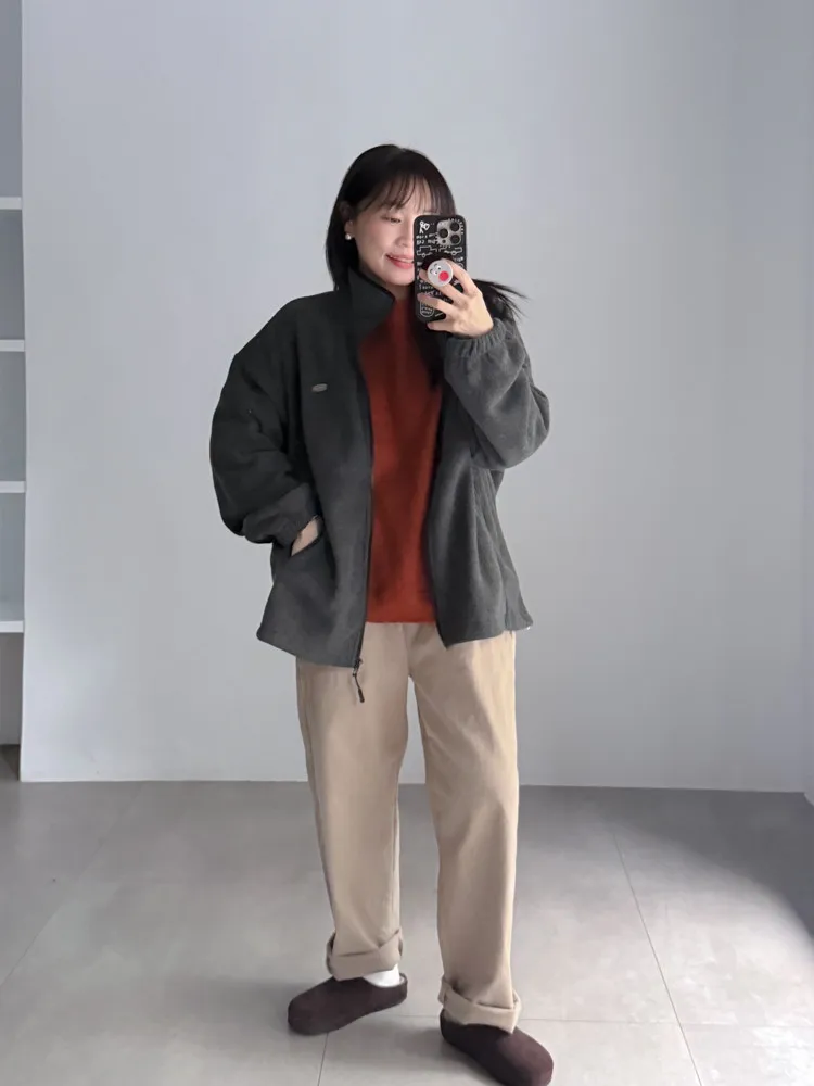 縫線拼色刷毛休閒褲