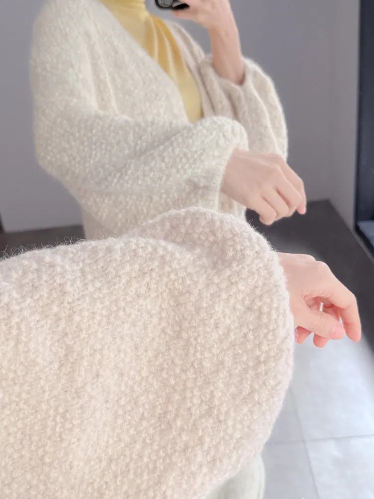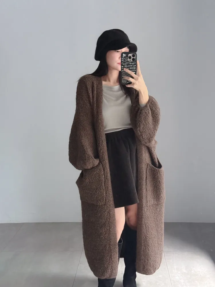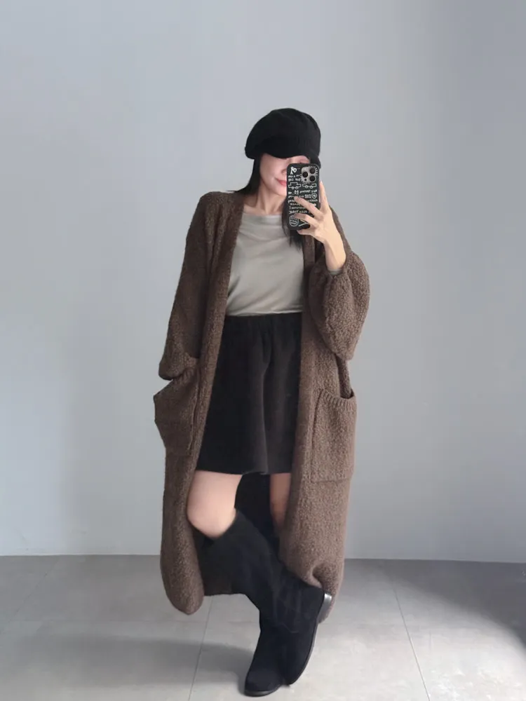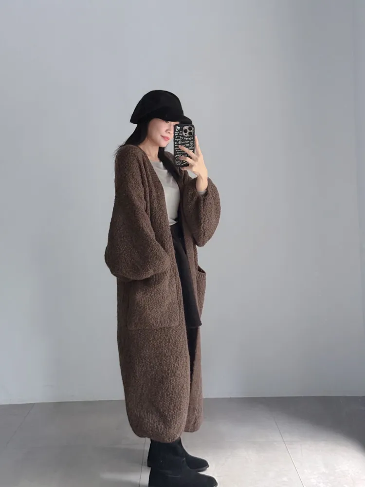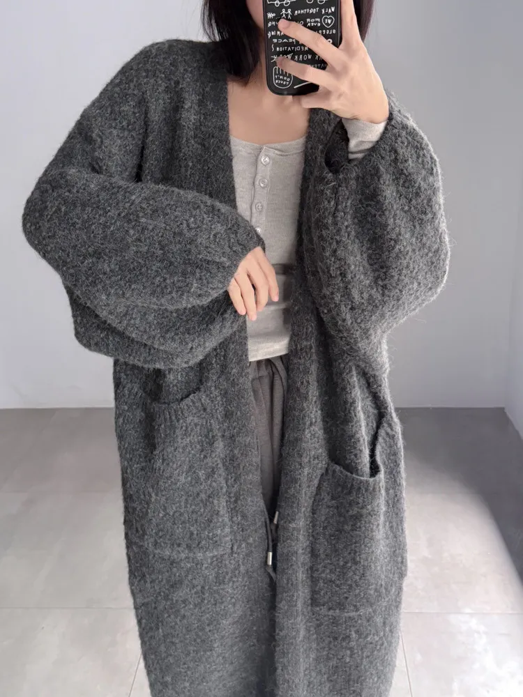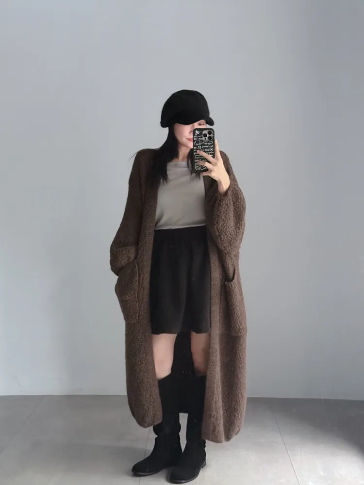 [特點] 扎實鬆軟面料,落肩+開襟設計,長版版型修身、保暖。