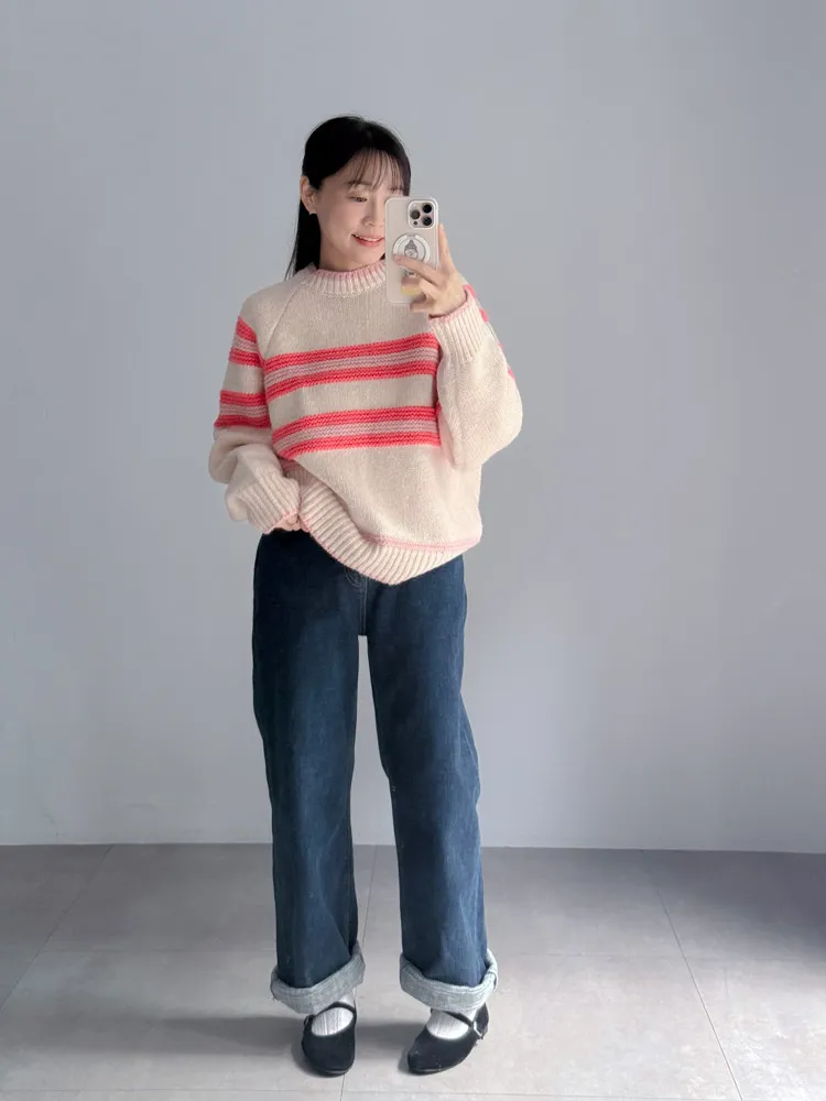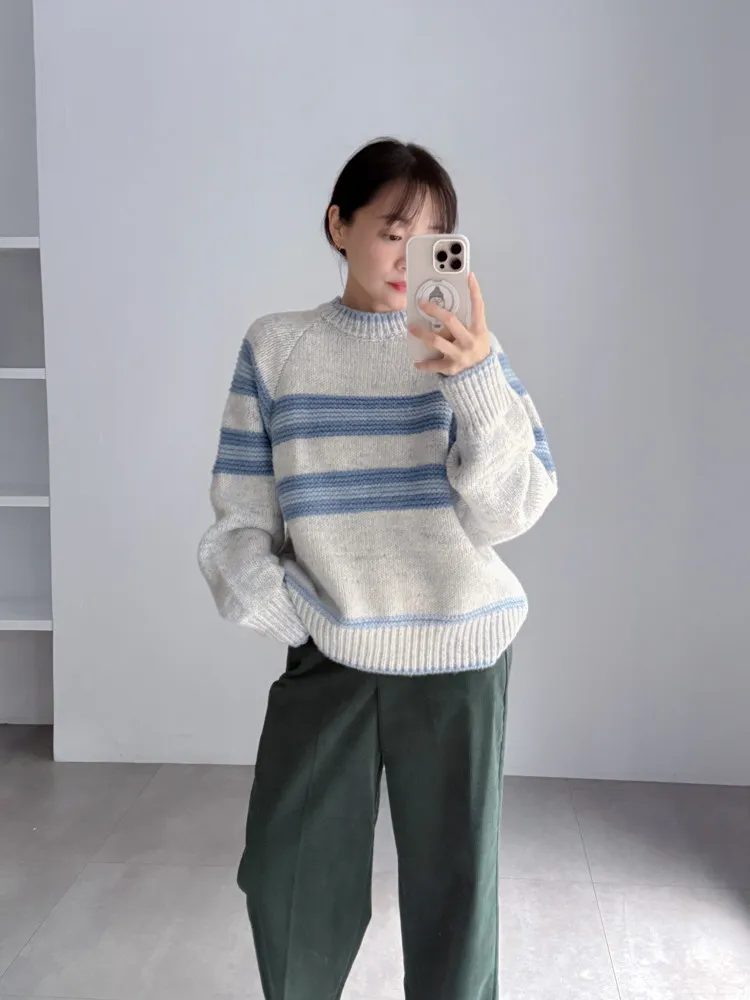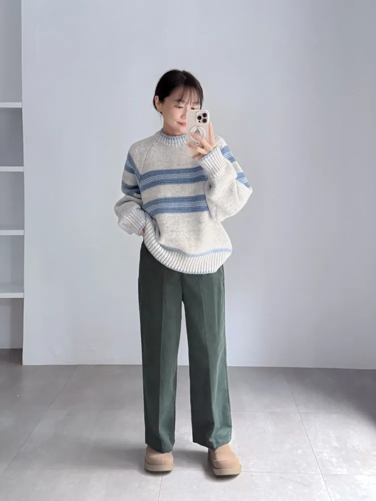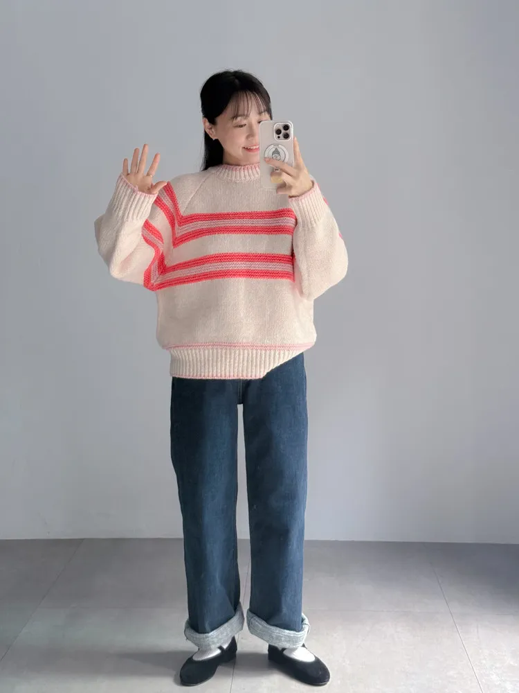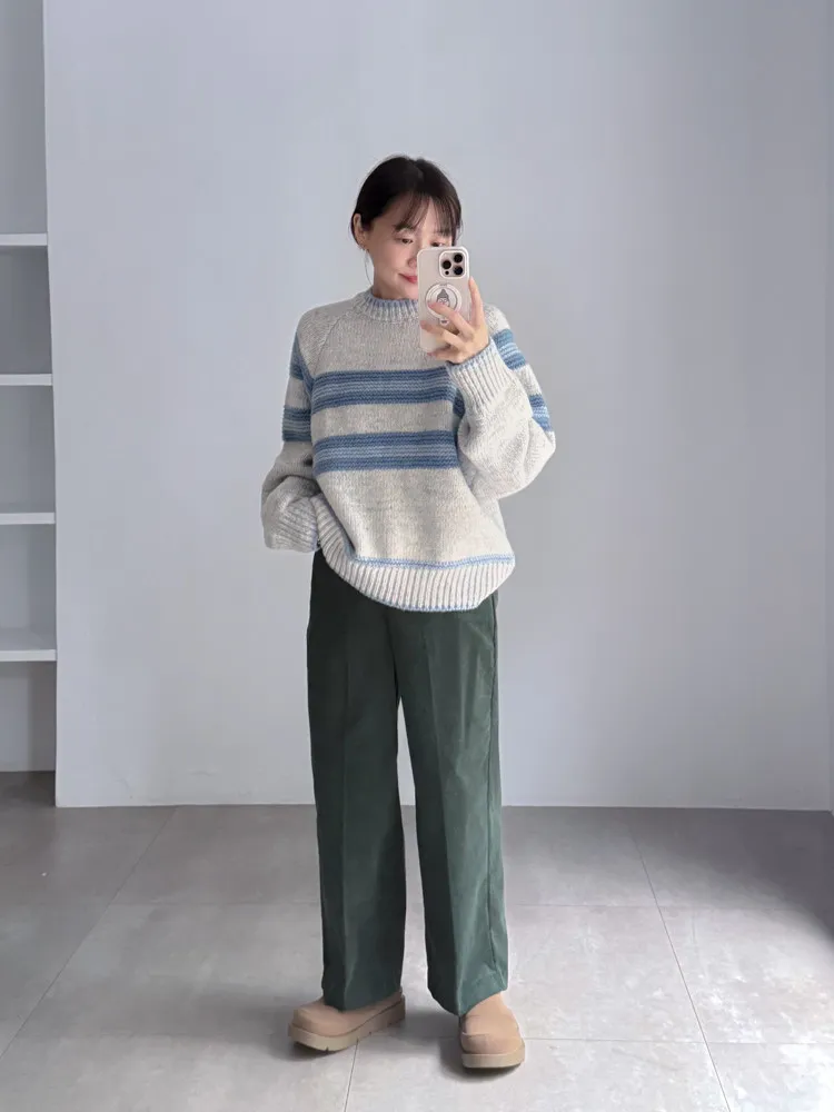 [特點] 粗針織有厚度,摸起來柔軟舒適,落肩剪裁+寬鬆身形。