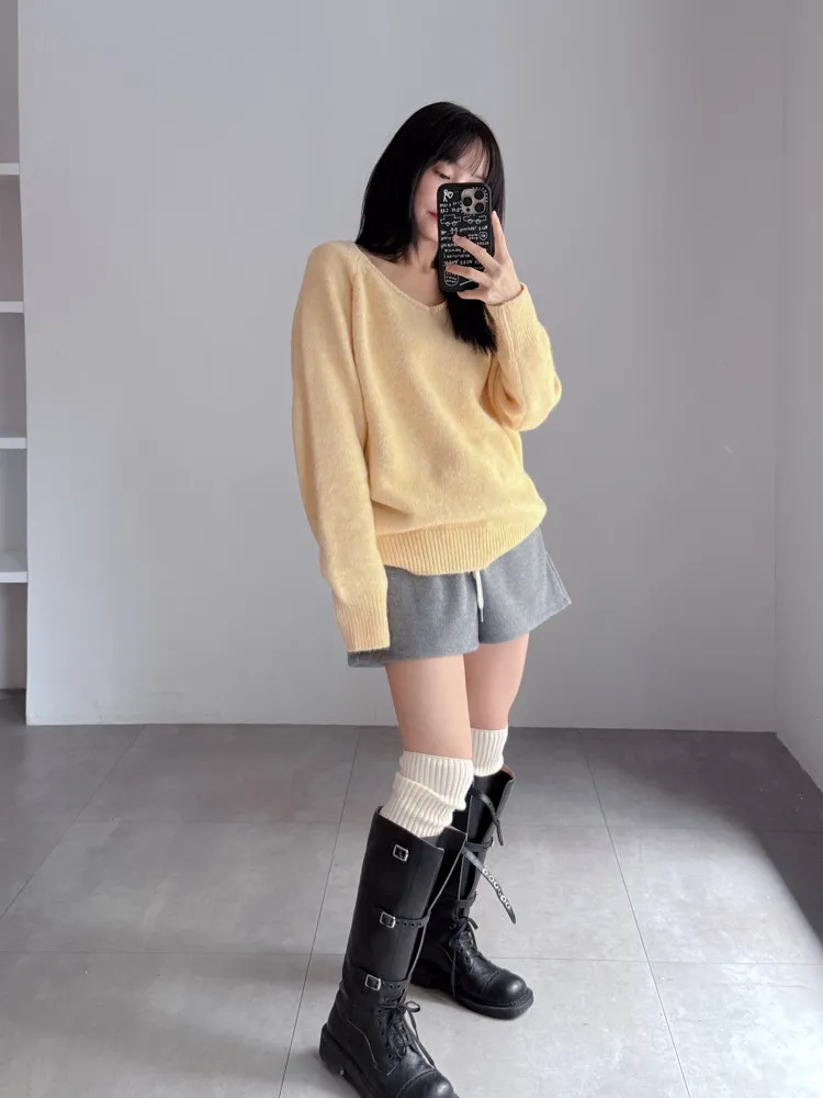 [特點] 軟料針織不扎膚,V領設計剪裁。
