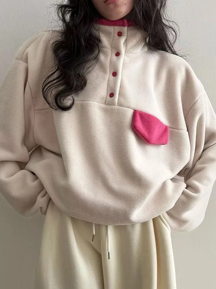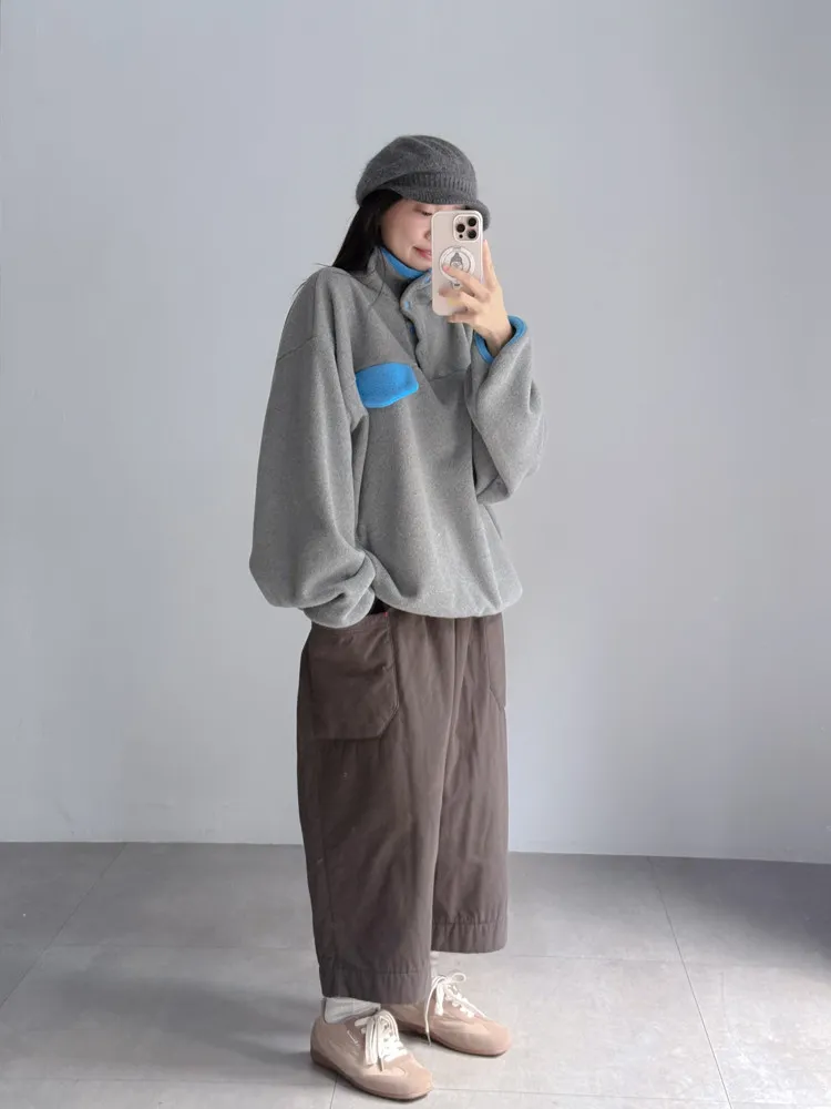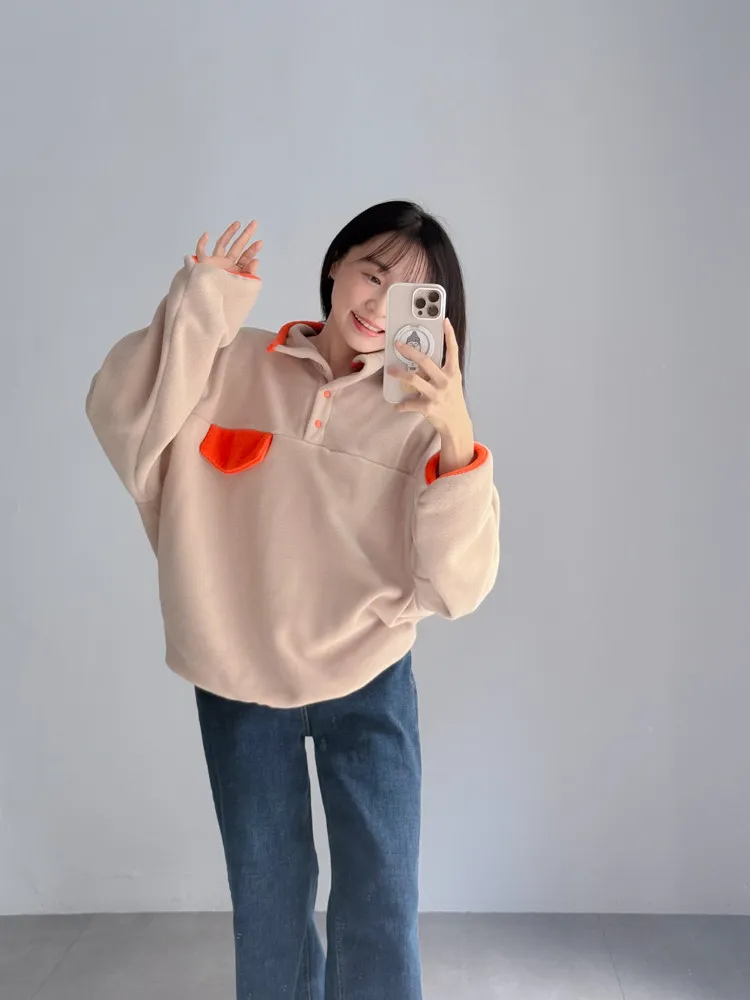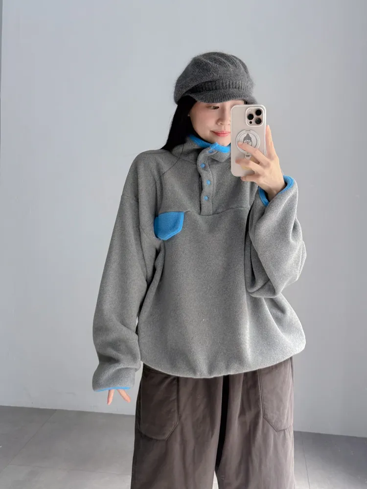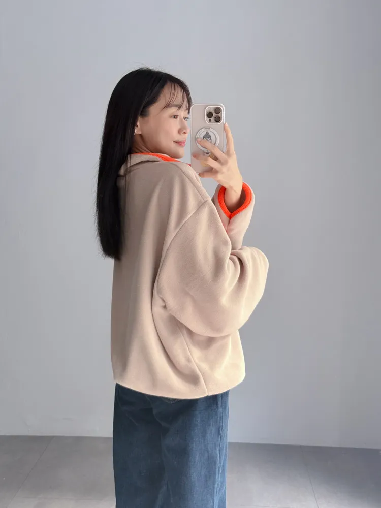 [特點] 舒服的刷毛布料,表面細緻、柔軟,排扣立領設計,