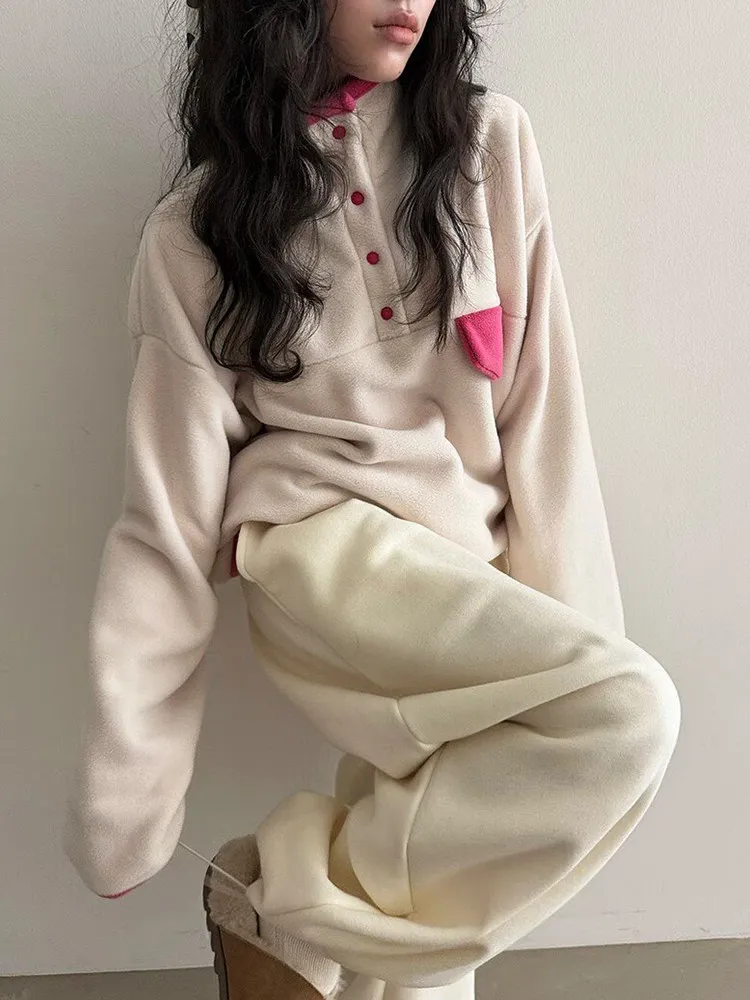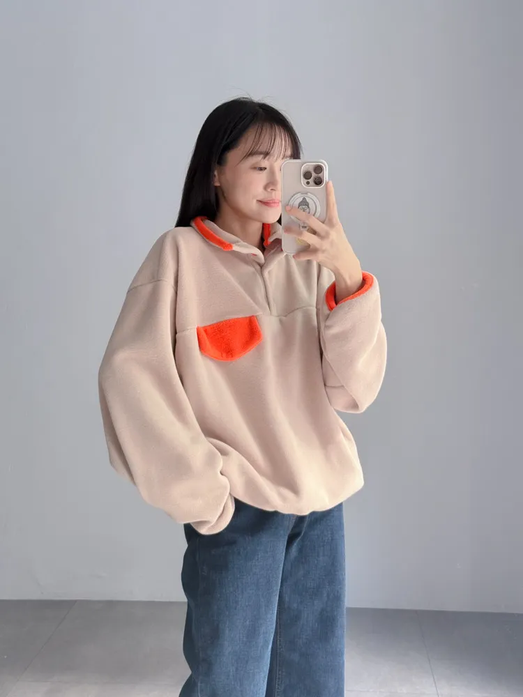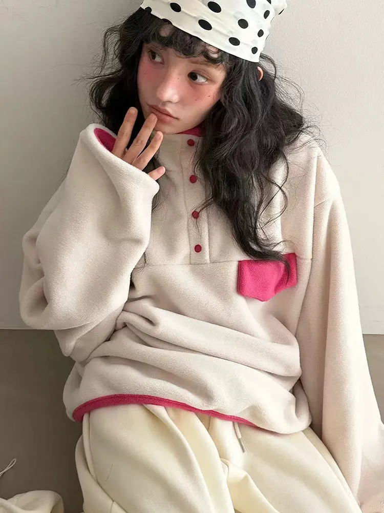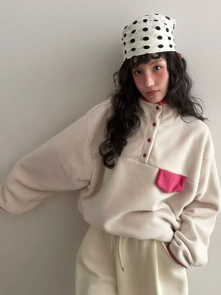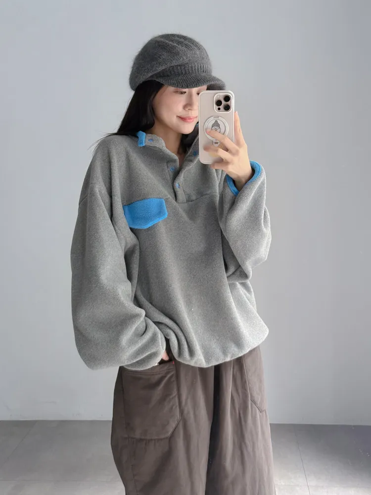 [特點] 舒服的刷毛布料,表面細緻、柔軟,排扣立領設計,