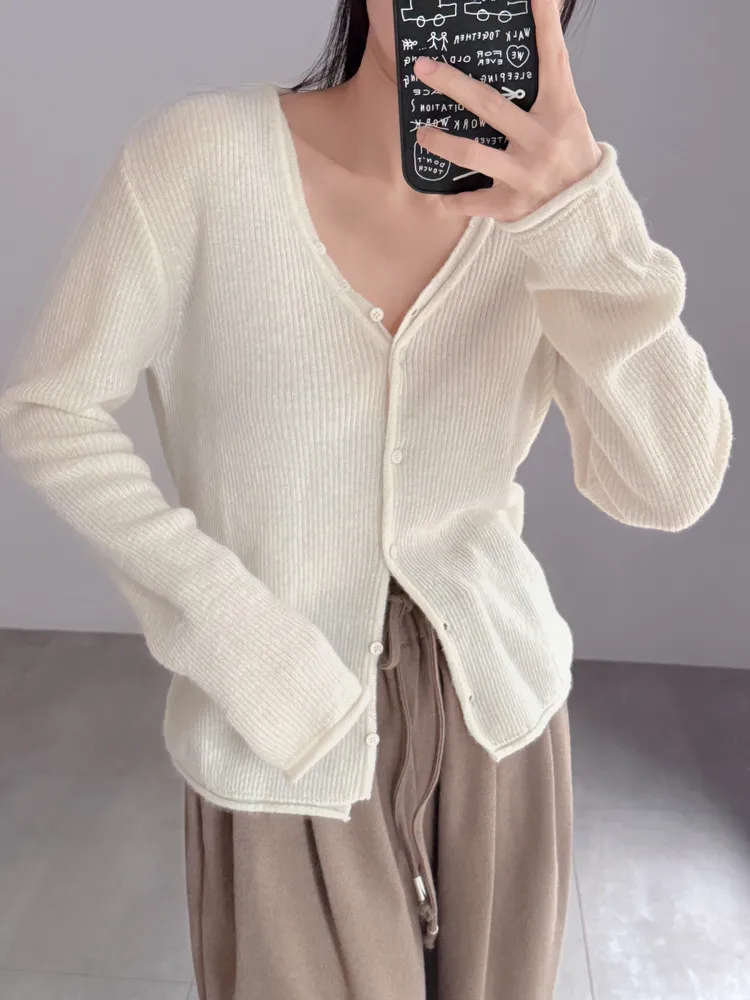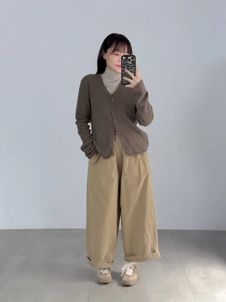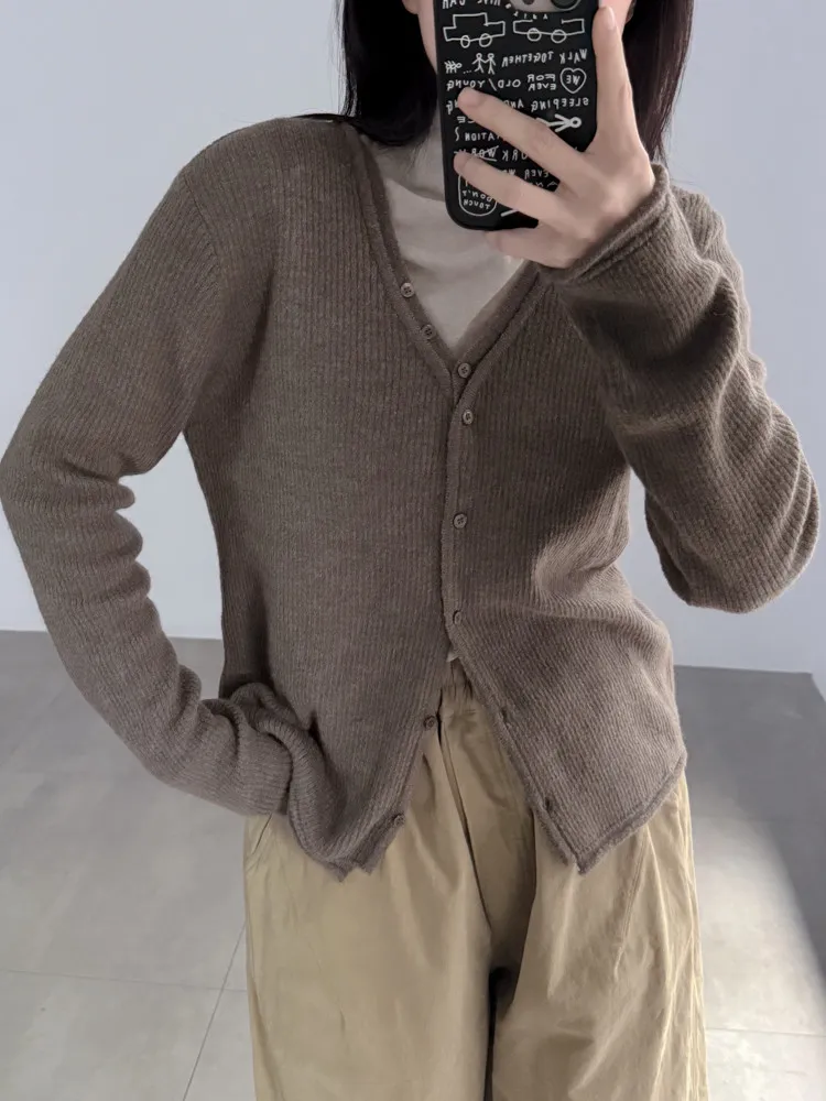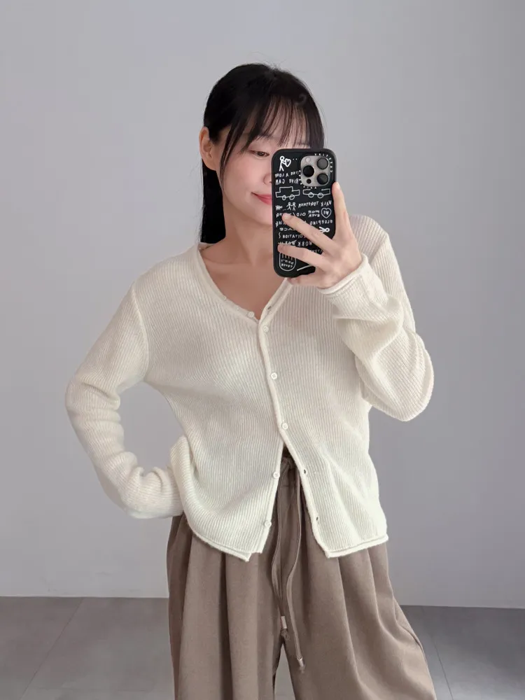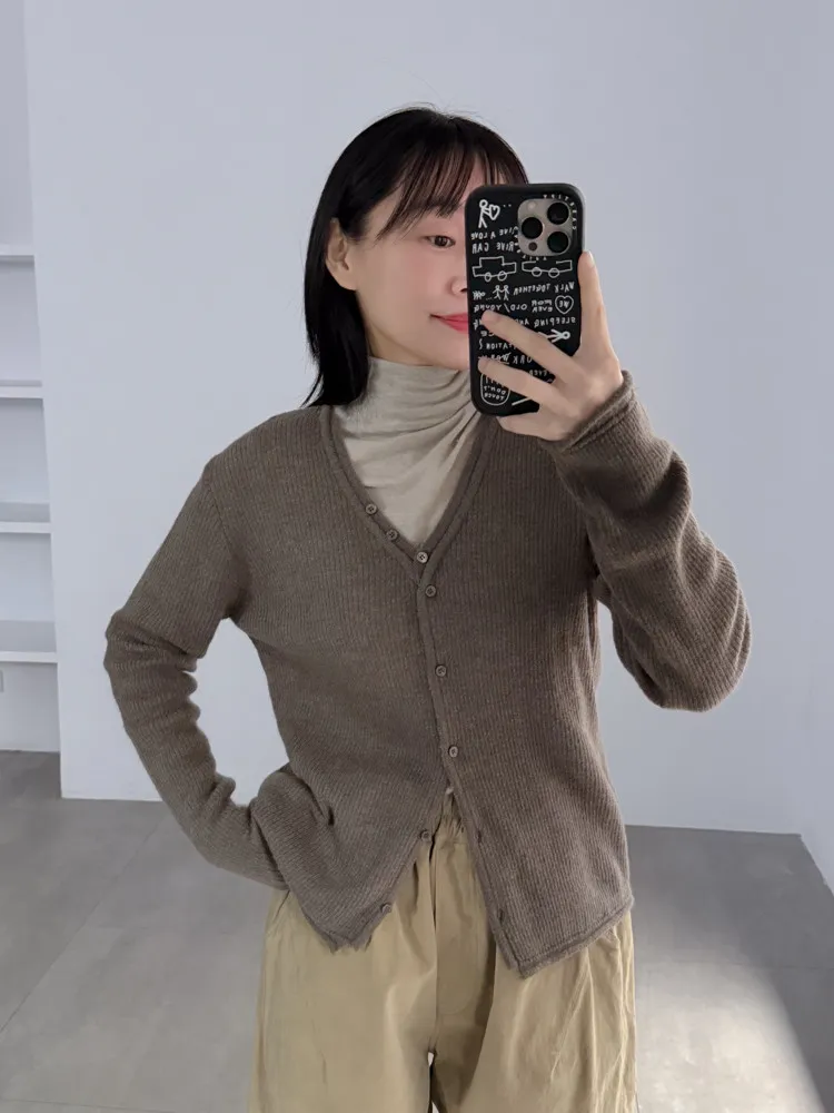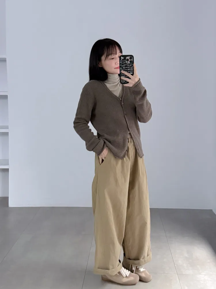 [特點] 布料手感輕薄,V領排扣+坑紋設計,版型合身不貼身。