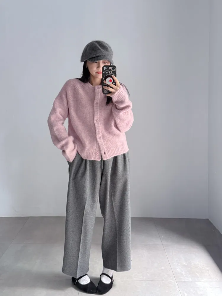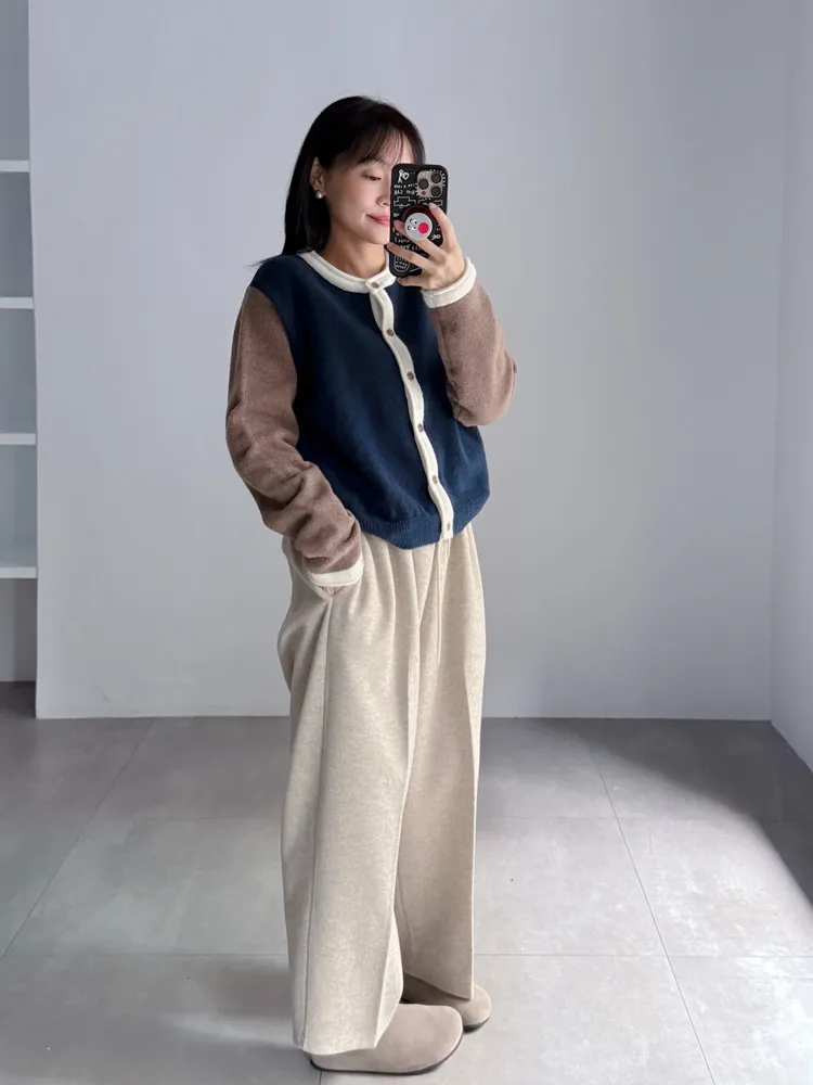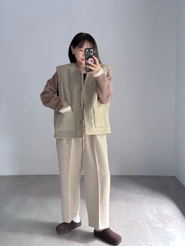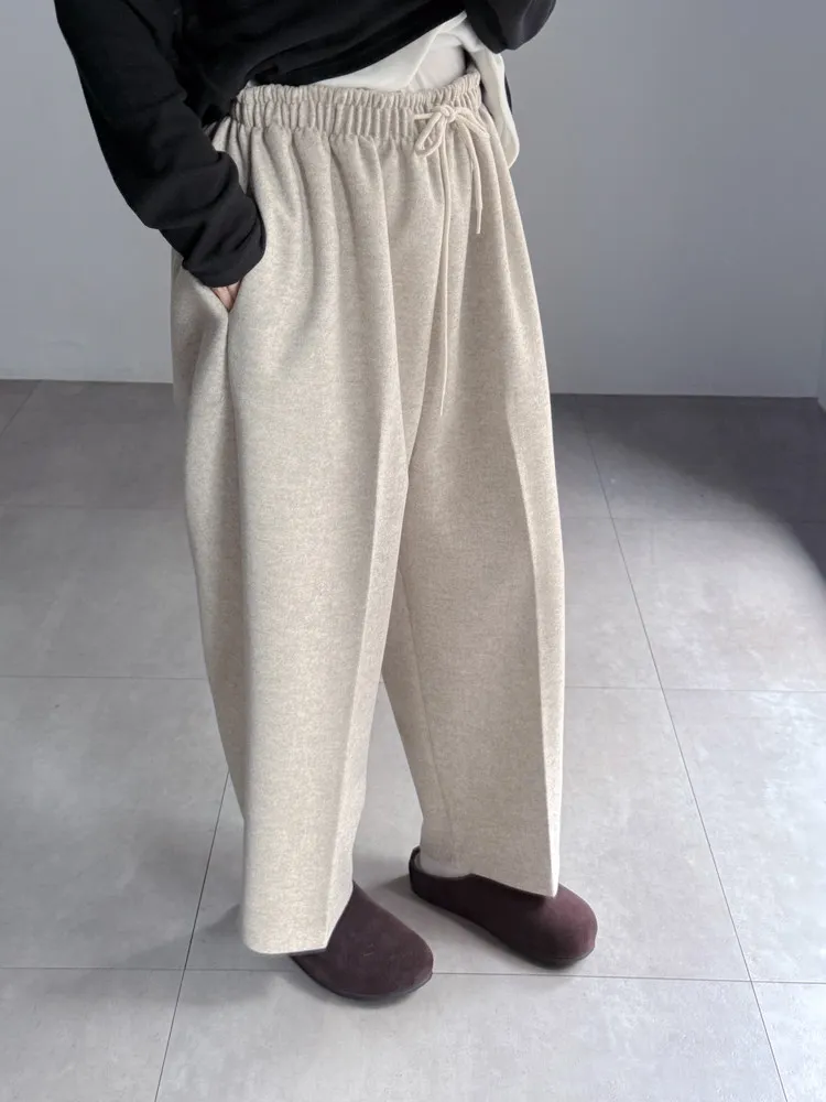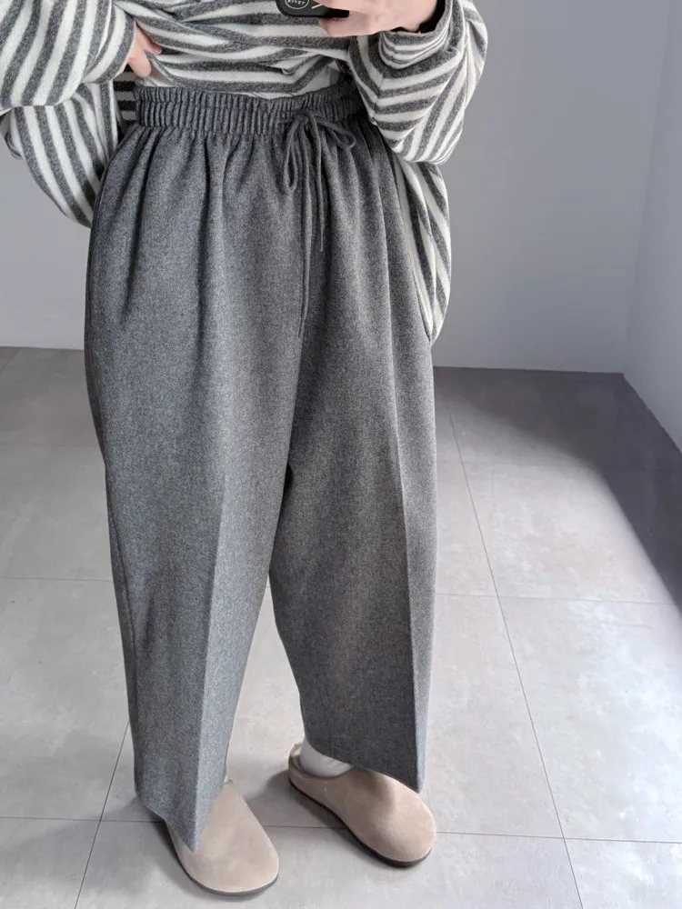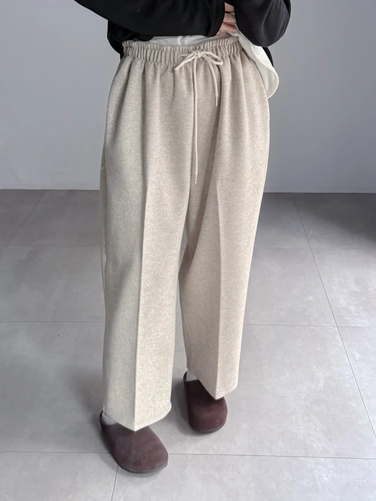 [特點] 抽繩鬆緊彈性腰圍,布面細緻不粗糙,毛料不刺膚,挺版版型。