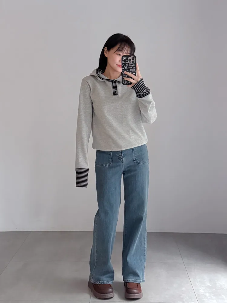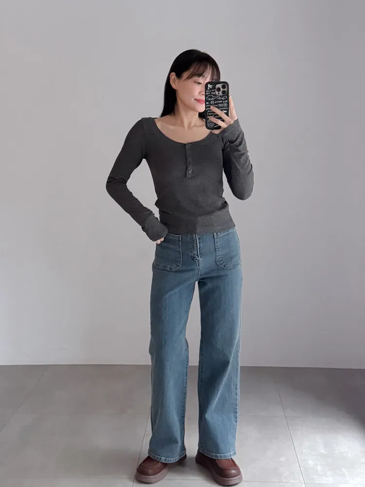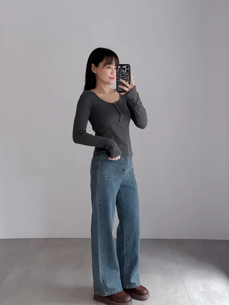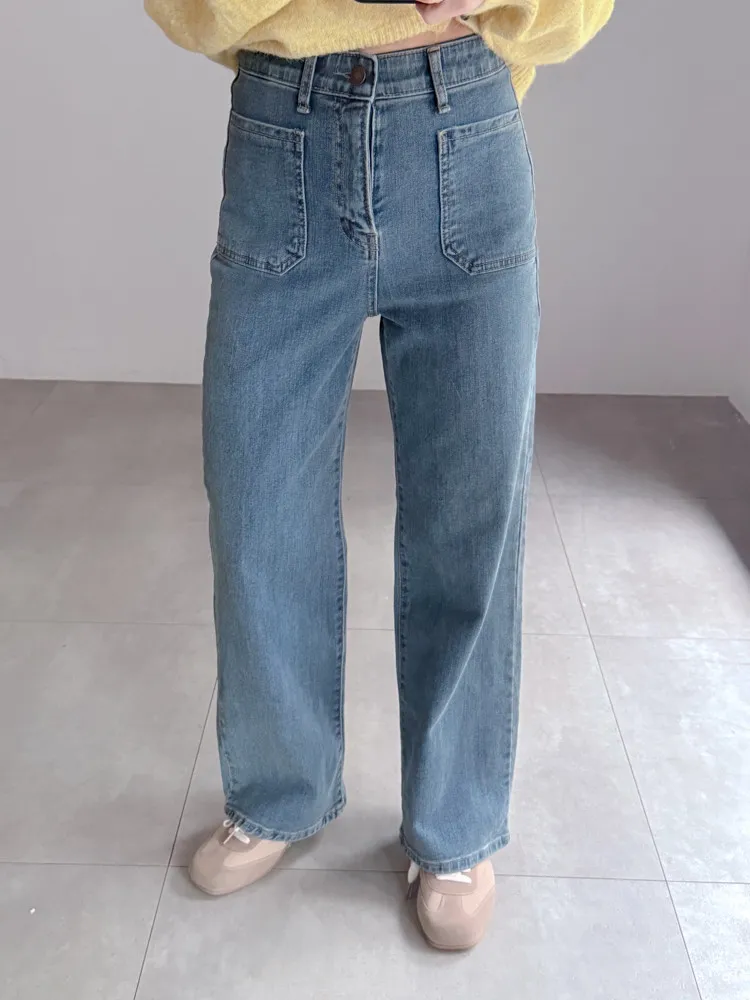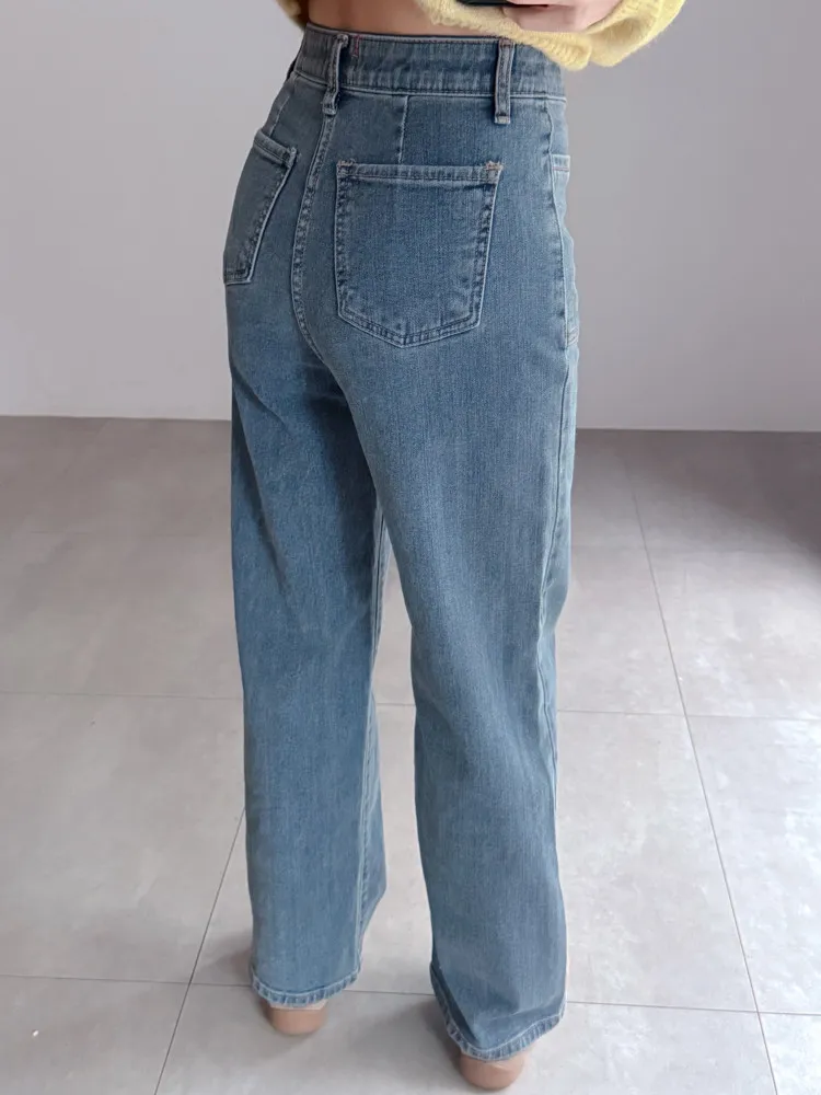 [特點] 內鬆緊彈性腰圍,厚薄度適中,丹寧布料有彈性,雙口袋造型,直順修飾修身版型。