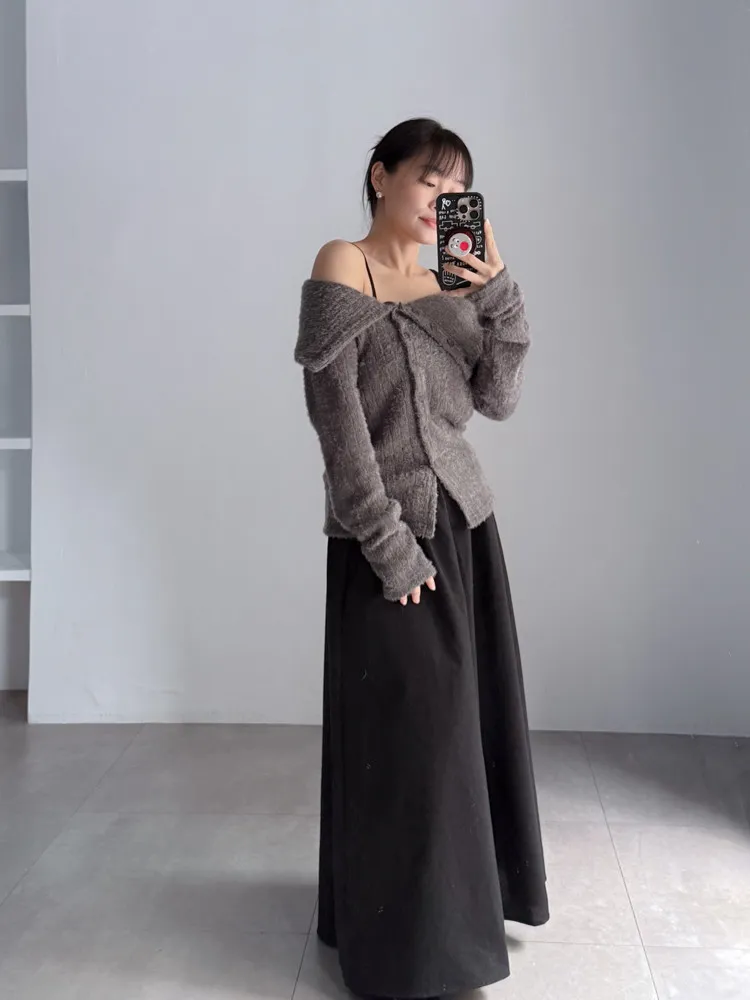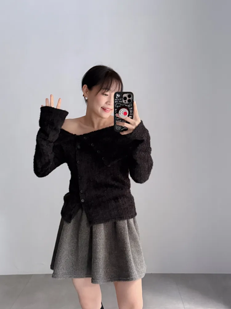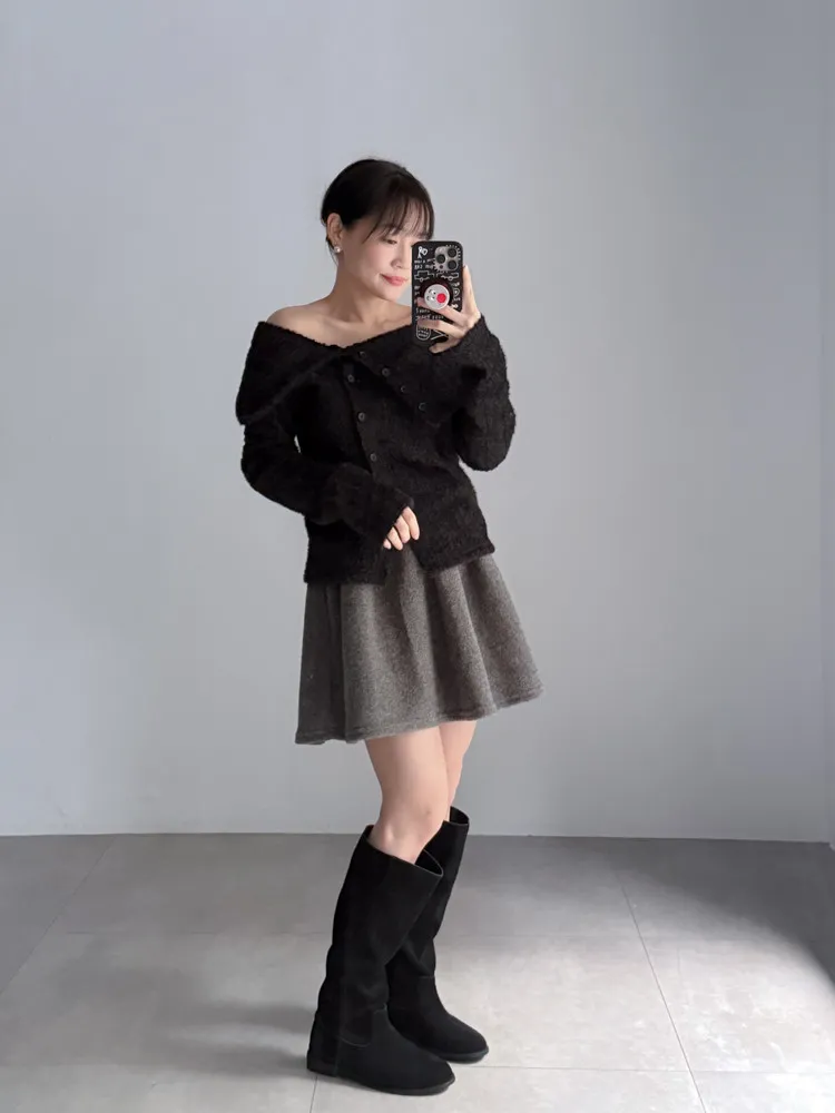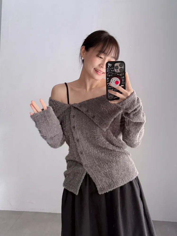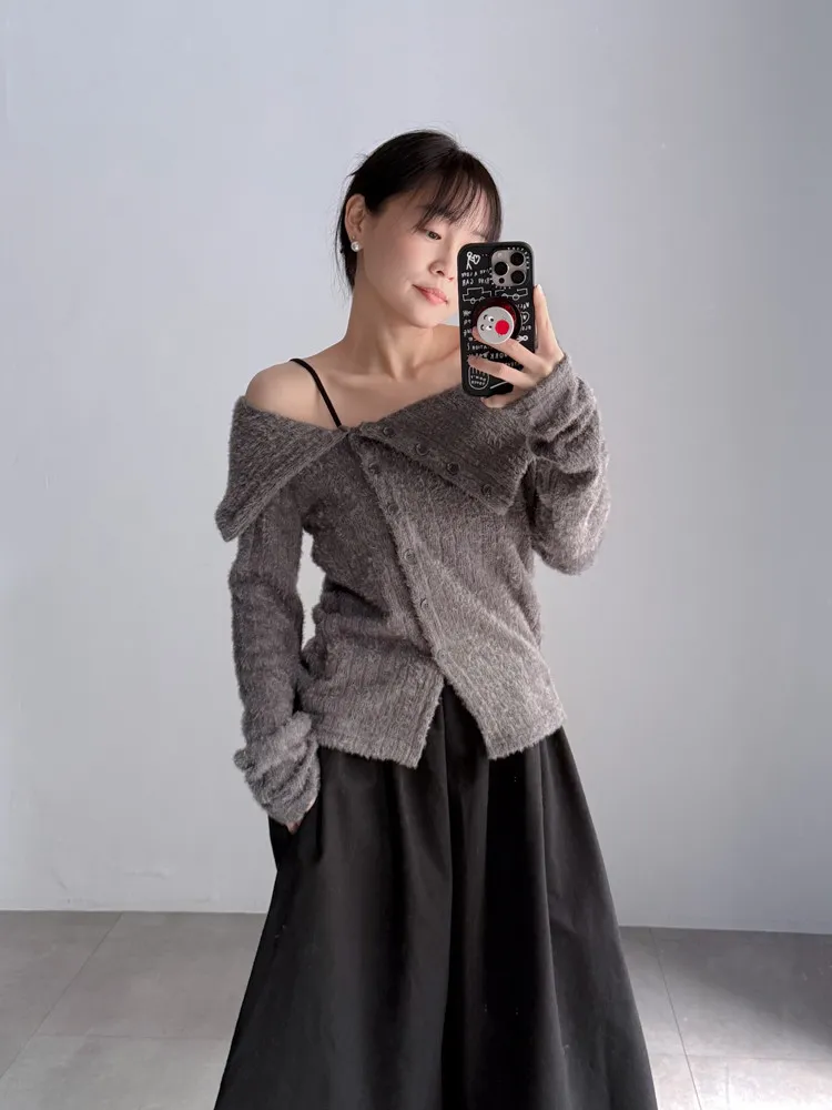 [特點] 柔軟毛海觸感,大翻領設計,領口有彈性可隨喜好調整,略短版剪裁。