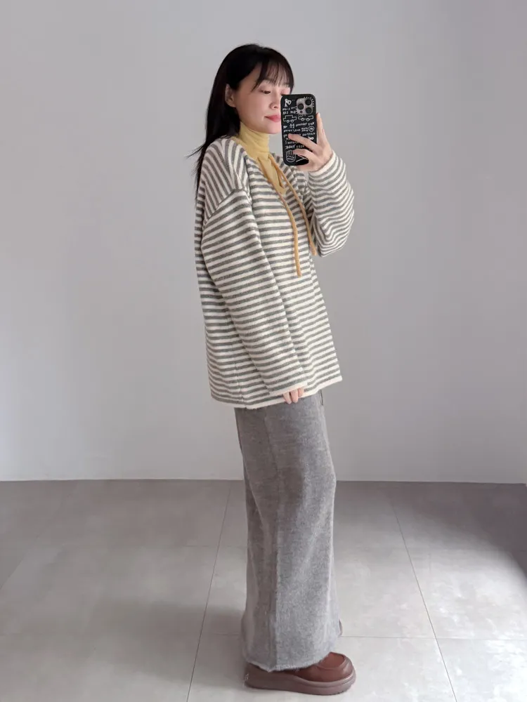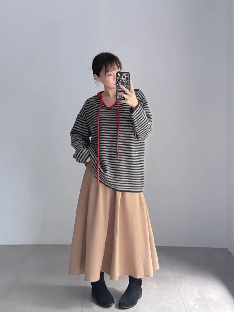 [特點] 撞色抽繩細節,落肩剪裁穿起來寬鬆不拘束,鬆軟針織不扎膚。