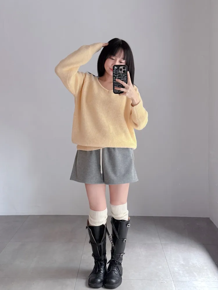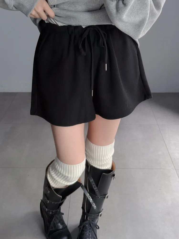 [特點] 抽繩彈性腰圍,扎實偏厚針織面料。
