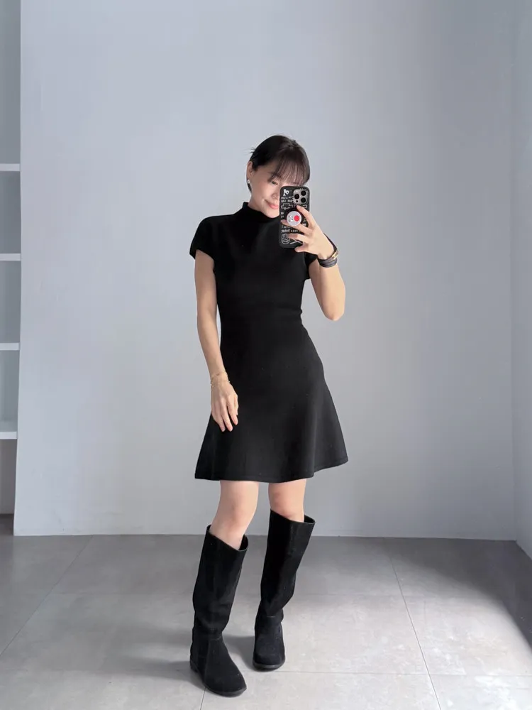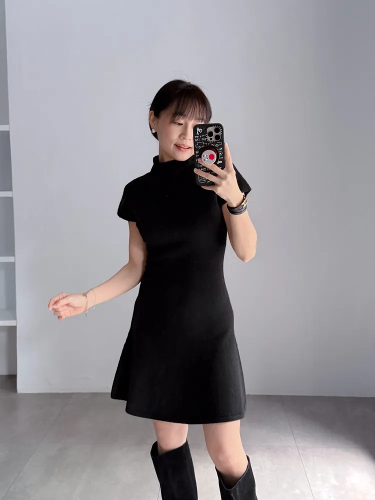 微領羊毛短洋裝