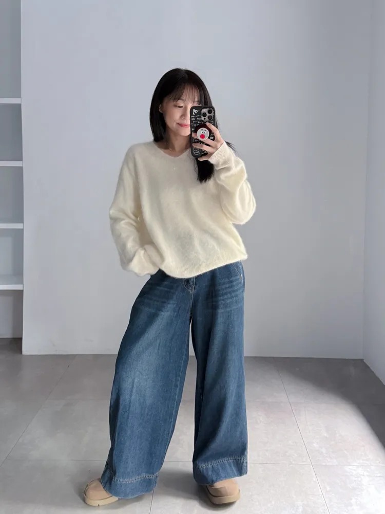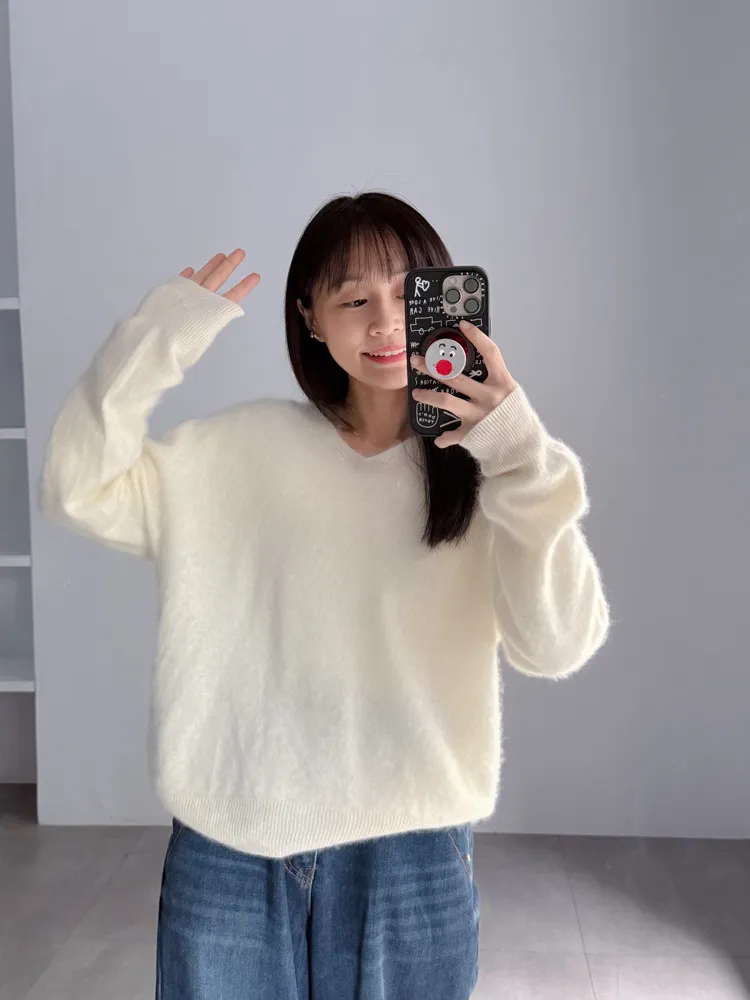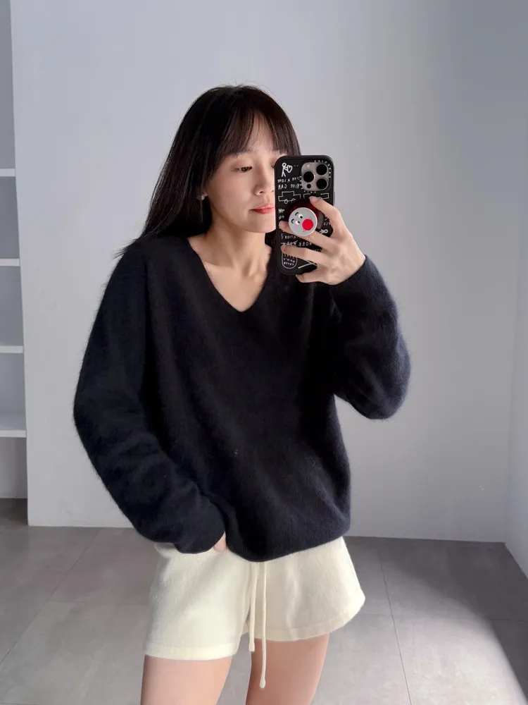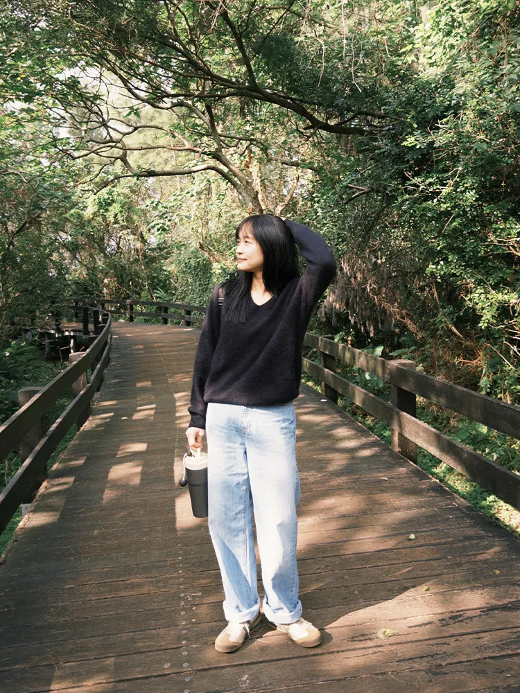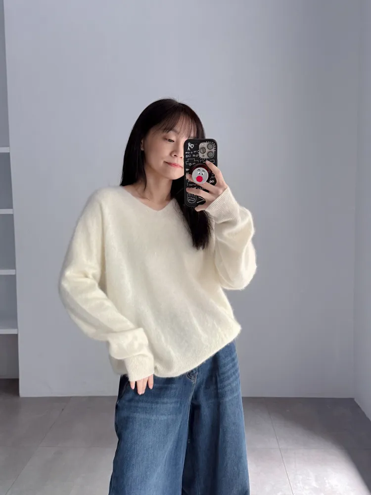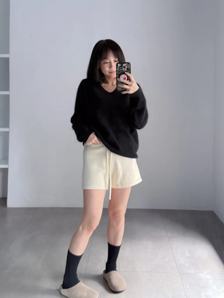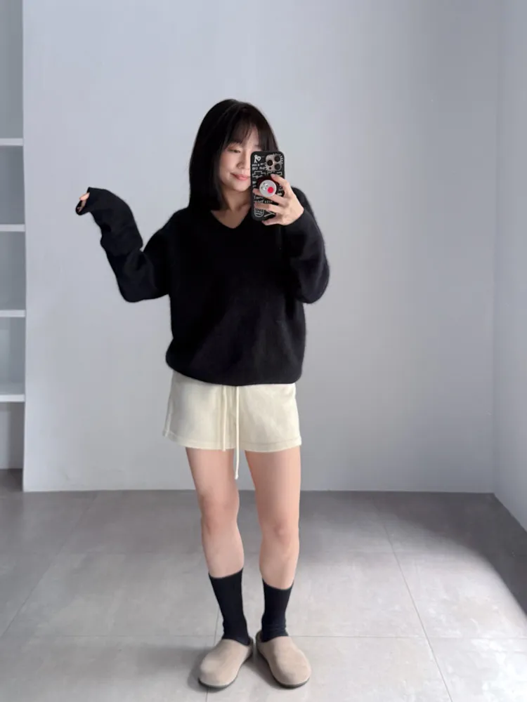 [特點] 微V領+下擺羅紋設計,柔軟不扎膚面料,落肩剪裁。