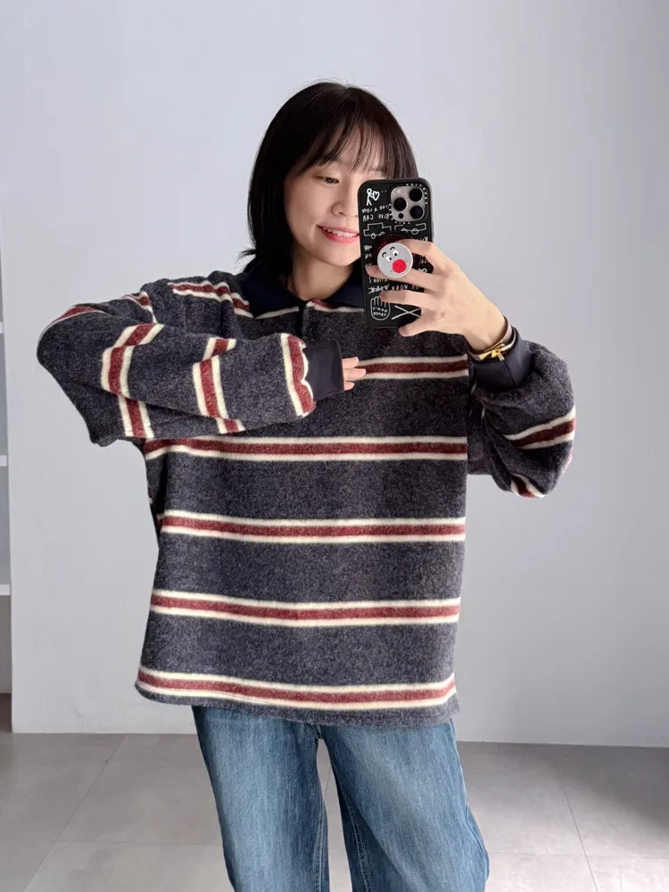 POLO領條紋軟綿T
