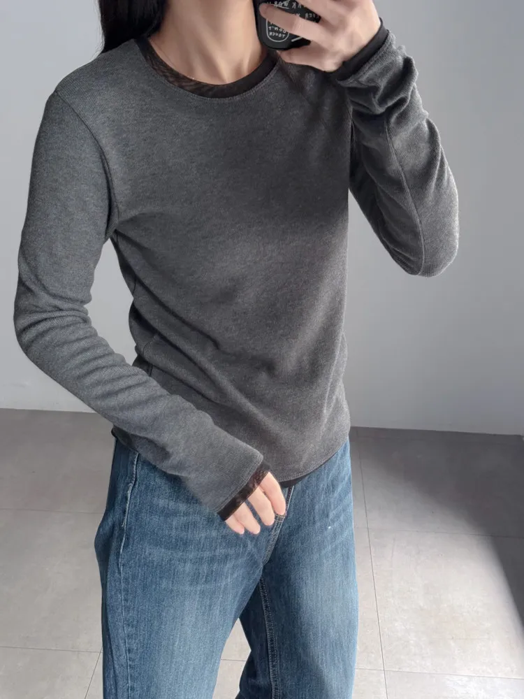 [特點] 舒適柔軟彈性面料,領+袖口、下擺拼接網紗設計,順身不合貼。