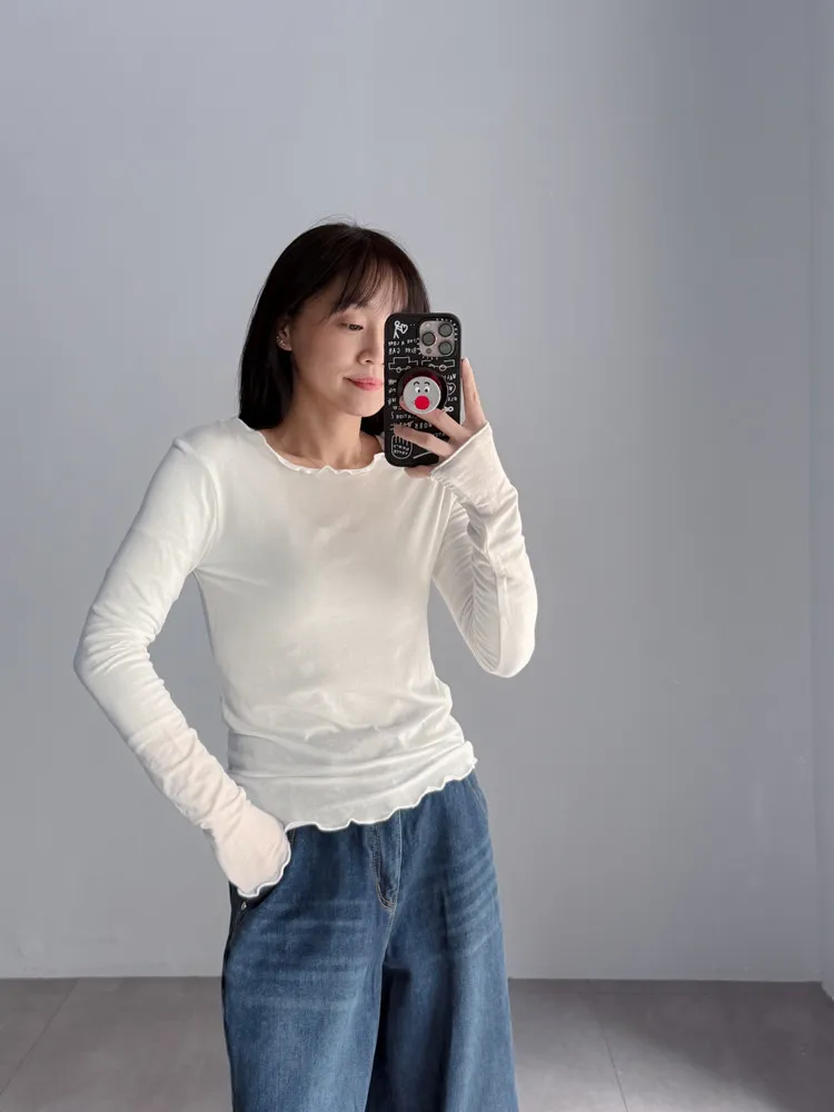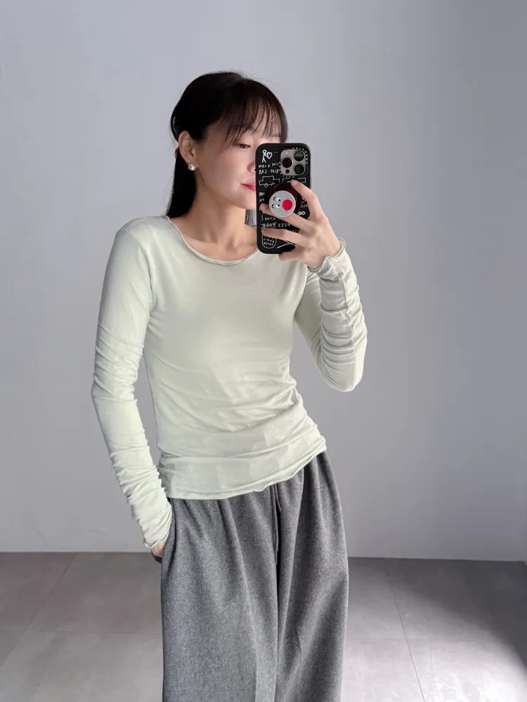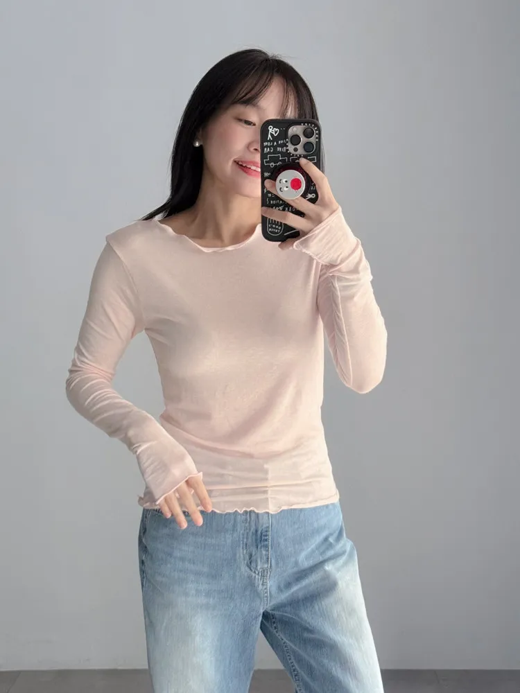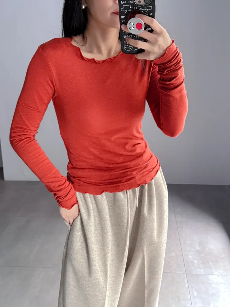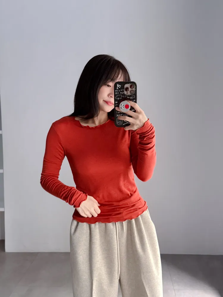[特點] 圓領+捲邊設計剪裁,天絲有彈性舒適手感,可內搭也可以單穿。