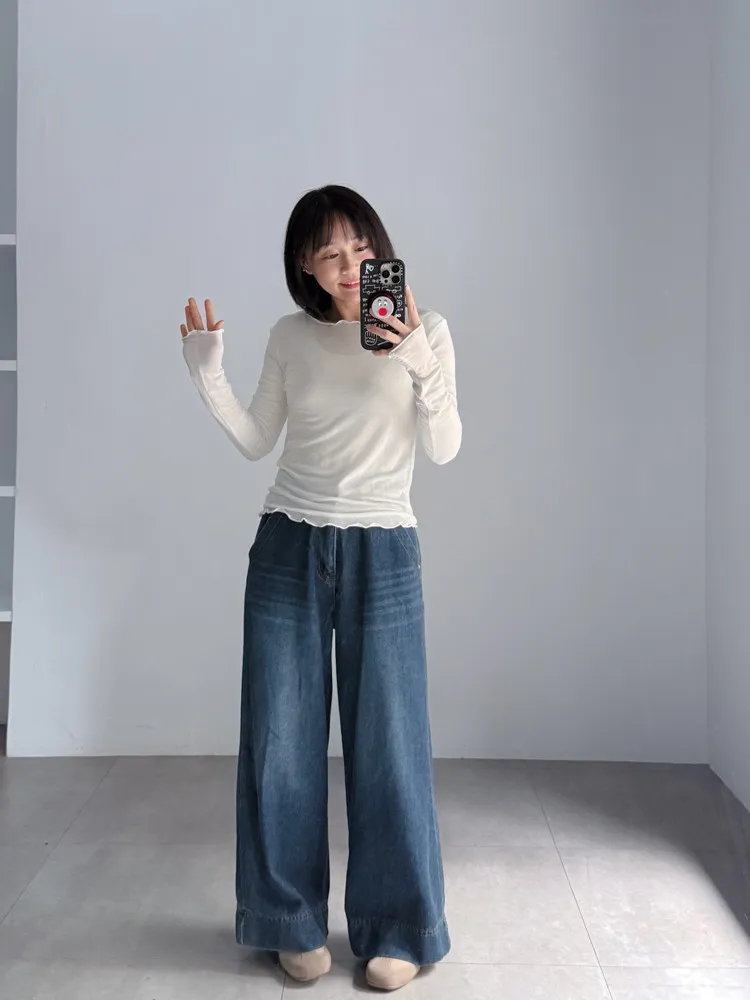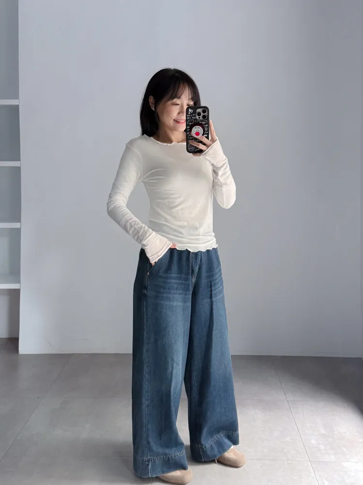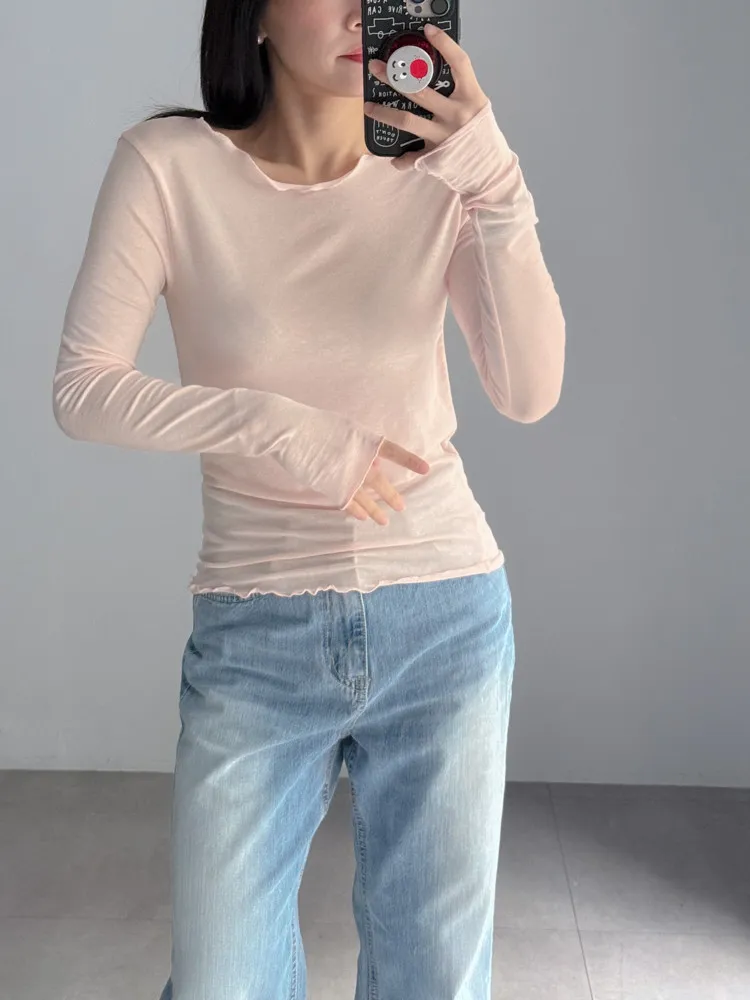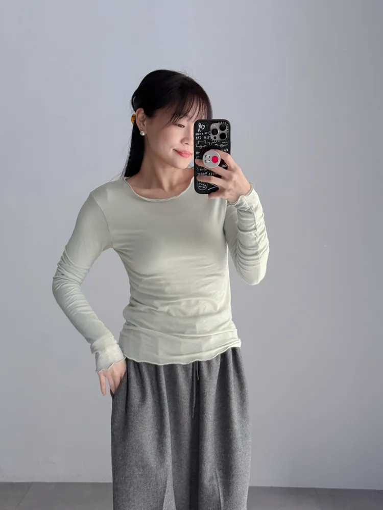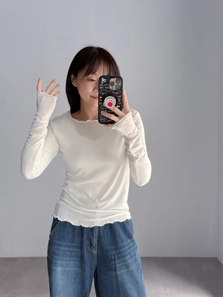 [特點] 圓領+捲邊設計剪裁,天絲有彈性舒適手感,可內搭也可以單穿。