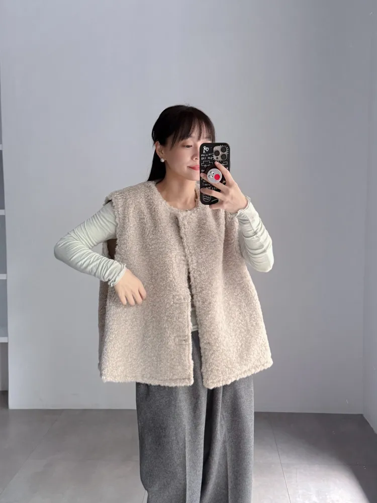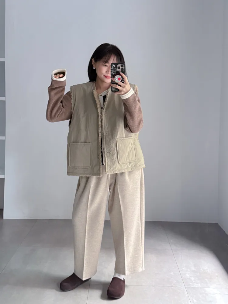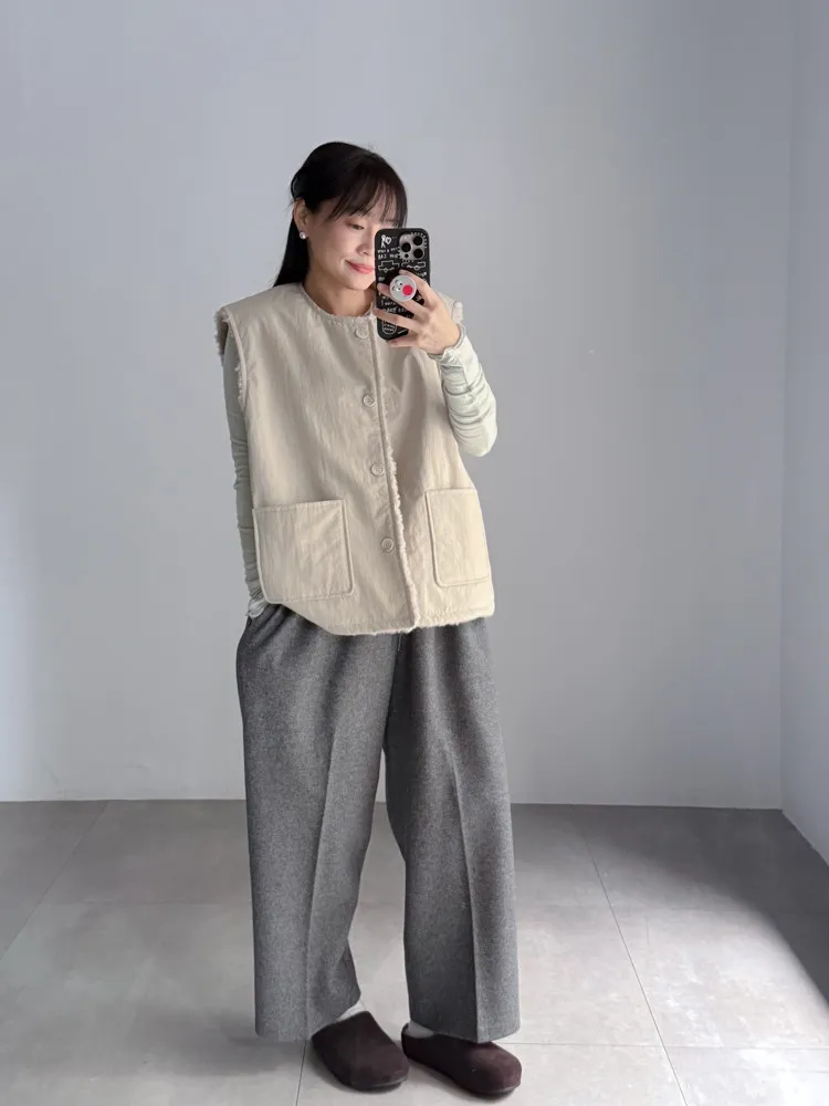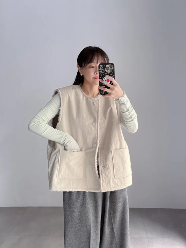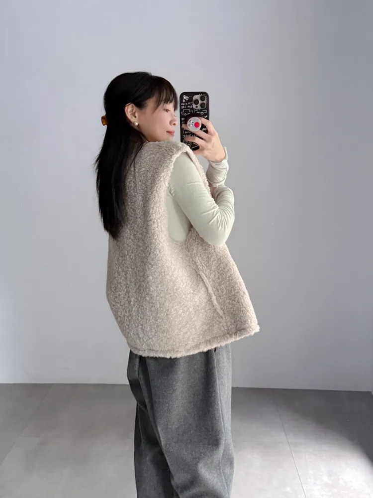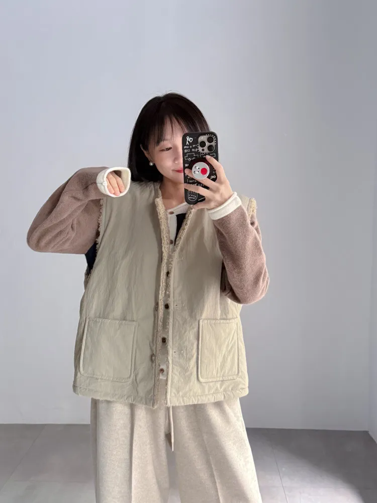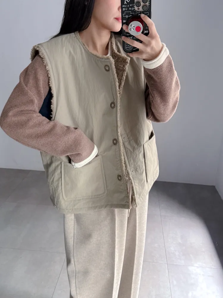 2way羔羊毛口袋背心