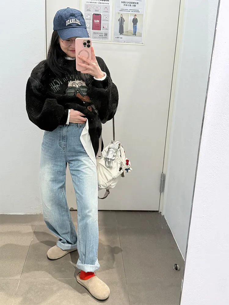 磨砂水藍直筒牛仔褲