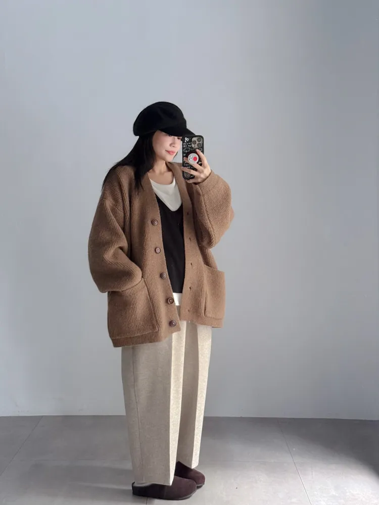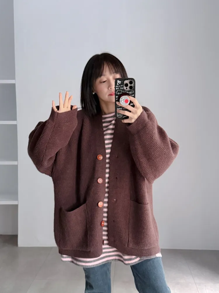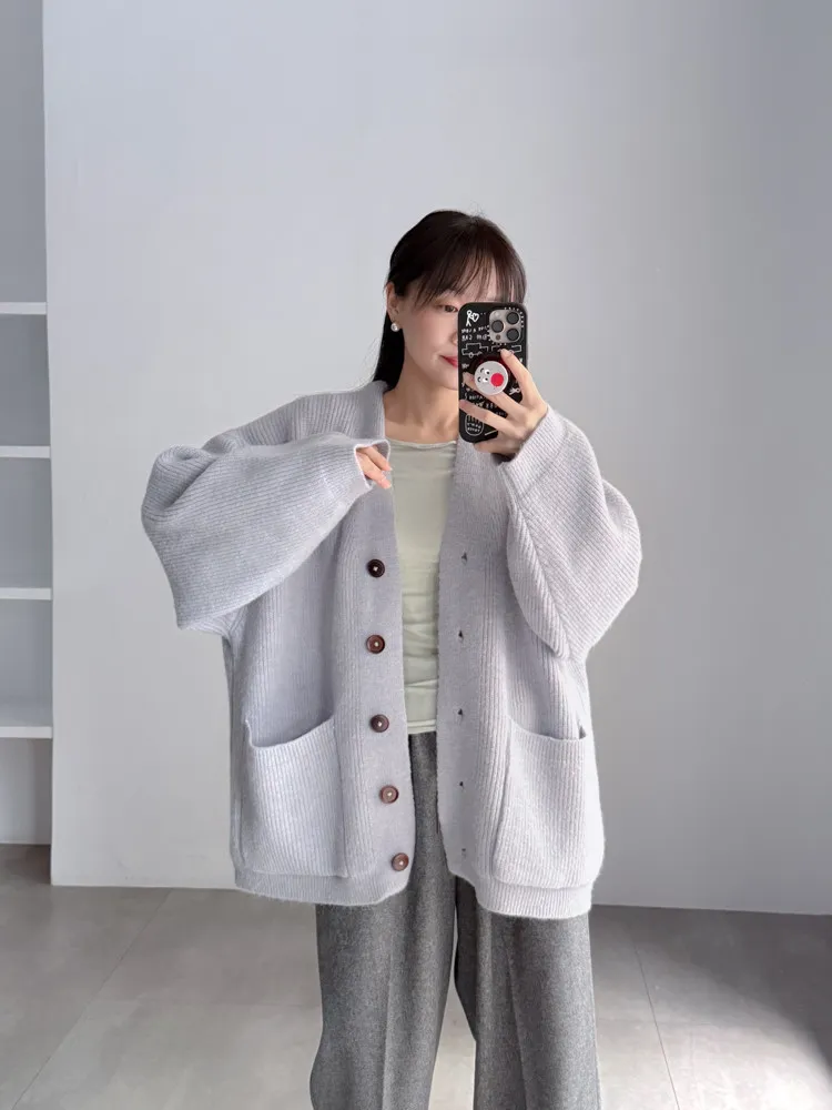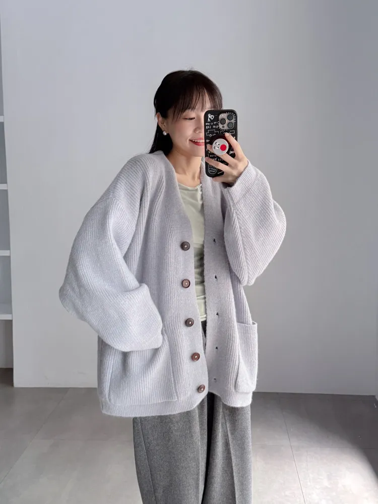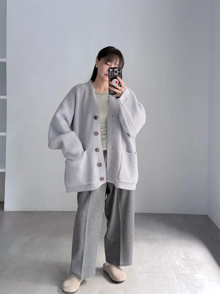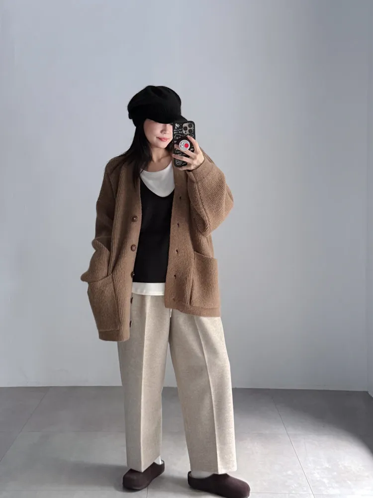 [特點] 扎實針織手感面料、不扎膚,V領排釦修飾剪裁,雙口袋造型