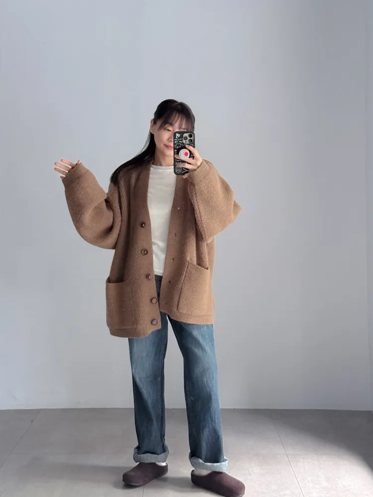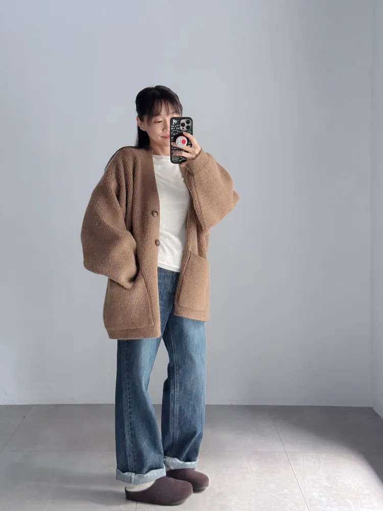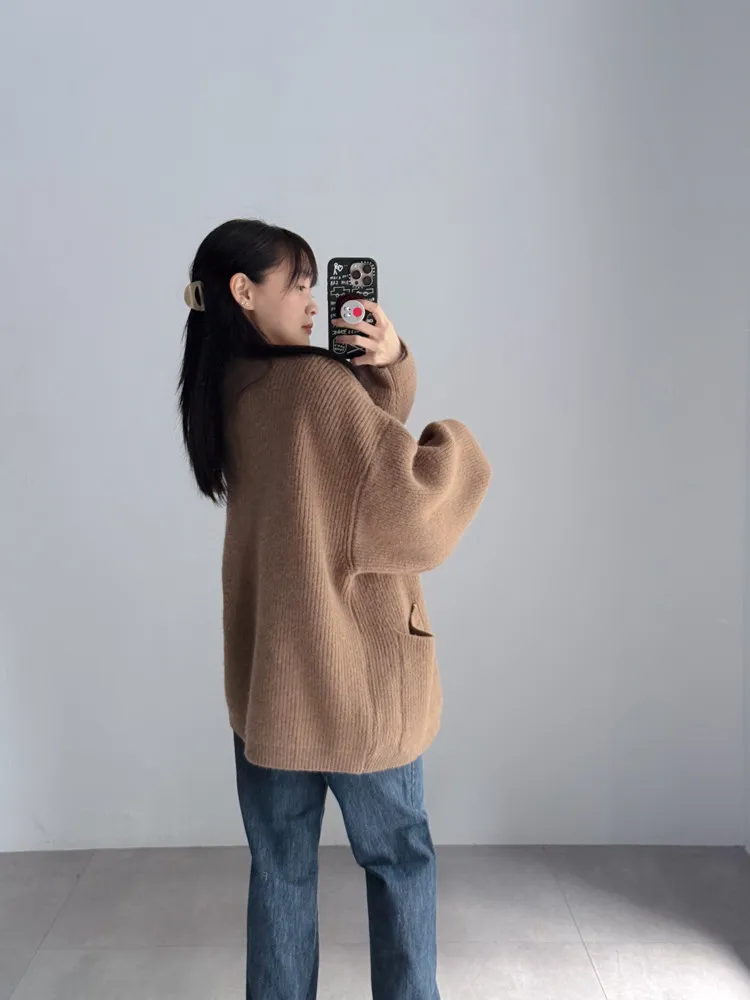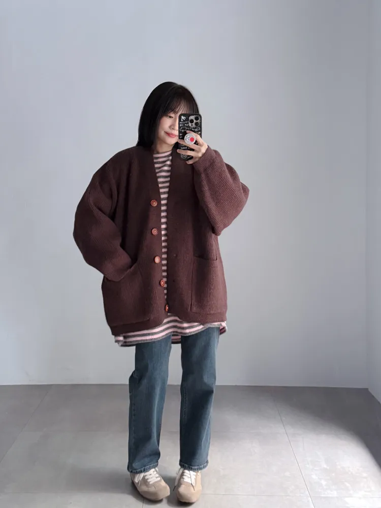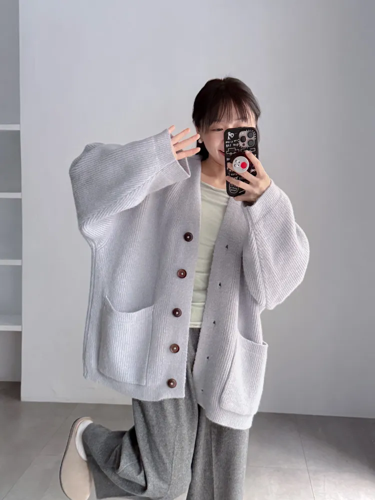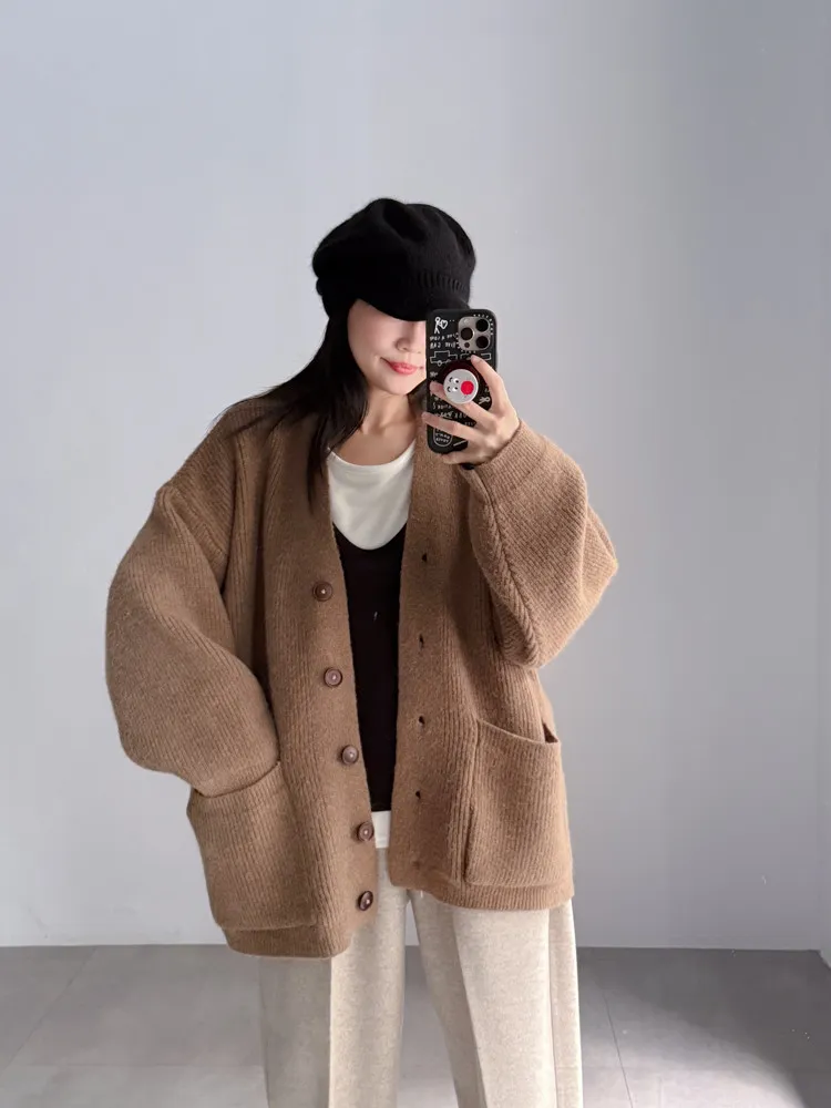 [特點] 扎實針織手感面料、不扎膚,V領排釦修飾剪裁,雙口袋造型