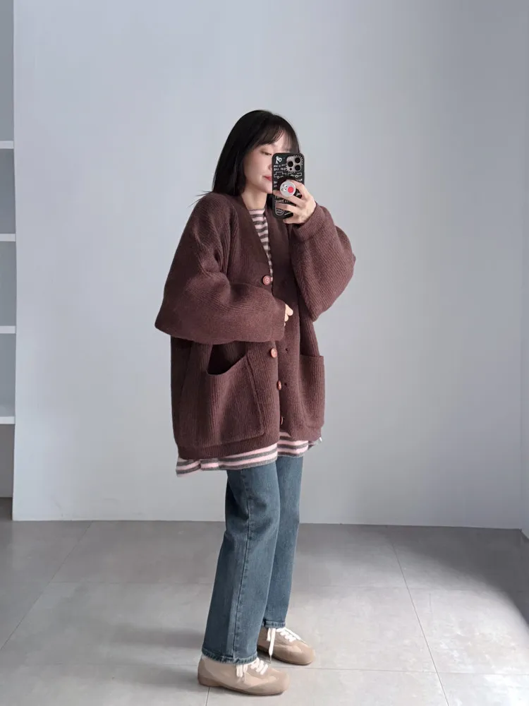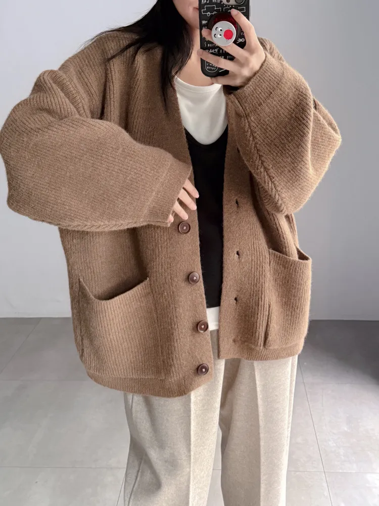 厚實坑條針織外套