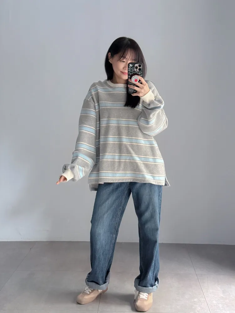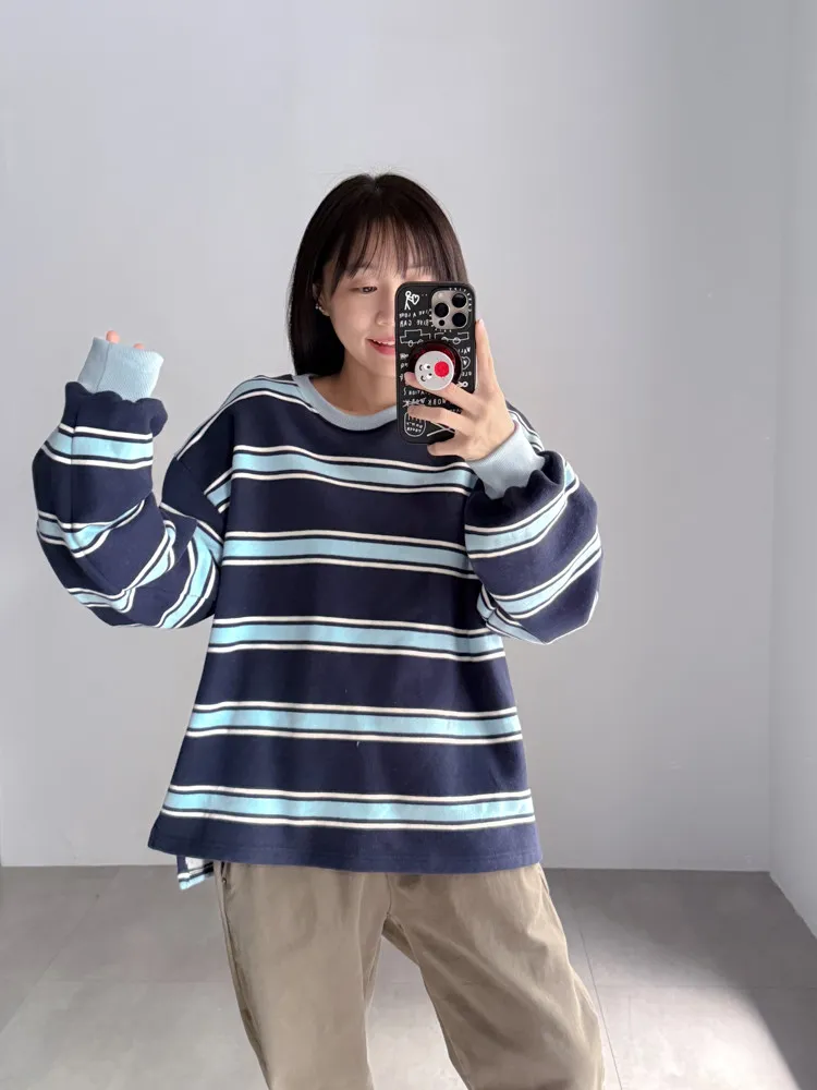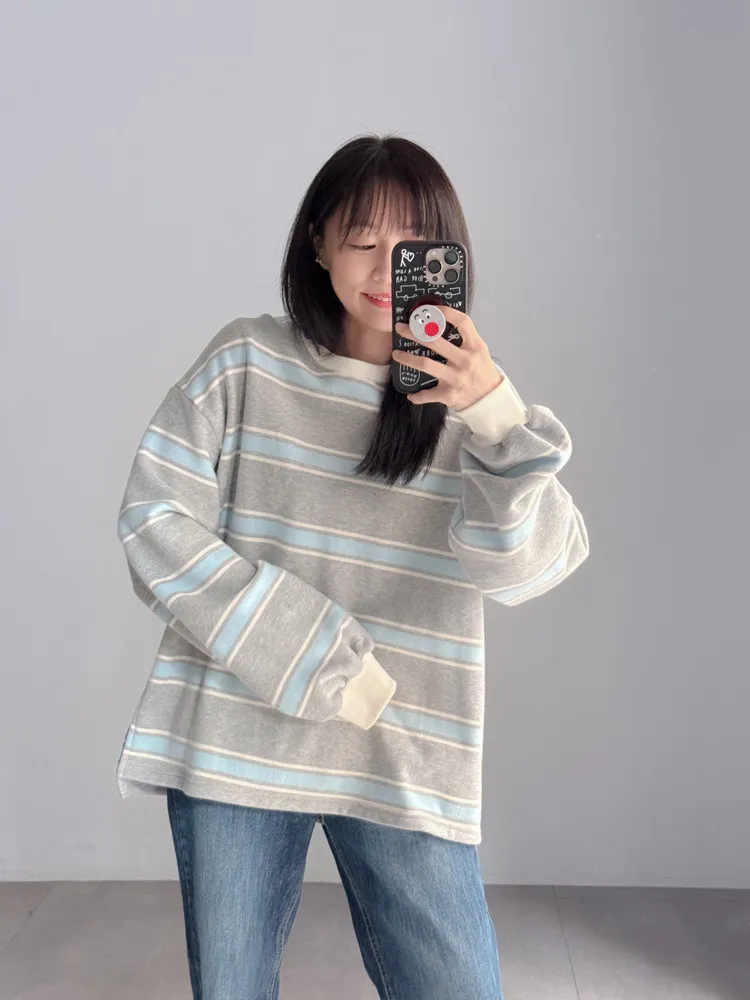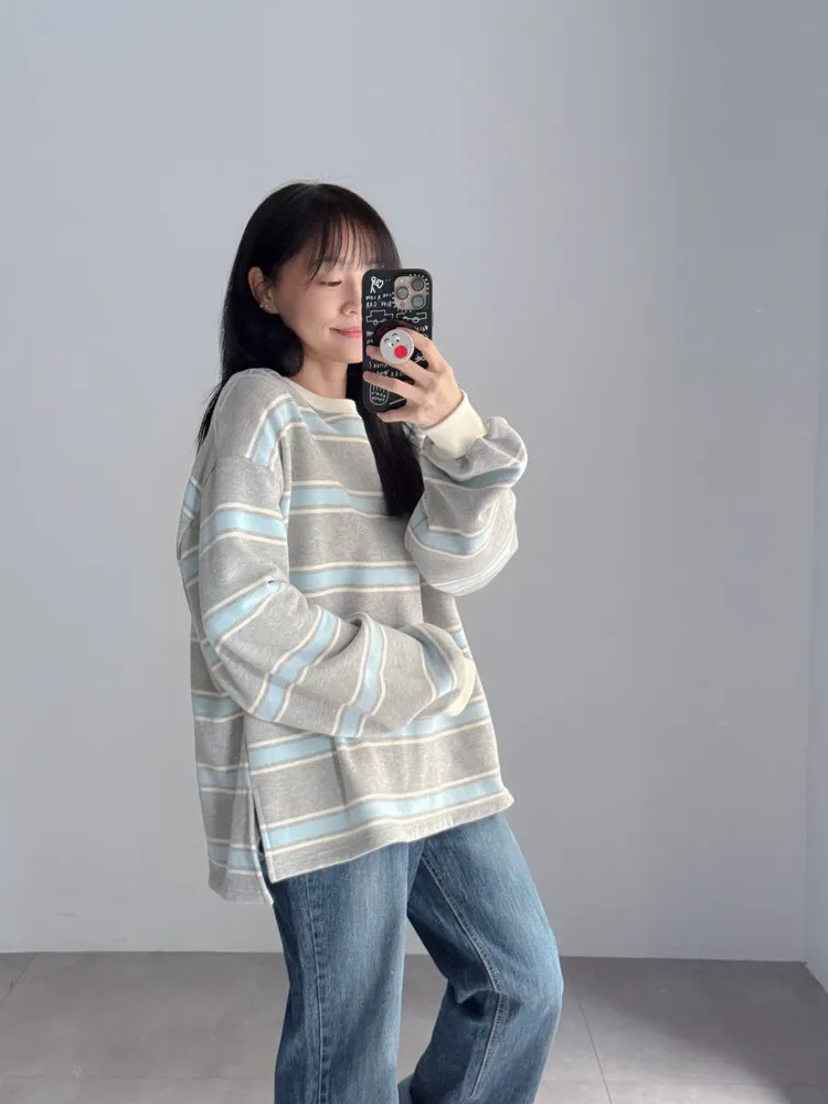 [特點] 圓領+寬袖設計,舒適棉手感,內裡刷毛,略寬鬆版型,前短後長剪裁。