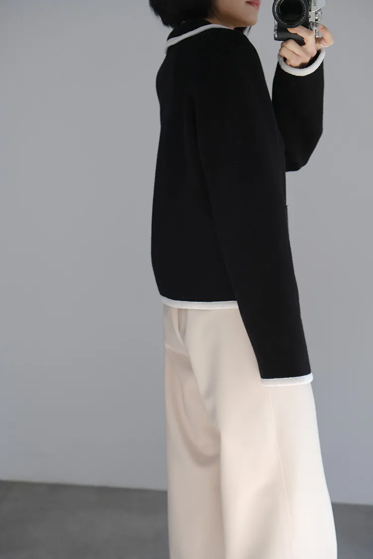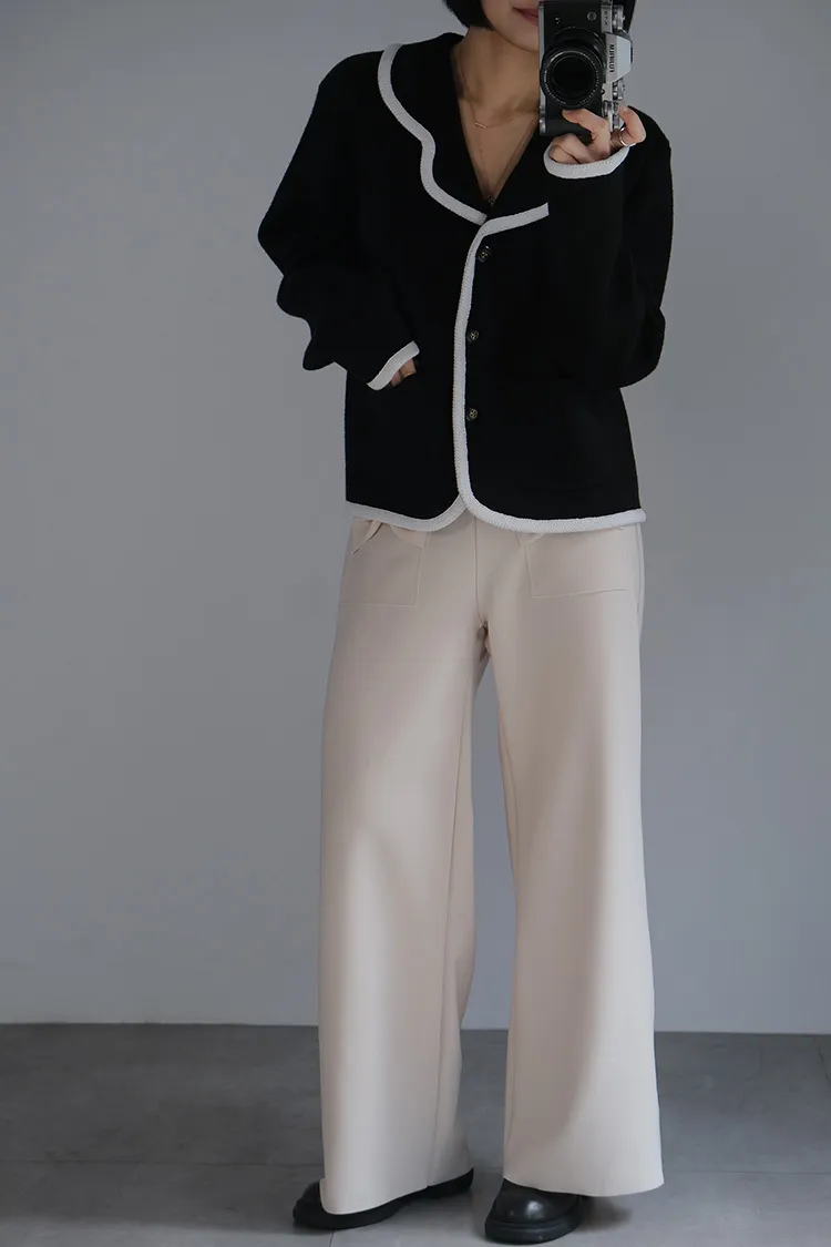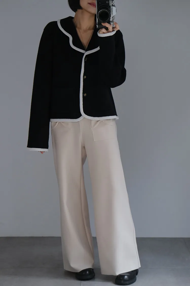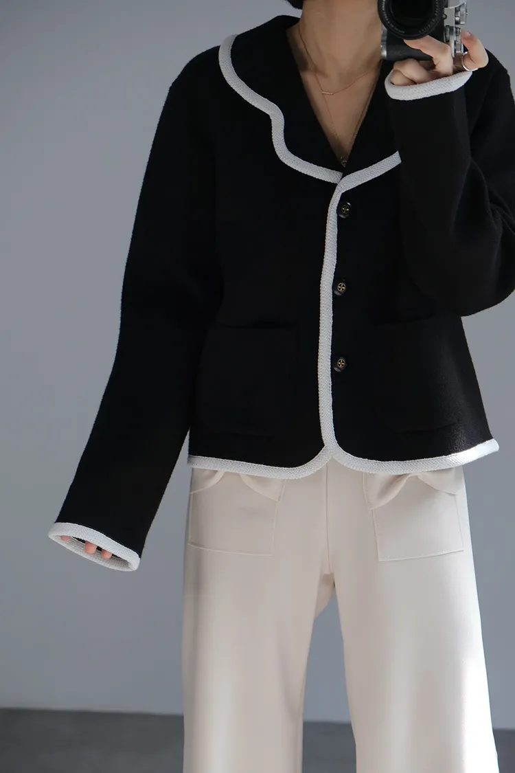 荷葉領滾邊針織外套_黑