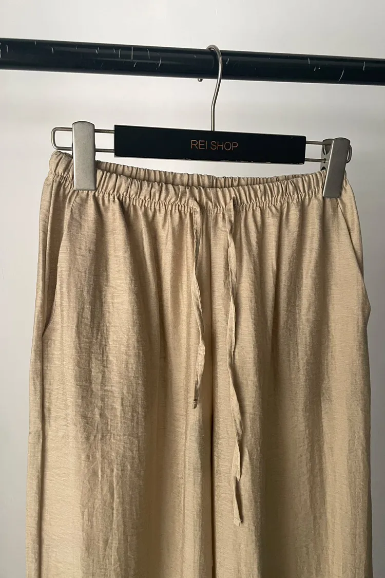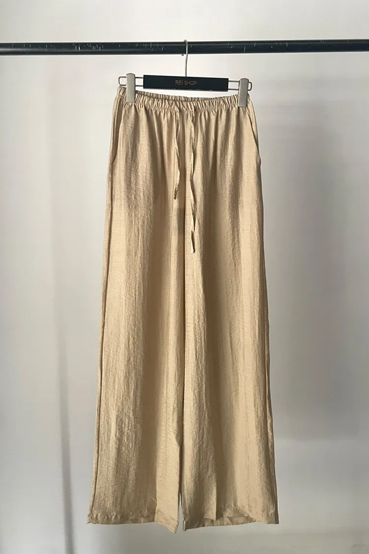 微光澤綁帶寬褲