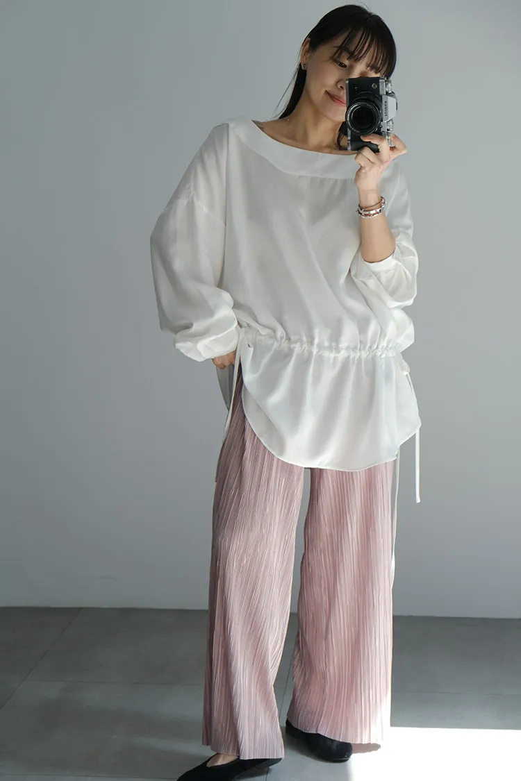 一字領抽繩上衣